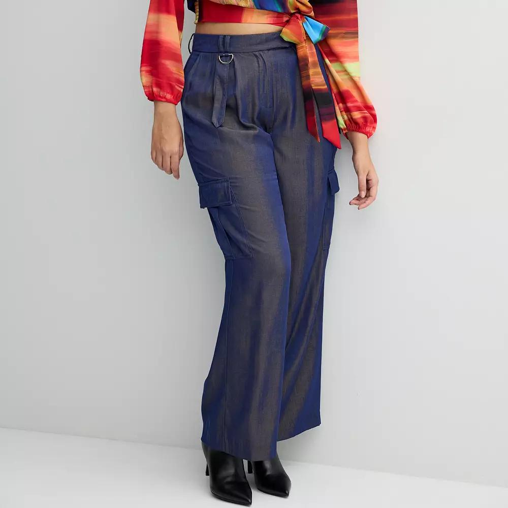 Add effortless style to your wardrobe with these women's INTEMPO shine cargo pants.Click on this WOMEN'S GUIDE to find the perfect fit and more!Add effortless style to your wardrobe with these women's INTEMPO shine cargo pants.Click on this WOMEN'S GUIDE to find the perfect fit and more!FEATURES Hook and bar with zipper closure 2 front pockets, 2 back pockets, 3 side cargo pockets Button & zipper closure UnlinedFIT & SIZING Loose fitting 31-in inseam 11 1/2-in leg opening High rise sits below the natural waistline Relaxed fit through the hip and thigh Flared leg openingFABRIC & CARE Rayon, polyester Machine wash delicate and tumble dry low Imported Size: Medium. Color: Denim Shine. Gender: female. Age Group: adult.