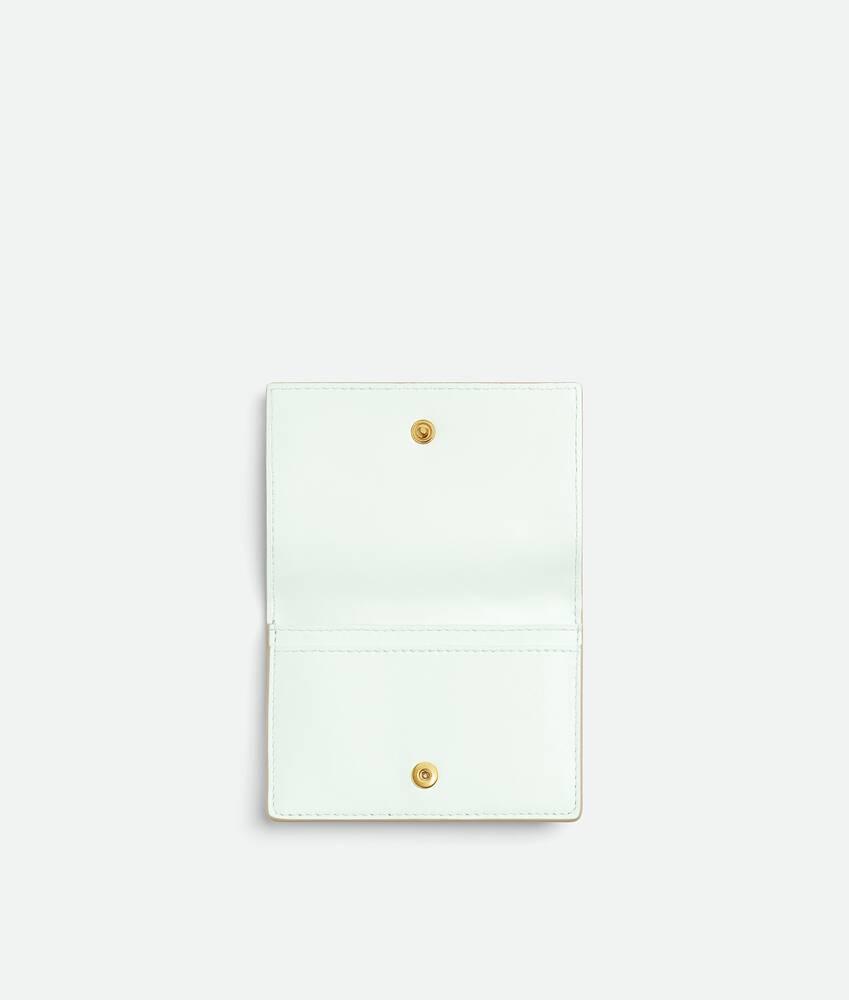 Women's Intrecciato Business Card Case in Ecru/glacier