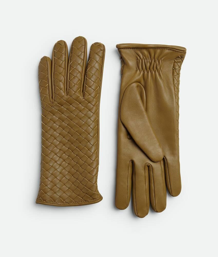 Women's Intrecciato Leather Gloves in Acorn