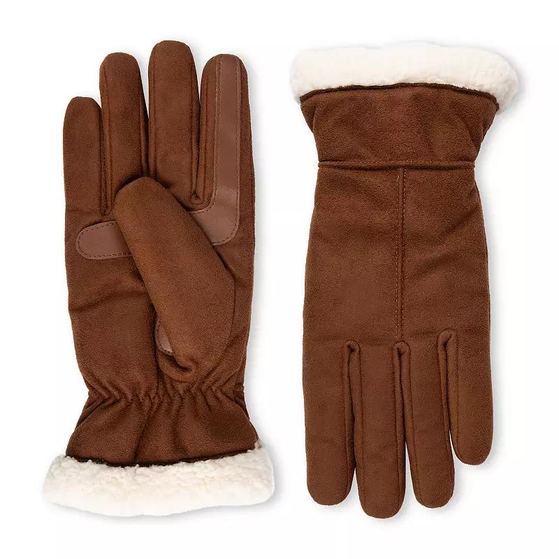 These Women’s isotoner Lined Microsuede Water Repellent Gloves contain recycled polyester as well as touchscreen-enabled fingertips to help you keep in touch while keeping warm. How do you accessorize? Check out our ACCESSORIES GUIDE for essential tips to elevate your style with must-have accessories. - https://www.kohls.com/feature/accessories-guide.jsp. Touchscreen enabled thumbs and pointer finger tips, Water repellent, Get a grip with convenient palm patches, Sherpa soft lining. FIT & SIZING: Palm to fingertip length: 7 in., 7.7 in., Hand circumference range: 7.5 in., 8 in., 8.5 in., 9 in. CONSTRUCTION & CARE: Material: 50% Recycled Polyester, 50% Polyester, Hand wash- cool, no bleach. Air dry flat. Do not tumble dry, iron, or dry, Imported. Size: L-XL. Color: Cognac. Gender: female. Age Group: adult.