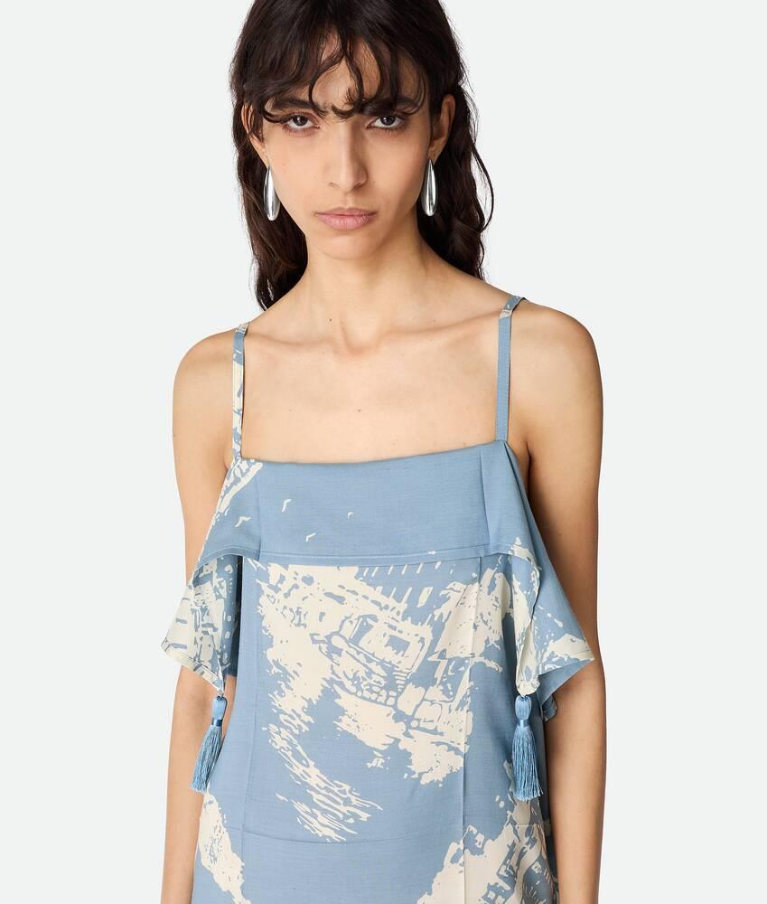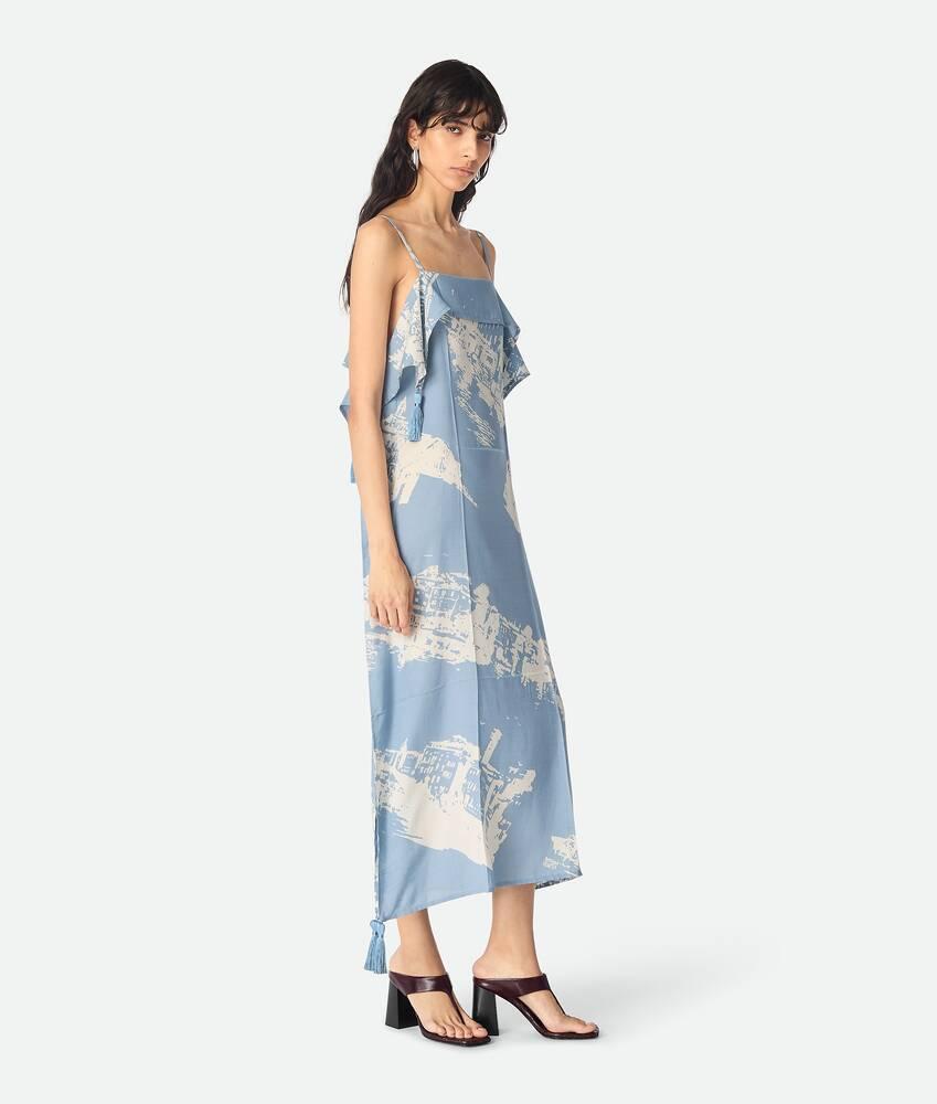 • Italian postcard printed silk shantung long dress• Adjustable straps• Tassel details• Regular fit