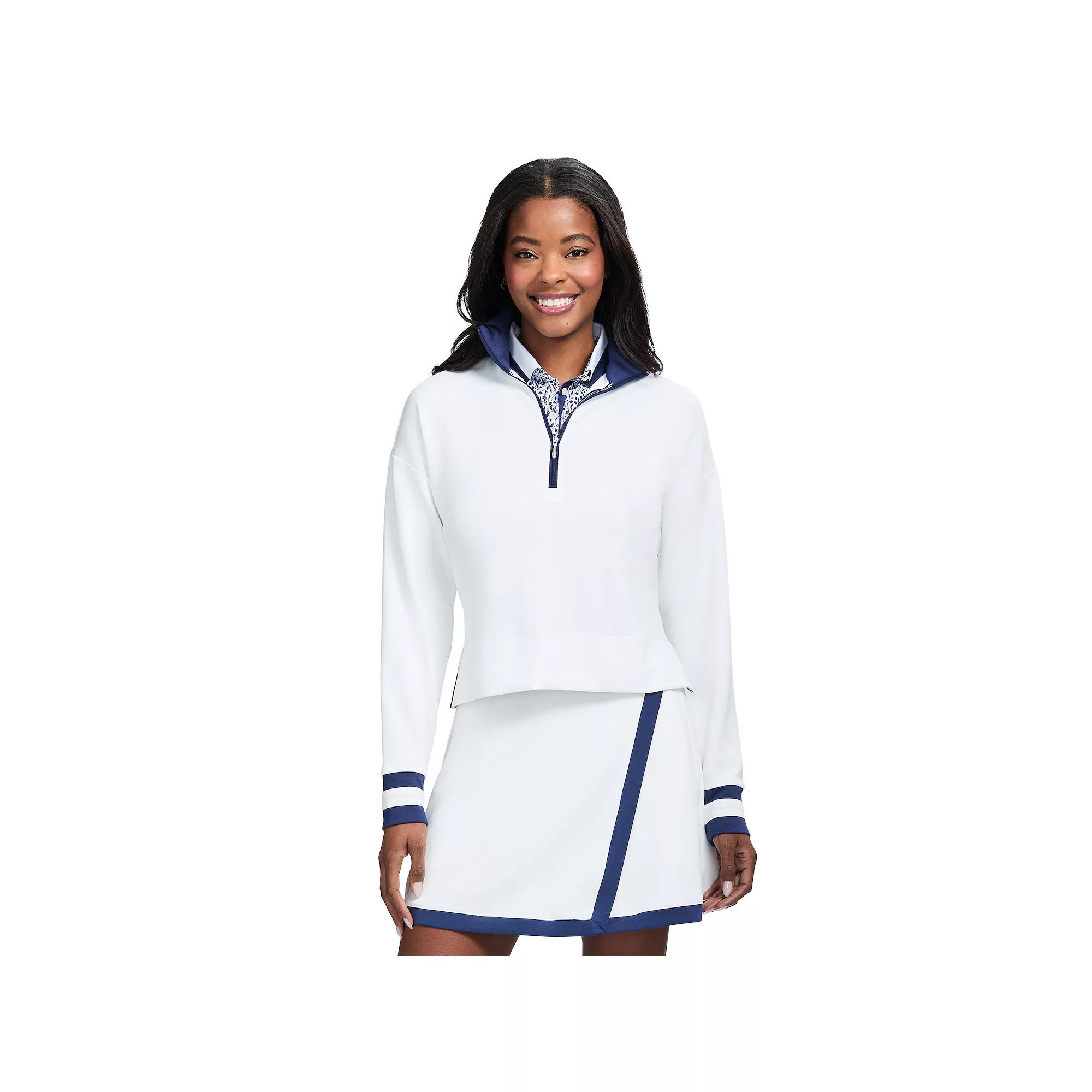 Add some fresh style to your wardrobe with this women's Julie quarter-zip pullover from IZOD.Click on this WOMEN'S GUIDE to find the perfect fit and more!Add some fresh style to your wardrobe with this women's Julie quarter-zip pullover from IZOD.Click on this WOMEN'S GUIDE to find the perfect fit and more!FEATURES No closure - pullover styling Zippered neckline Long drop-shoulder sleeves Vented hem Moisture-wicking fabric Performance stretch construction UnlinedFIT & SIZING Classic fit 22-in. length from shoulder to hemFABRIC & CARE Polyester, modal, spandex Machine wash Imported Size: X Large. Color: Bright White. Gender: female. Age Group: adult.