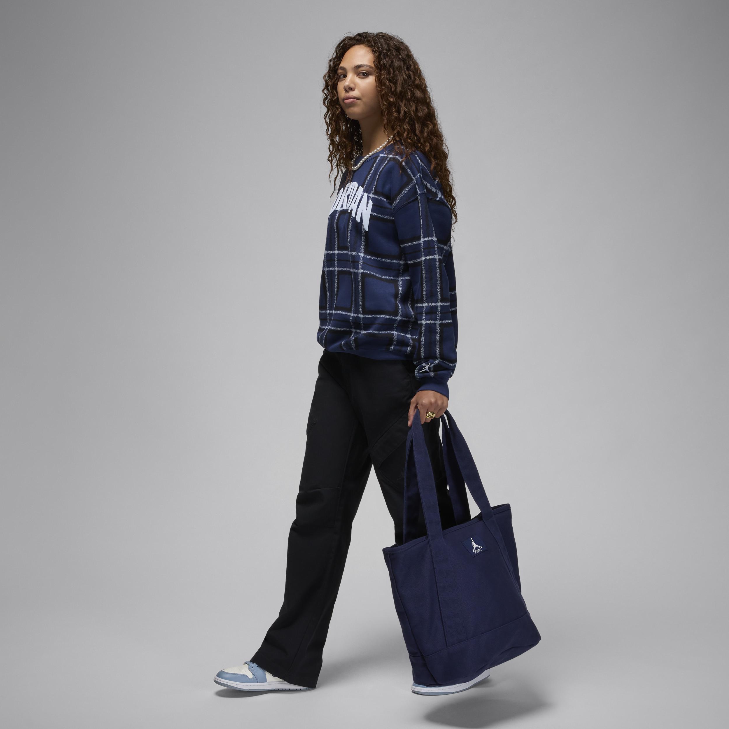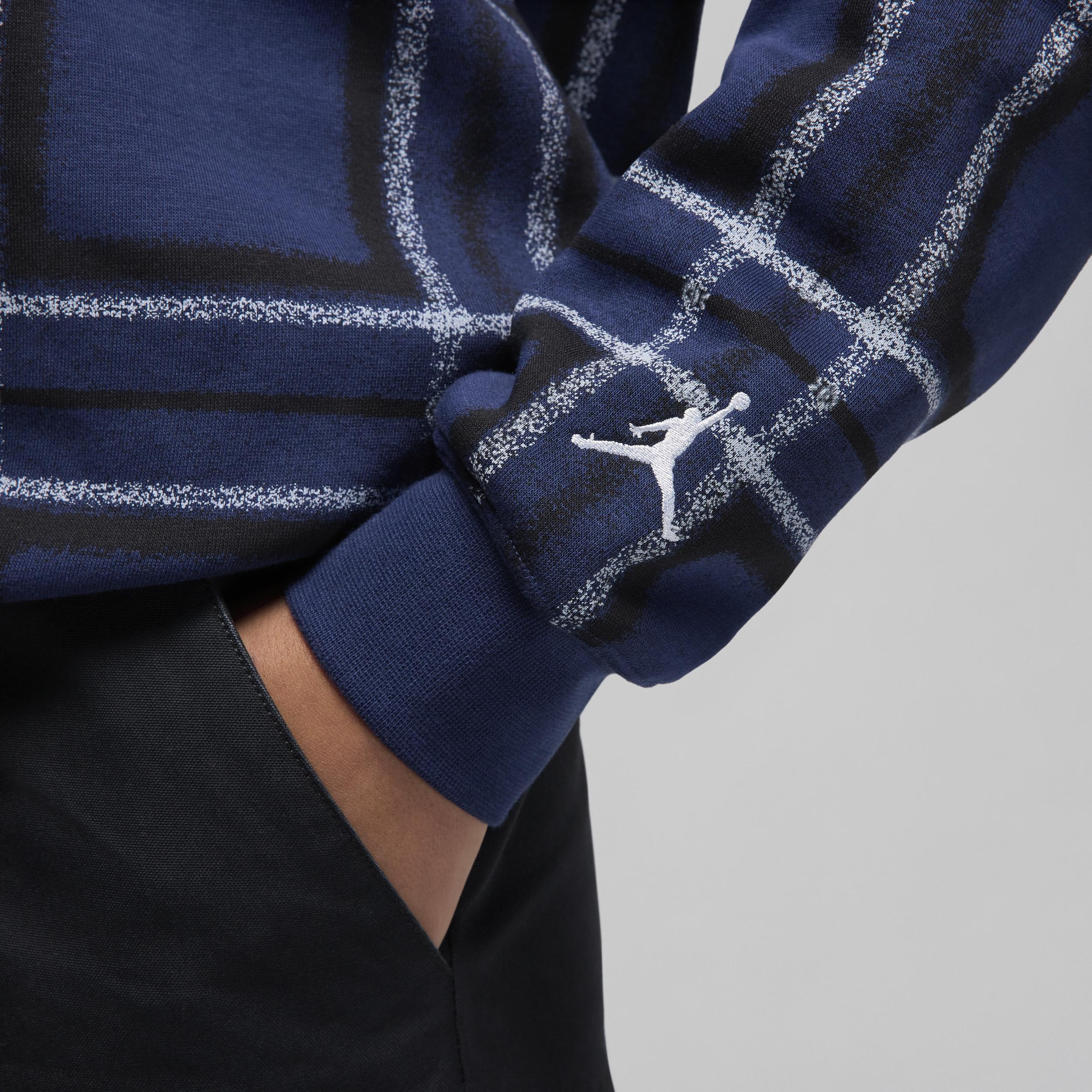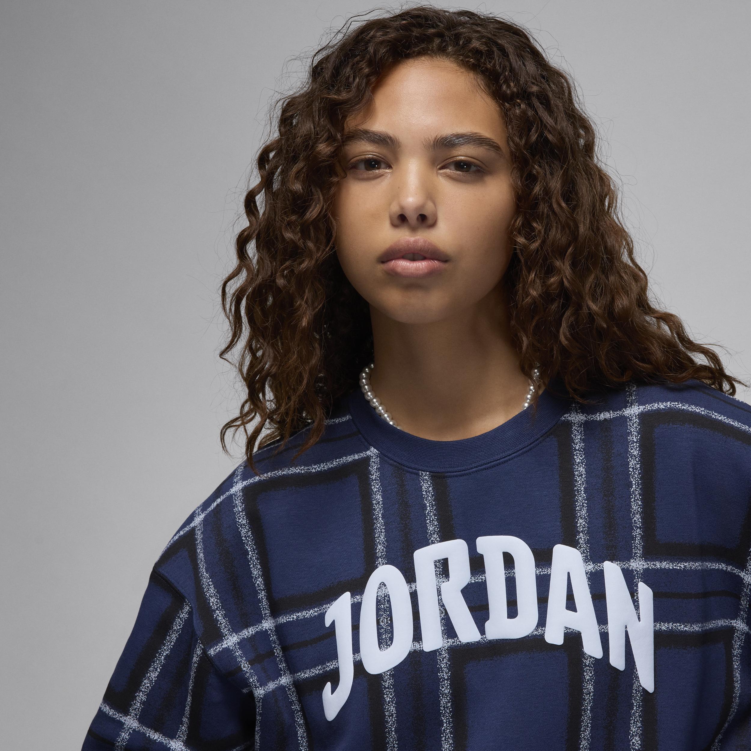 Meet Jordan's take on the season's most festive print. Smooth on the outside and brushed soft on the inside, this roomy fleece sweatshirt is an easy layer when you want a little extra warmth. [] Product Details:Body:80% cotton/20% polyester. Rib:97% cotton/3% spandex. Ribbed cuffs and hem. Machine wash. Imported. Style: HM5498; Color: Midnight Navy/Football Grey; Size: S; Gender: Female; Age Group: Adult | Jordan Brooklyn Fleece Women's Graphic Crew-Neck Sweatshirt in Blue, Size: Small | HM5498-410