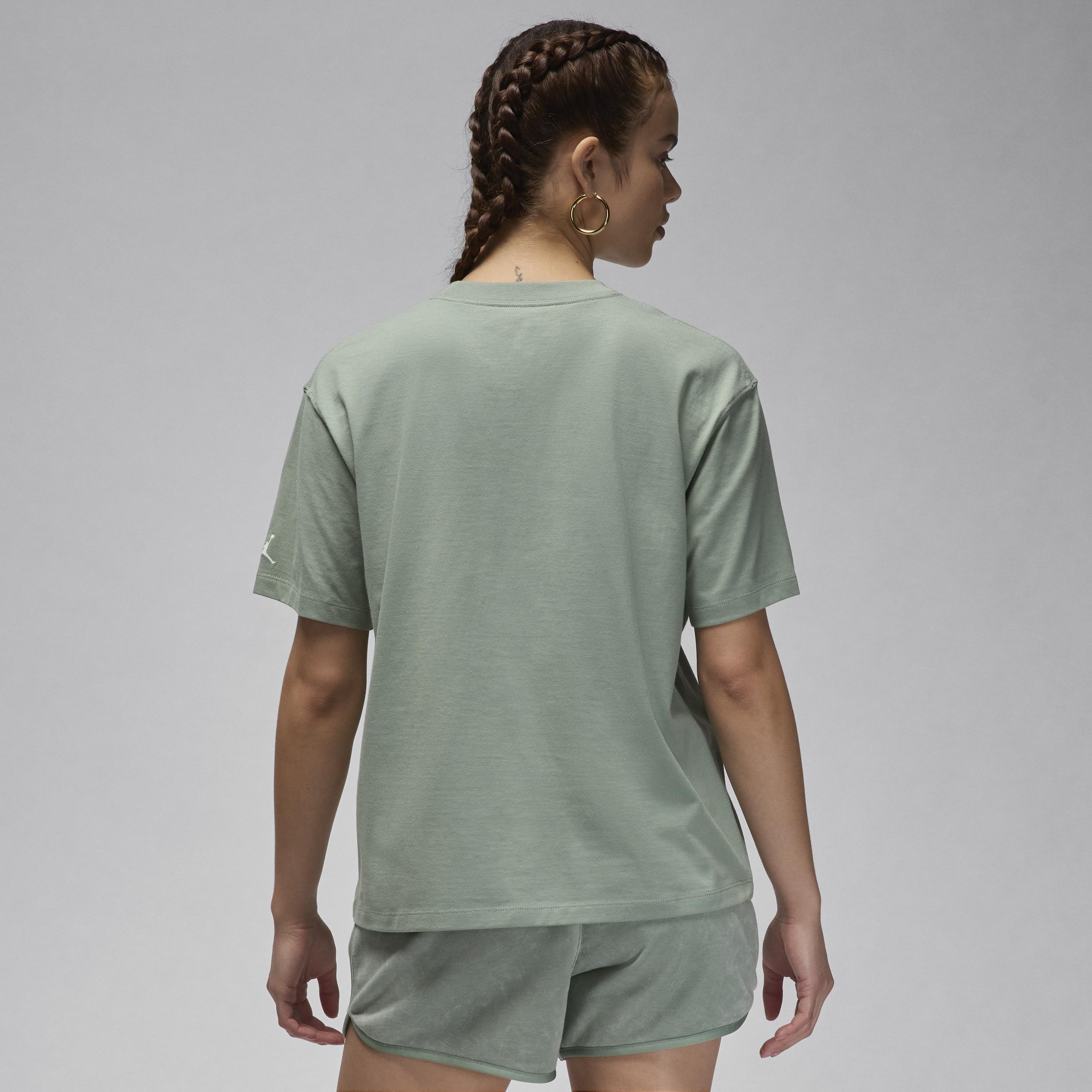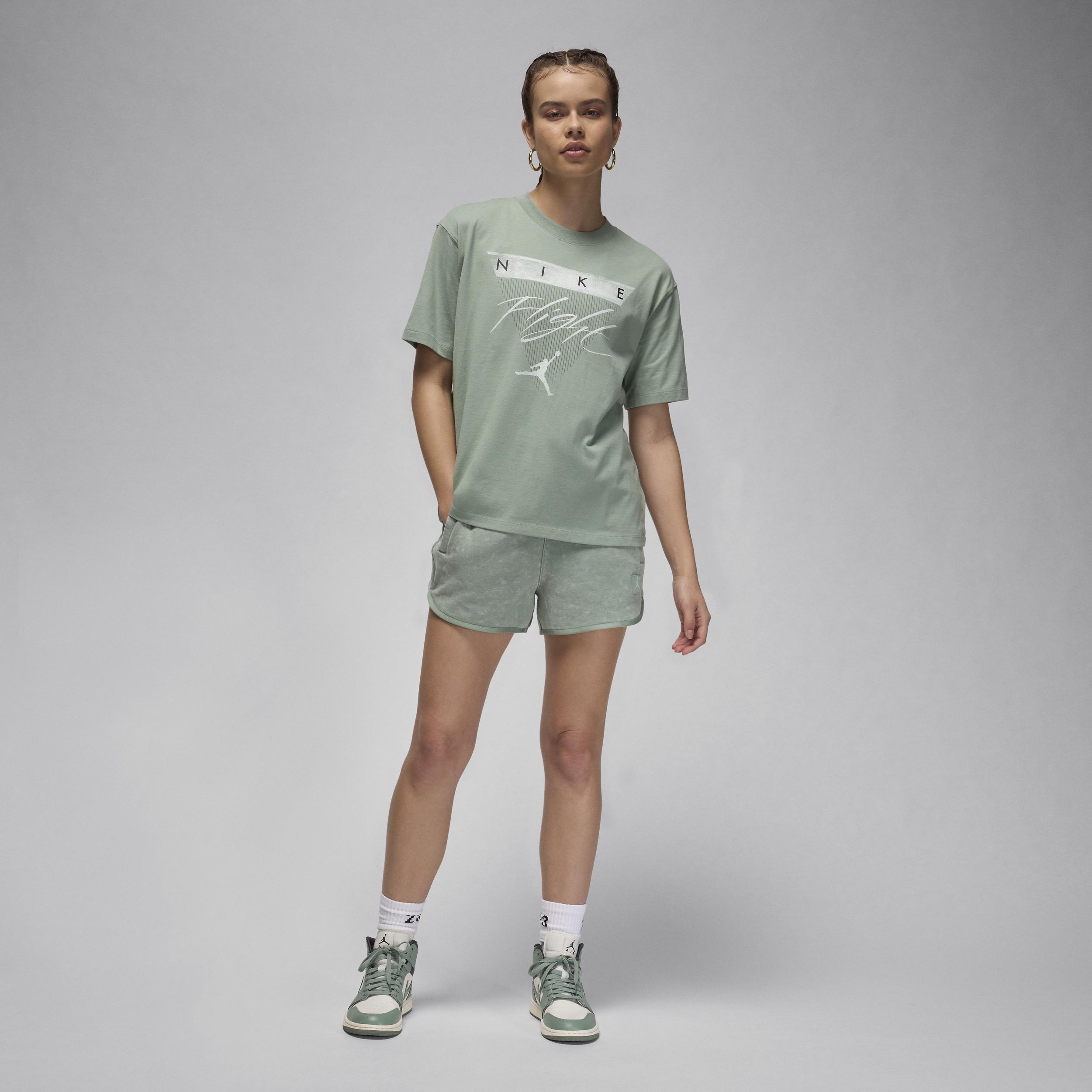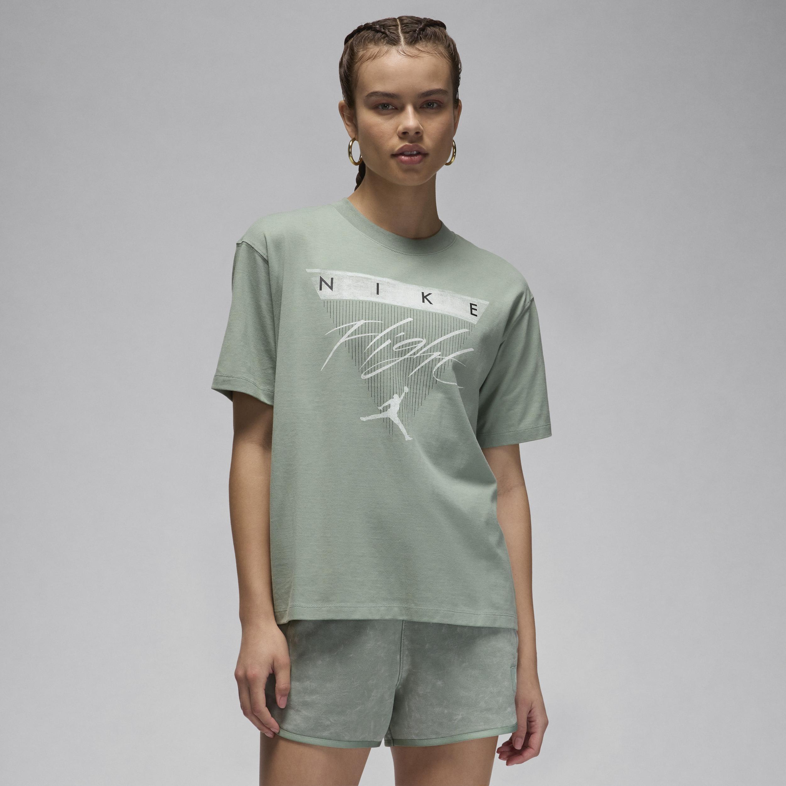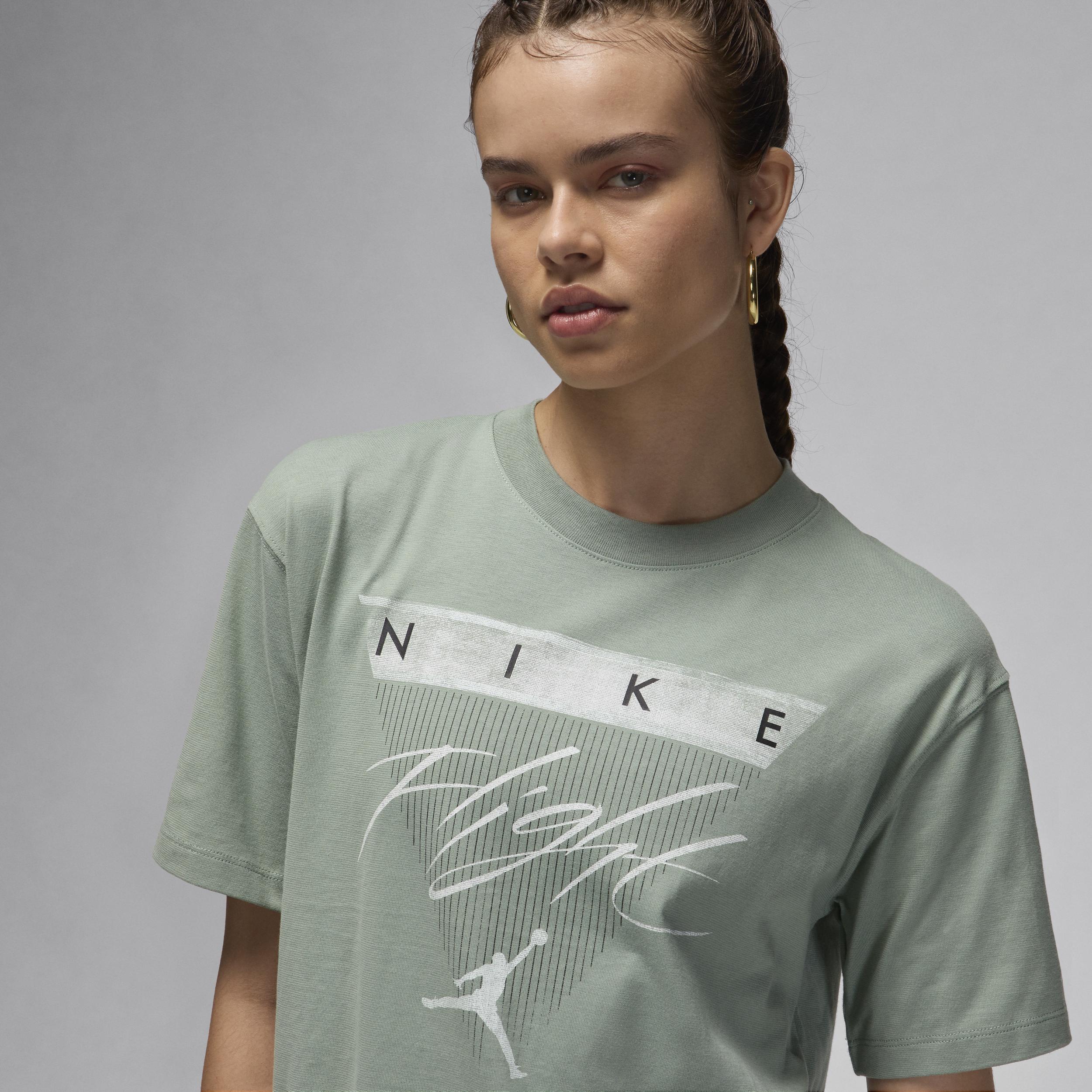 You already know the vibe. An absolutely classic graphic on a relaxed tee with a slightly boxy cut. That's all you need. [] Product Details:Jumpman screen print on sleeve. 100% cotton. Machine wash. Imported. Style: FQ3240; Color: Jade Smoke/Barely Green; Size: XS; Gender: Female; Age Group: Adult | Jordan Flight Heritage Women's Graphic T-Shirt in Green, Size: XS | FQ3240-304