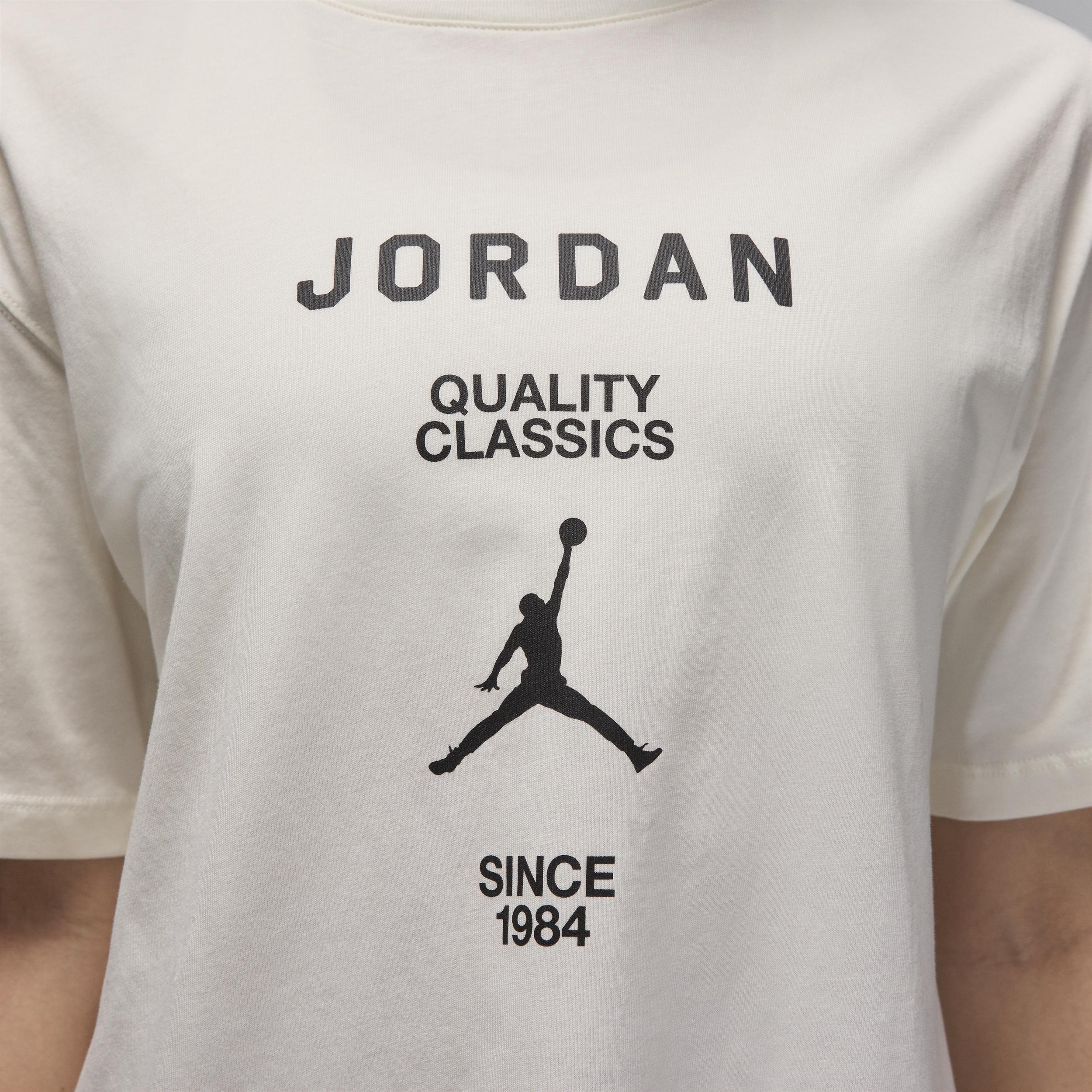 There's a reason we consider this one of our quality classics. Made with soft midweight cotton, it has a roomy fit and a slight drape for comfort you can count on. [] Product Details:100% cotton. Machine wash. Imported. Style: FZ0617; Color: Sail/Black; Size: XL; Gender: Female; Age Group: Adult | Jordan Women's Girlfriend T-Shirt in White, Size: XL | FZ0617-133
