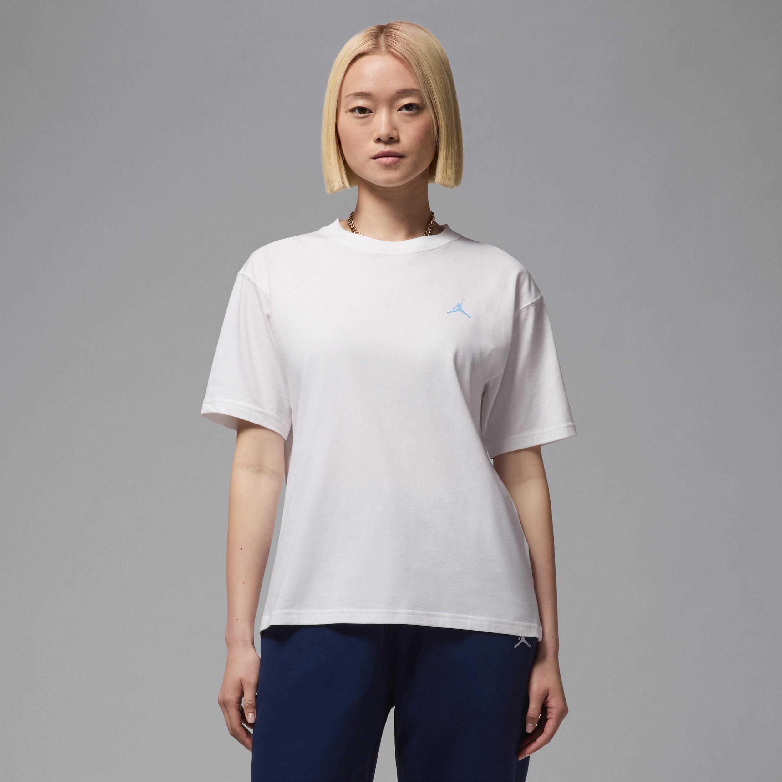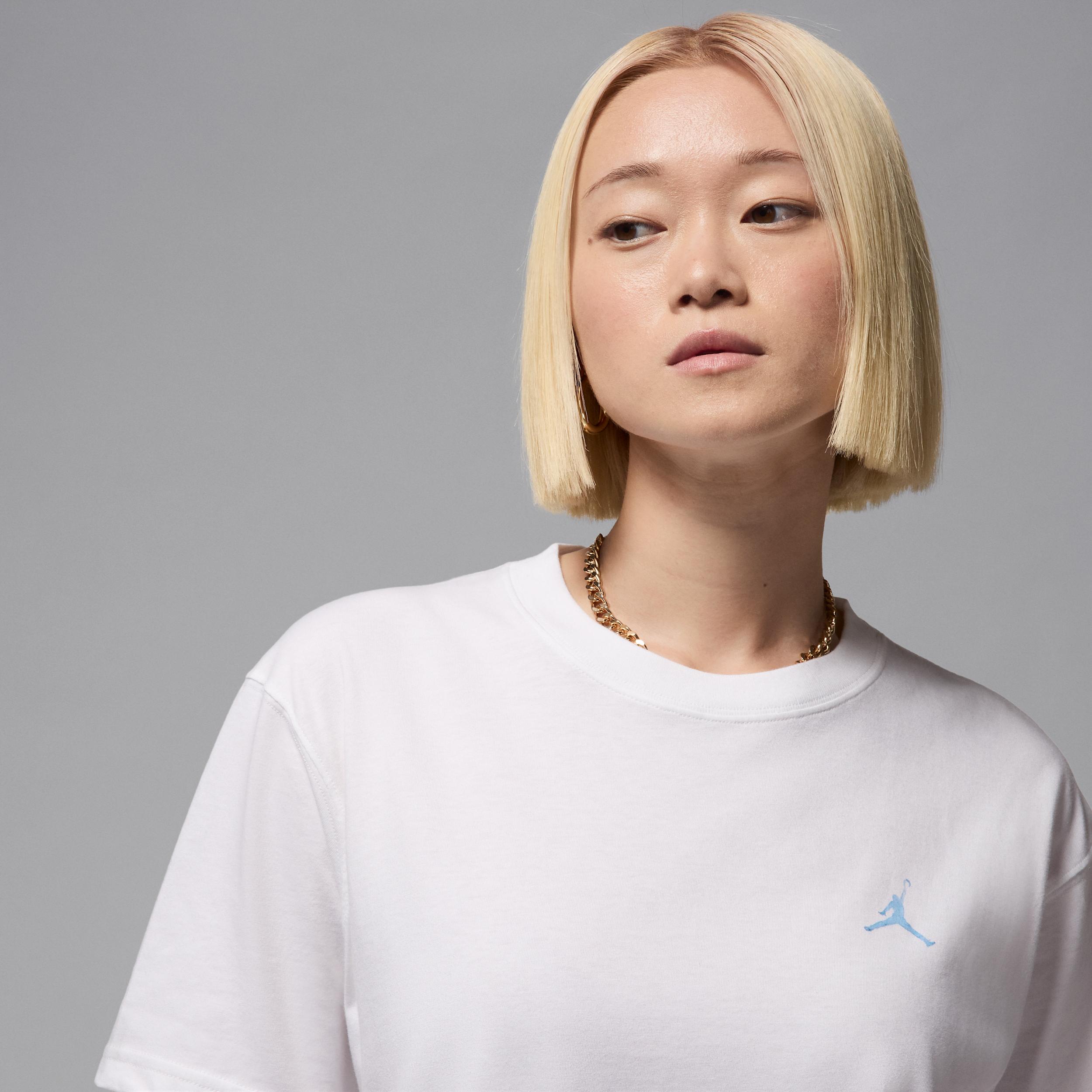 Made from midweight cotton, this soft and roomy tee gives the Jumpman a watercolor-inspired refresh for a new twist on classic Jordan style. Product Details:100% cotton. Machine wash. Imported. Style: HJ0187; Color: White; Size: XS; Gender: Female; Age Group: Adult | Jordan Womens Graphic T-Shirt in White, Size: XS | HJ0187-100