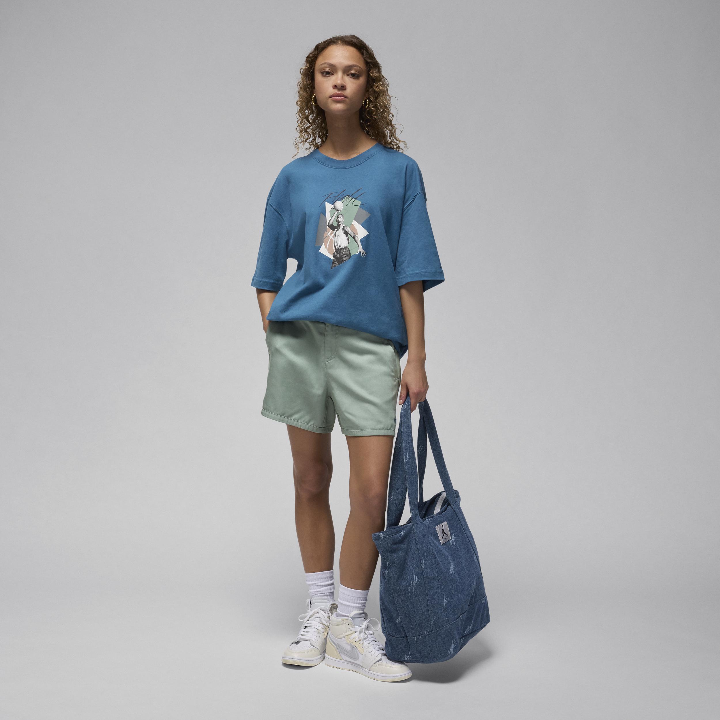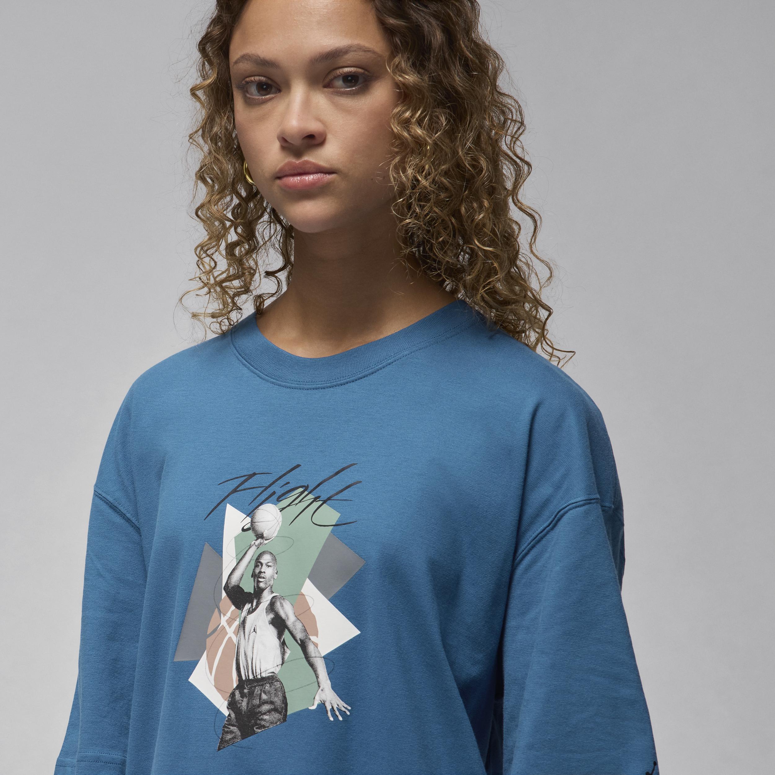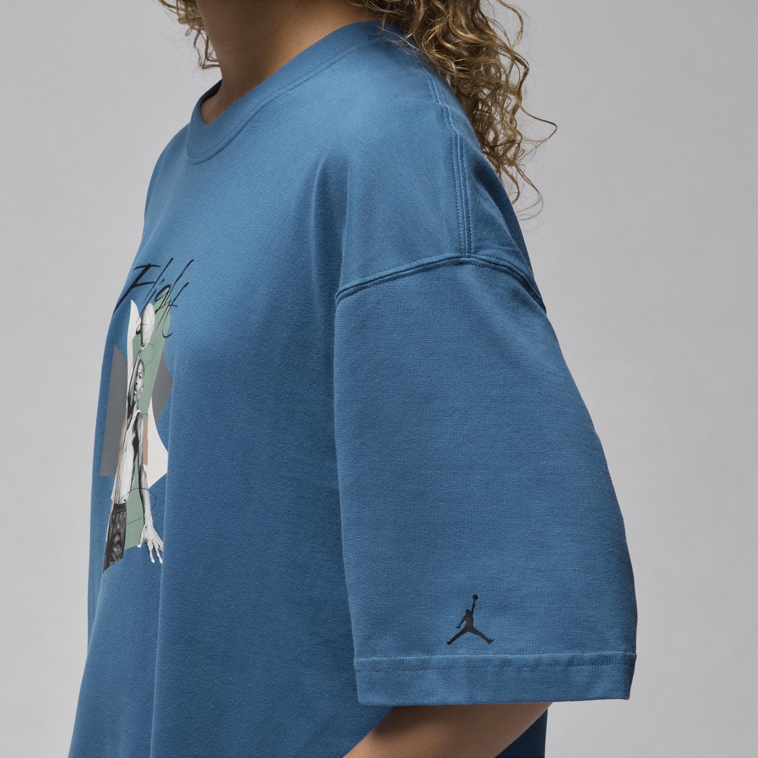 Rep greatness in this seriously soft and baggy tee. Dropped shoulders, longer sleeves and an oversized fit give it an instantly familiar feel ideal for everyday wear. [] Product Details:100% cotton. Machine wash. Imported. Style: FN5708; Color: Industrial Blue; Size: M; Gender: Female; Age Group: Adult | Jordan Women's Oversized Graphic T-Shirt in Blue, Size: Medium | FN5708-457