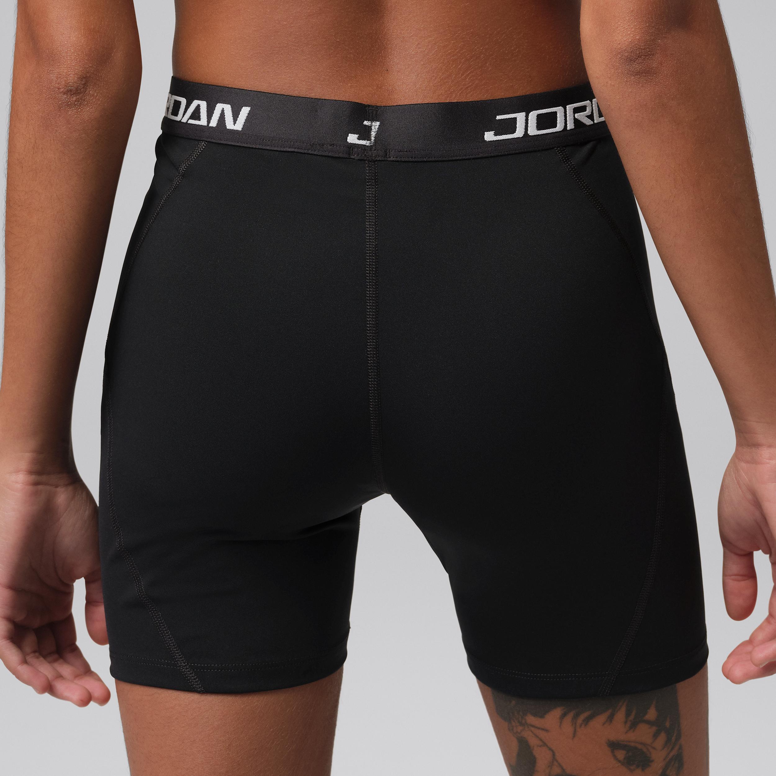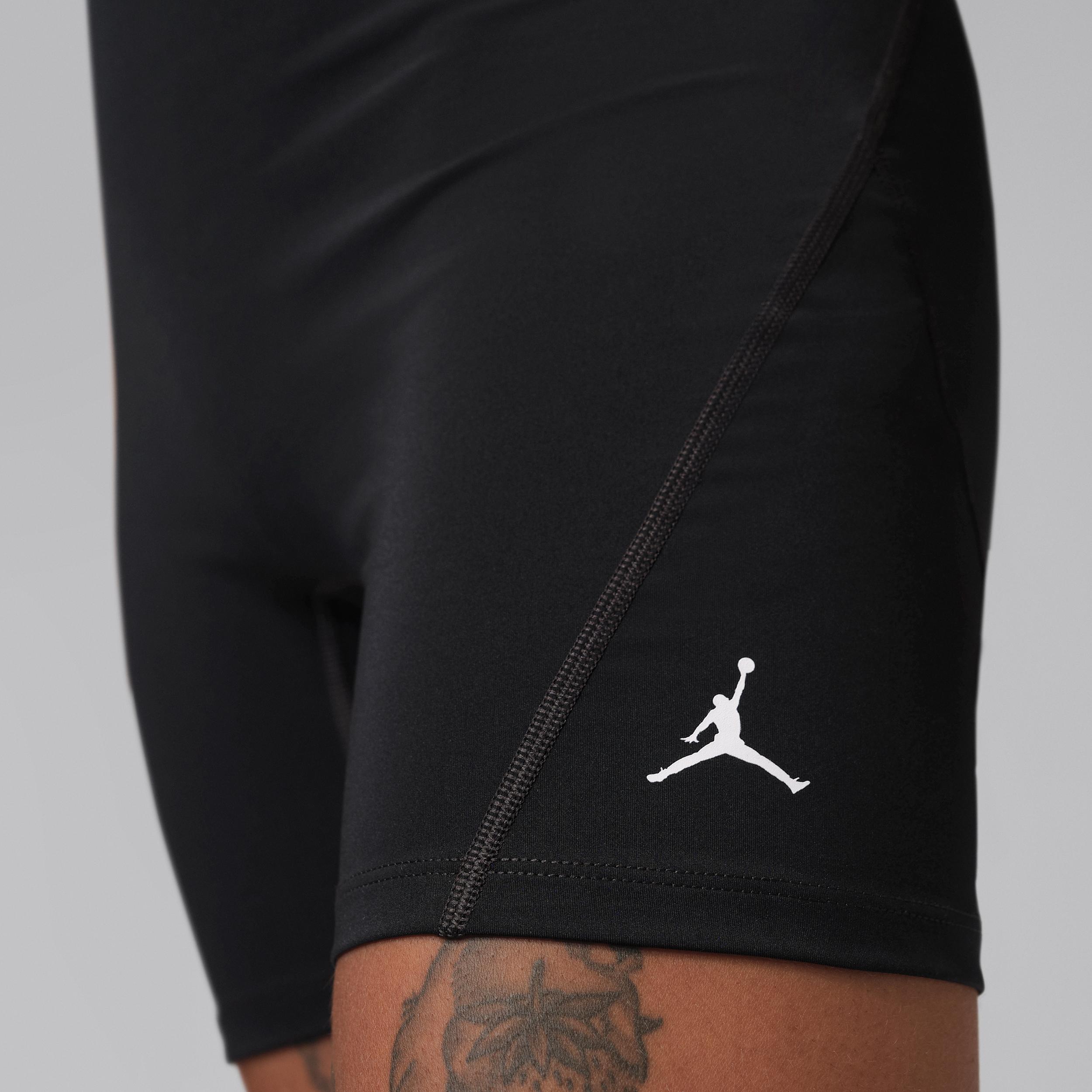 Made from midweight, peachy-soft fabric that stretches with your every move, these high-waisted shorts use our sweat-wicking tech to help you stay focused on your next move. Benefits:Nike Dri-FIT technology moves sweat away from your skin for quicker evaporation, helping you stay dry and comfortable. A wide elastic waistband feels supportive around your core. [] Product Details:Body:83% polyester, 17% spandex; Gusset Lining:83% polyester, 17% spandex. Machine wash. Imported. Style: IF2266; Color: Black/White; Size: XL; Gender: Female; Age Group: Adult | Jordan Sport Essentials Women's Dri-FIT High-Waisted 5" Shorts in Black, Size: XL | IF2266-010