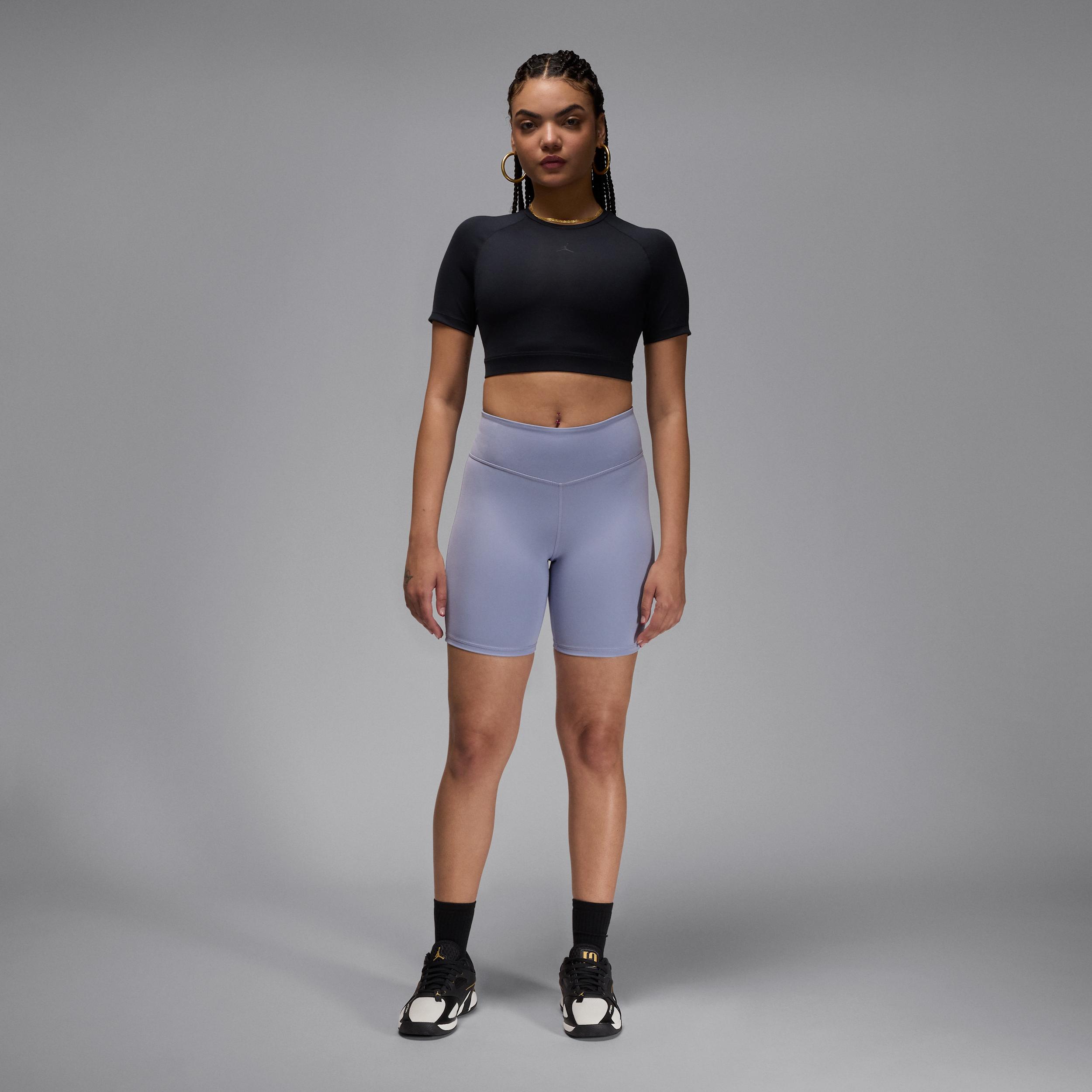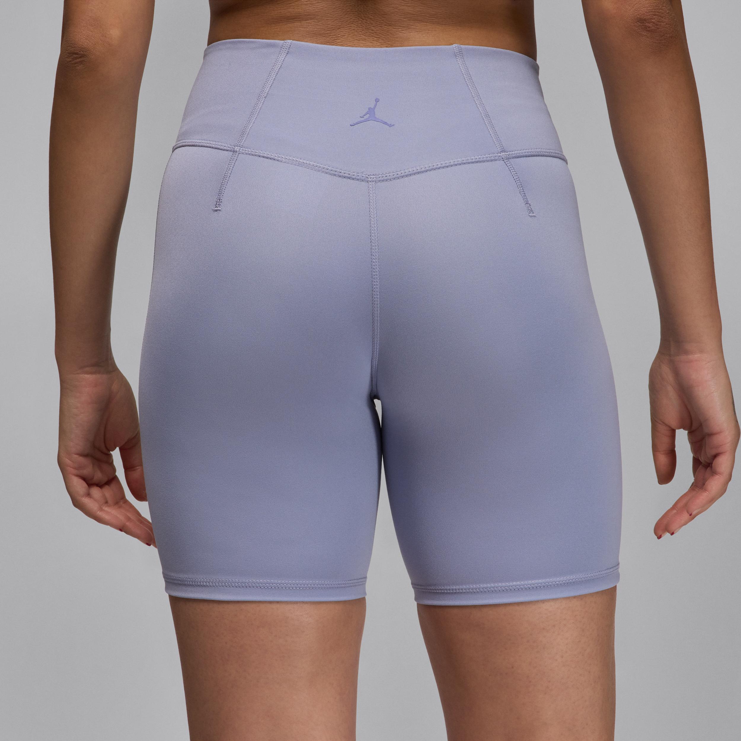 Workout meets wardrobe. The 7-inch length on these shorts gives you coverage, layers easily, and looks good with cropped or oversized tops. With sweat-wicking tech and a high, wide waistband, theyll comfortably move with you from the gym, to the studio, to that brunch spot youve been meaning to check out. Benefits:Nike Dri-FIT technology moves sweat away from your skin for quicker evaporation, helping you stay dry and comfortable. Diamond inspired design detail along the back of the waistband is emblazoned with the Jumpman. Product Details:78-79% polyester/21-22% spandex. Gusset Lining: 100% polyester. Material percentages may vary. Check label for actual content. Machine wash. Imported. Style: FN7325; Color: Indigo Haze/Purple Slate; Size: XL; Gender: Female; Age Group: Adult | Jordan Sport Womens High-Waisted 7 Bike Shorts in Purple, Size: XL | FN7325-519