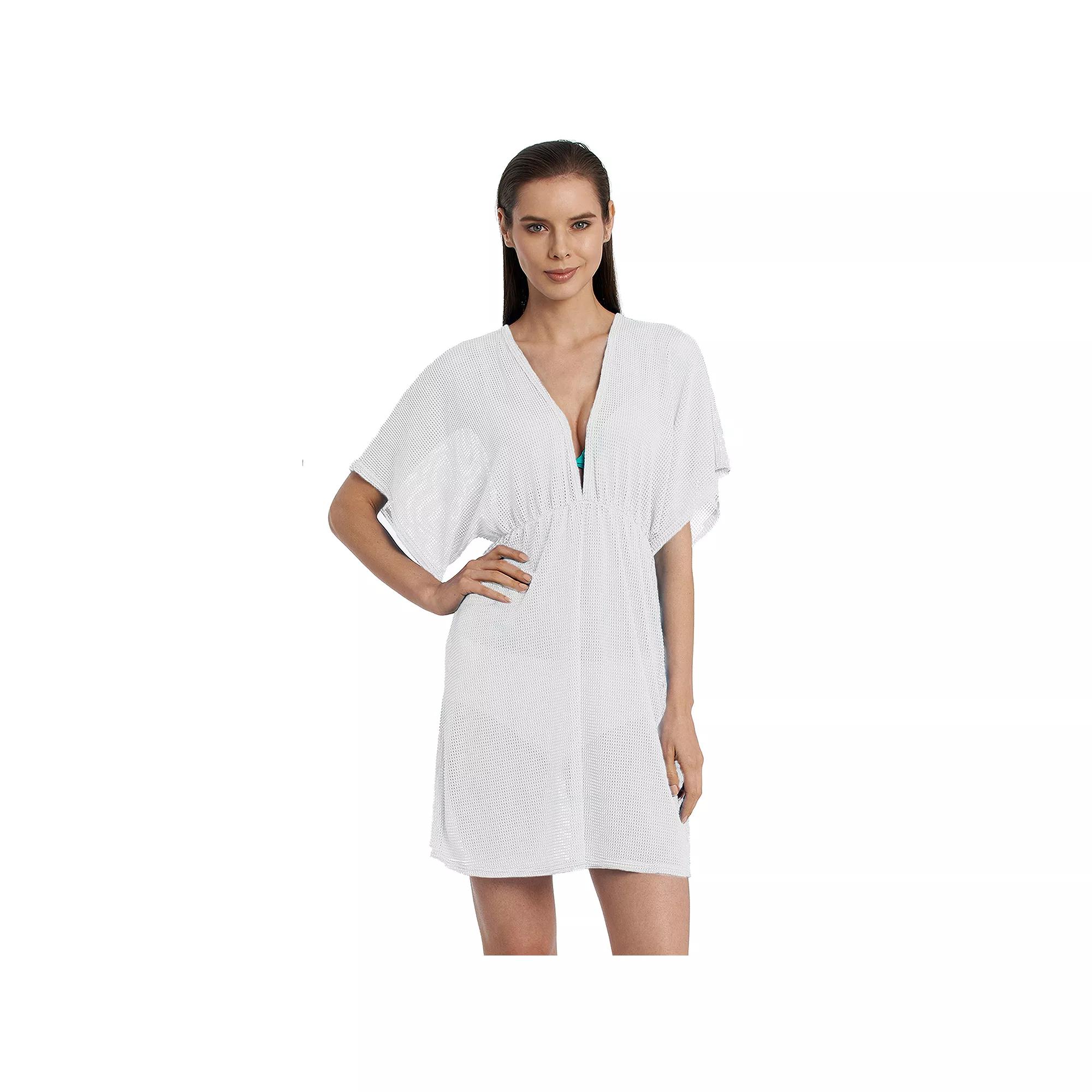 Get ready for a fun-filled day at the beach with this cover up from Jordan Taylor. Finding the perfect fit and size for women's clothing requires basic measurements of your chest, waist, hips and inseam. Use this guide to learn more about sizing and everything Kohl's has to offer in women's fashion. - https://www.kohls.com/feature/womens-fit-guide.jsp. Empire waist, V-neck, Dolman sleeves. FIT & SIZING: 31-in. length. FABRIC & CARE: Nylon, spandex, Hand wash. Size: Large. Color: White. Gender: female. Age Group: adult. Material: POLY BLEND.