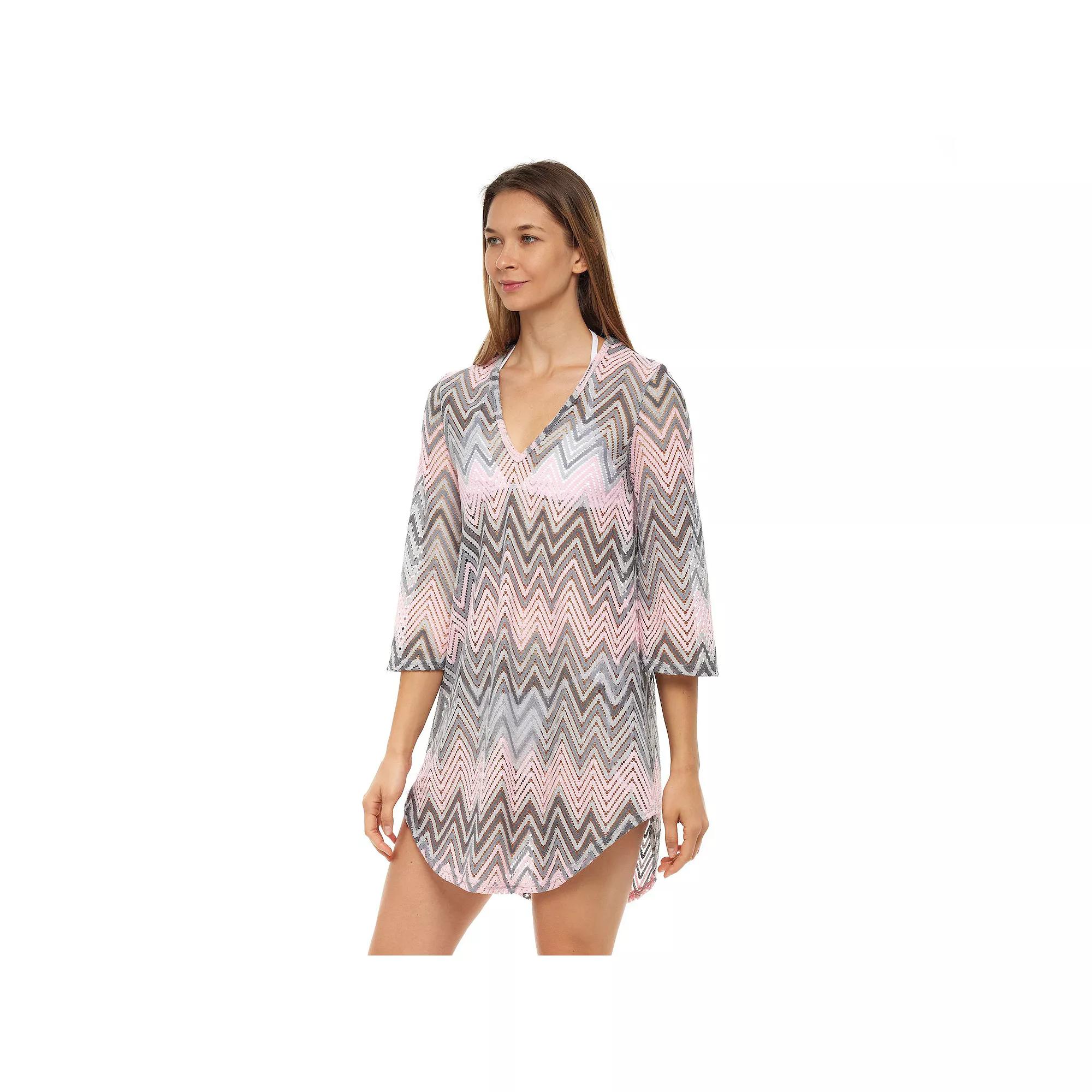 Whether you are planning a trip to the pool or beach, this Womens Jordan Taylor ELIF V-Neck Tunic Coverup is a stylish must-have. Click on this WOMENS GUIDE to find the perfect fit and more! Whether you are planning a trip to the pool or beach, this Womens Jordan Taylor ELIF V-Neck Tunic Coverup is a stylish must-have. Click on this WOMENS GUIDE to find the perfect fit and more! FEATURES V-neck 3/4-length bell sleeves UnlinedFIT & SIZING 32-in. length from shoulder to hemFABRIC & CARE Polyester, Metallic, Nylon Machine wash Imported Size: Medium. Color: Grey. Gender: female. Age Group: adult.
