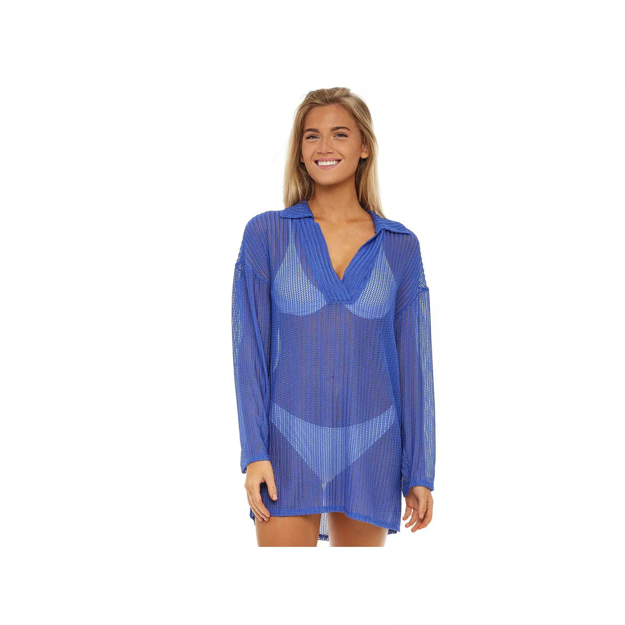 You'll be ready for the beach in style wearing this women's mesh swim-cover-up tunic by Jordan Taylor.Finding the perfect fit and size for women's clothing requires basic measurements of your chest, waist, hips and inseam. Use this guide to learn more about sizing and everything Kohl's has to offer in women's fashion. Textured fabric blend Polo collar with V-neck Long bell sleevesFIT & SIZING Longer tunic lengthFABRIC & CARE Nylon, spandex Hand wash Size: Medium. Color: Brt Blue. Gender: female. Age Group: adult.