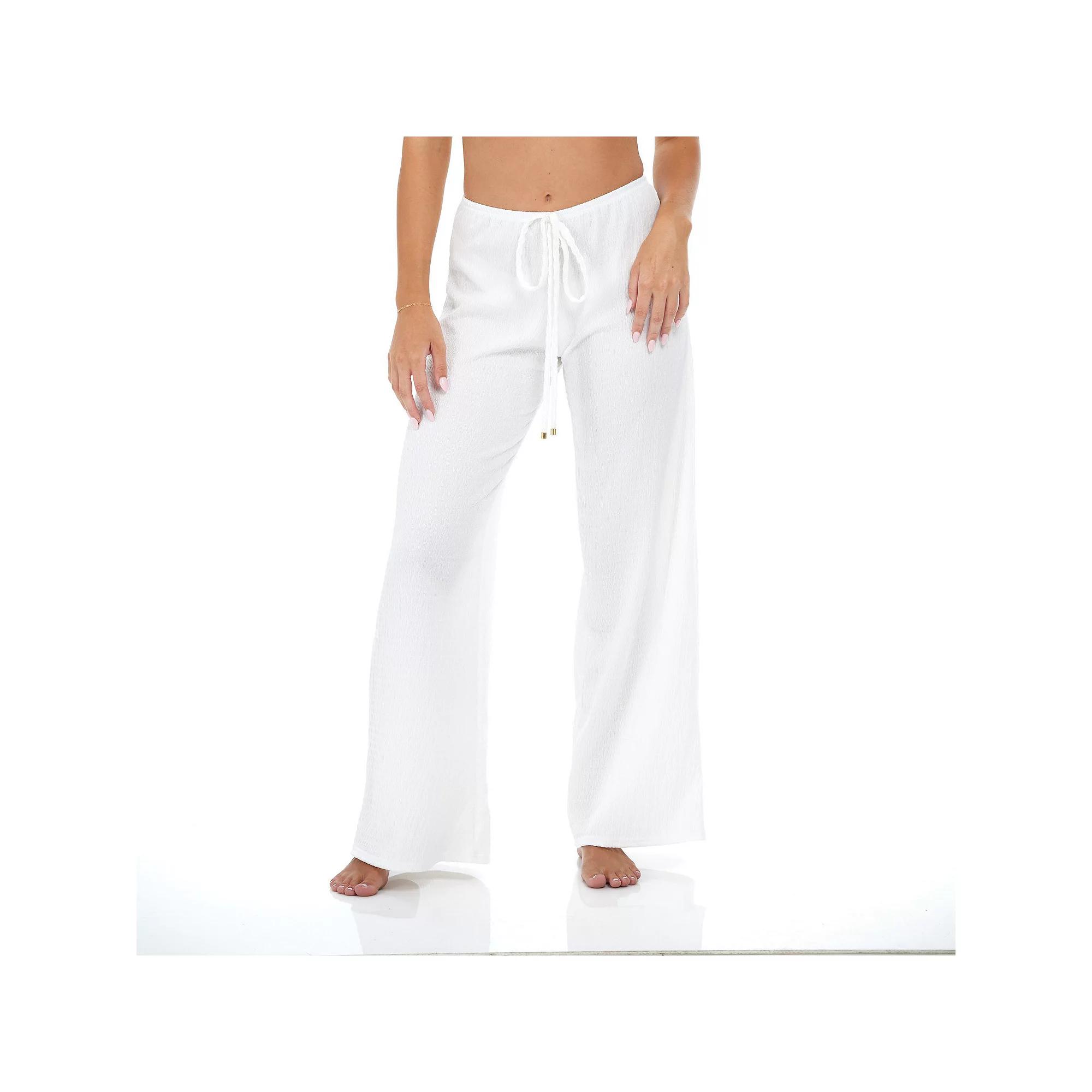 Get ready for a beach day with these women's Jordan Taylor pull-on swim cover-up pants. Click on this WOMEN'S GUIDE to find the perfect fit and more! Get ready for a beach day with these women's Jordan Taylor pull-on swim cover-up pants. Click on this WOMEN'S GUIDE to find the perfect fit and more! FEATURES Krinkle knit Straight hemFIT & SIZING Drawstring elastic waistband Midrise sits on the hip Wide-leg cutFABRIC & CARE Polyester, spandex Hand wash and line dry Imported Size: Medium. Color: White. Gender: female. Age Group: adult.