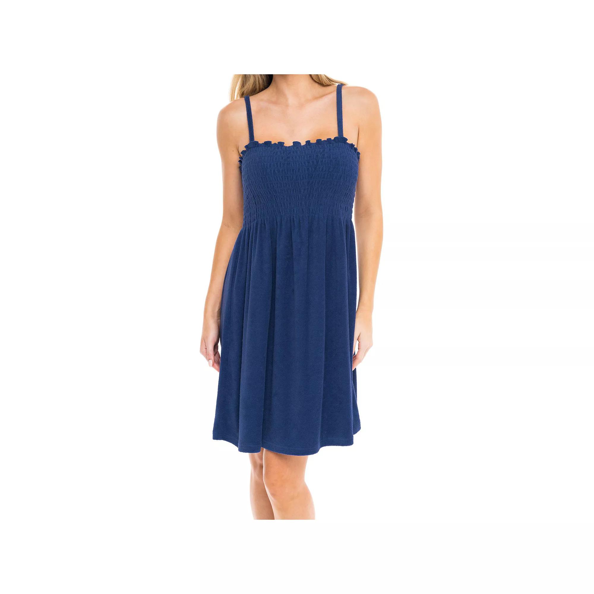 A smocked bodice and terrycloth construction makes this women's Jordan Taylor swim cover-up the perfect poolside pick.Finding the perfect fit and size for women's clothing requires basic measurements of your chest, waist, hips and inseam. Use this guide to learn more about sizing and everything Kohl's has to offer in women's fashion. Smocked bodice Flared skirt Sweetheart neckline Terry cloth constructionFIT & SIZING 29-in. approximate length from shoulder to hem Fit & flare silhouetteFABRIC & CARE Cotton, polyester Hand wash Imported Size: Medium. Color: Blue. Gender: female. Age Group: adult. Pattern: Solid.