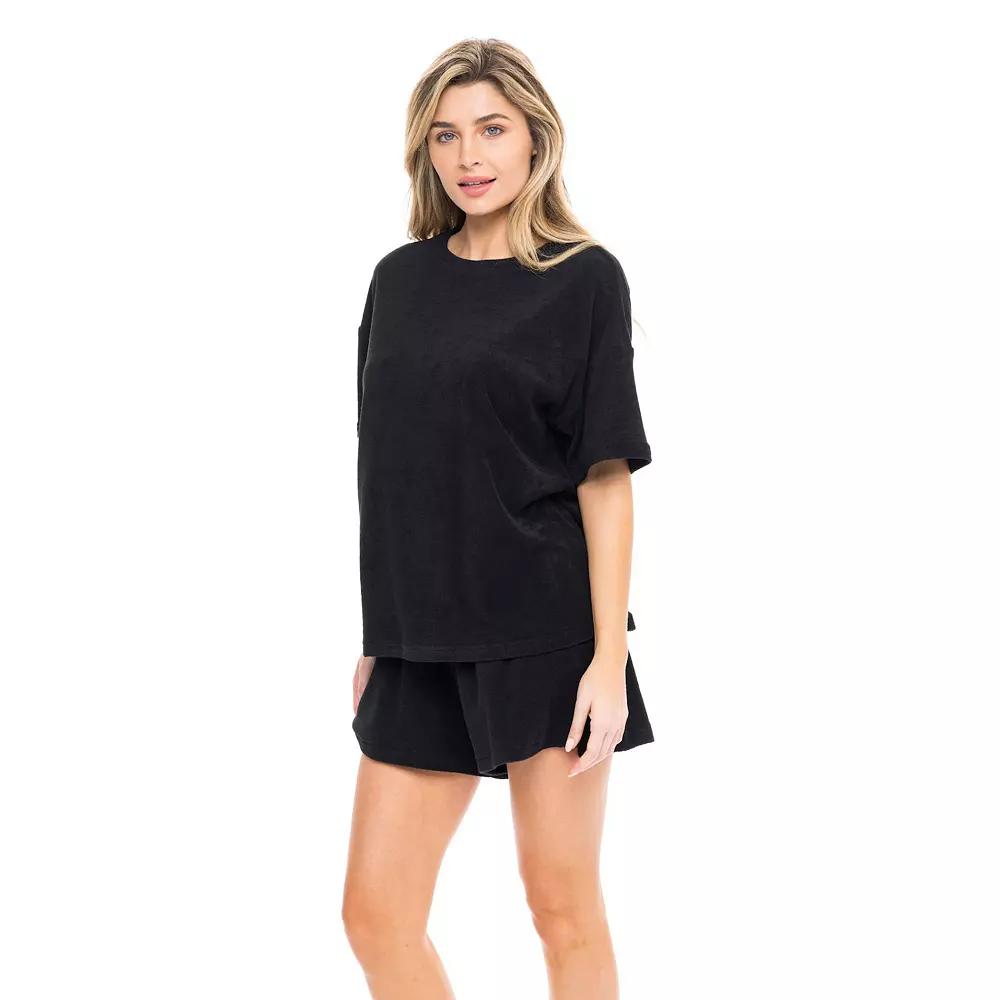 You'll be cute and covered in this women's Jordan Taylor swim cover-up shirt. Finding the perfect fit and size for women's clothing requires basic measurements of your chest, waist, hips and inseam. Use this guide to learn more about sizing and everything Kohl's has to offer in women's fashion. - https://www.kohls.com/feature/womens-fit-guide.jsp. Crewneck, Cap sleeves, Terry cloth construction. FIT & SIZING: 25-in. approximate length, Oversized, relaxed fit. FABRIC & CARE: Cotton, polyester, Hand wash, Imported. Size: Small. Color: Black. Gender: female. Age Group: adult. Pattern: Solid. Material: POLY BLEND.