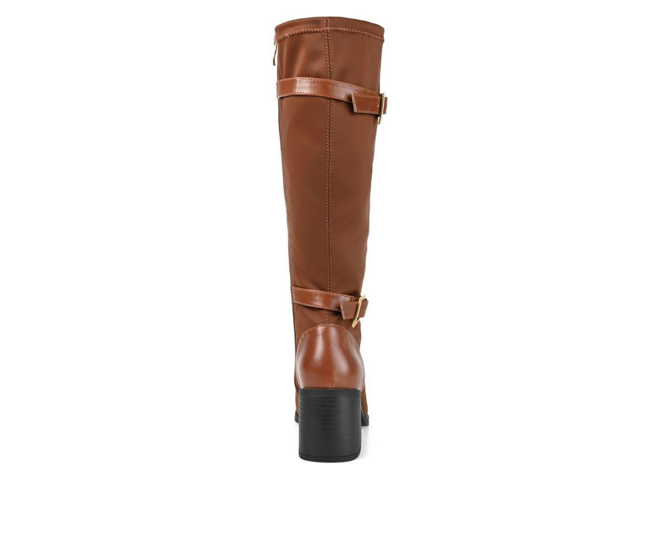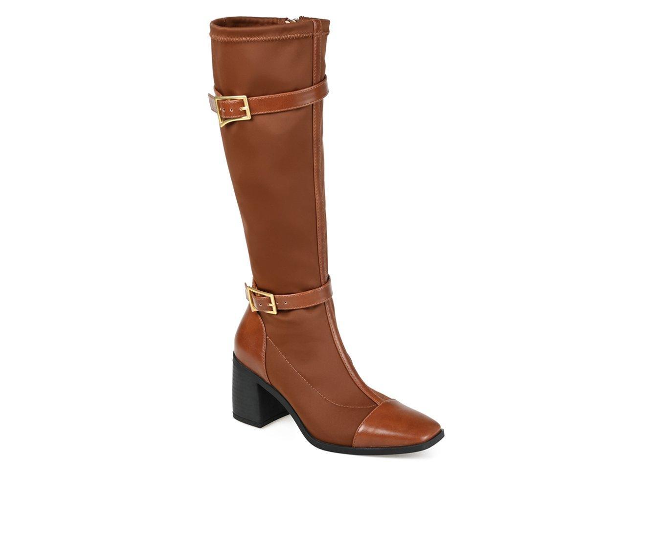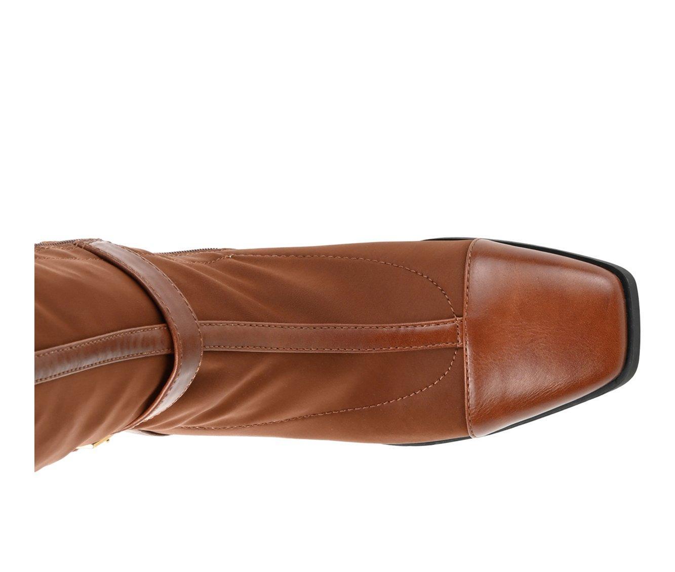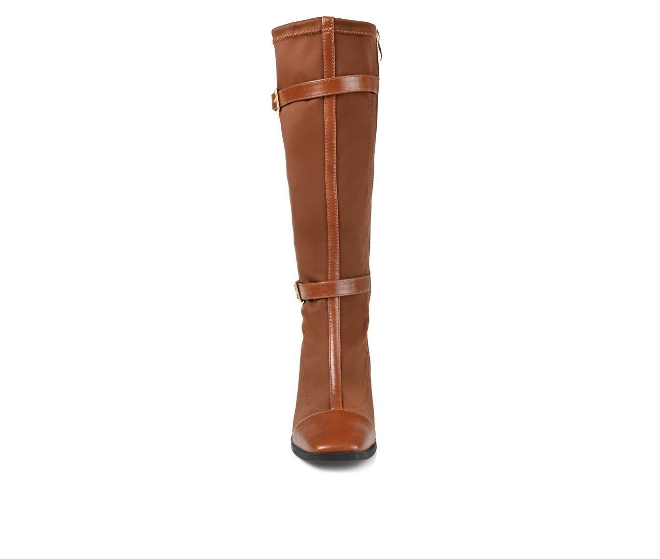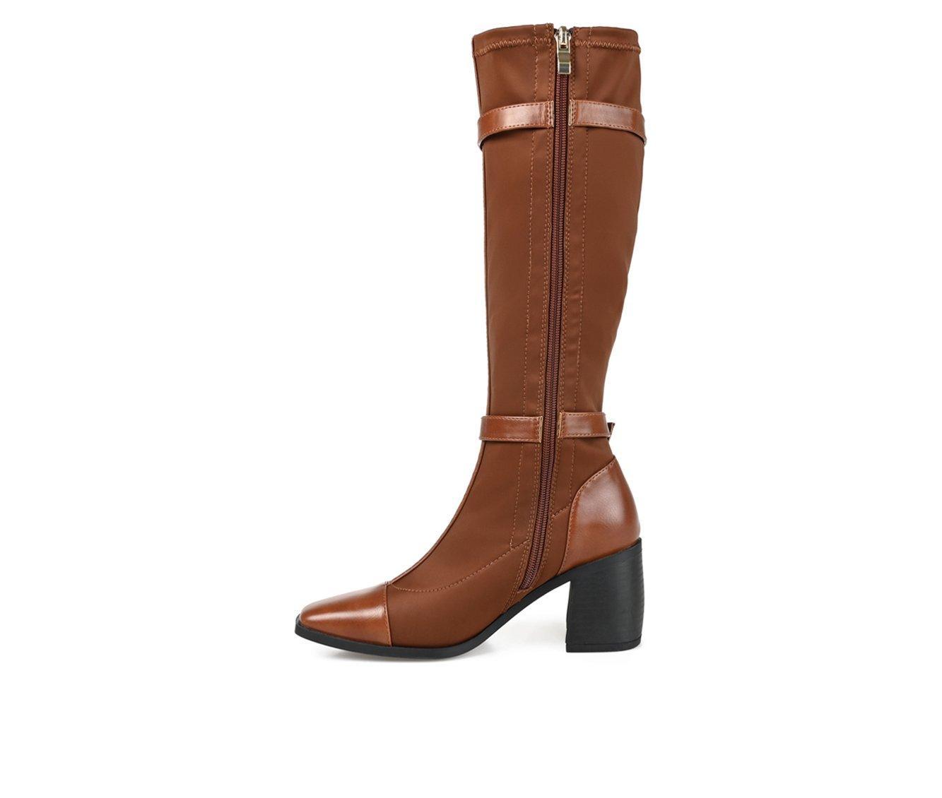 The knee-high boot reimagined, the Gaibree by Journee Collection. This extra-wide calf boot features a 4 mm Tru Comfort Foam™ footbed, a square-toe, and stretchy fabric uppers. Bold buckles and vegan leather straps at the shaft give this simple silhouette a fresh look.