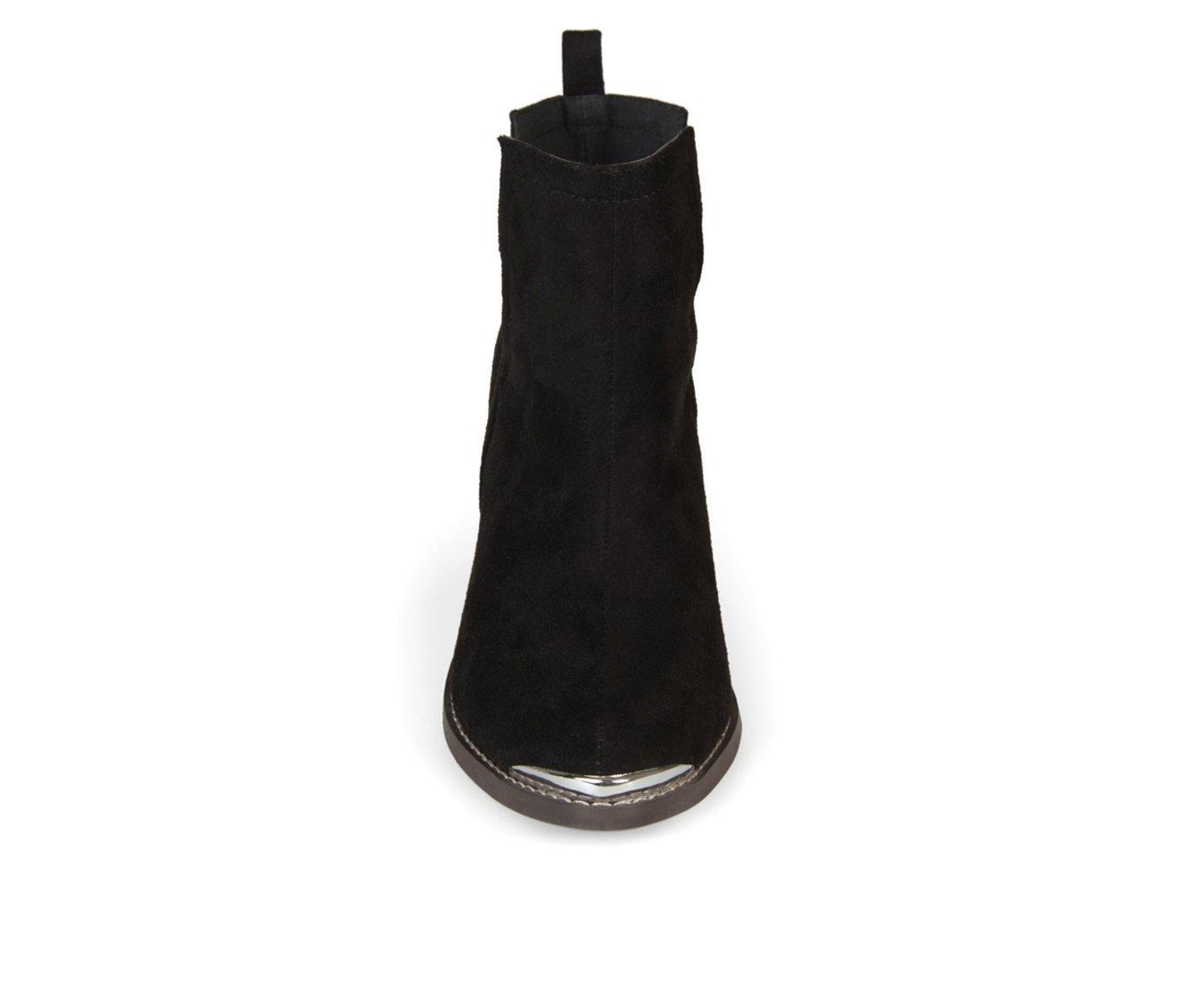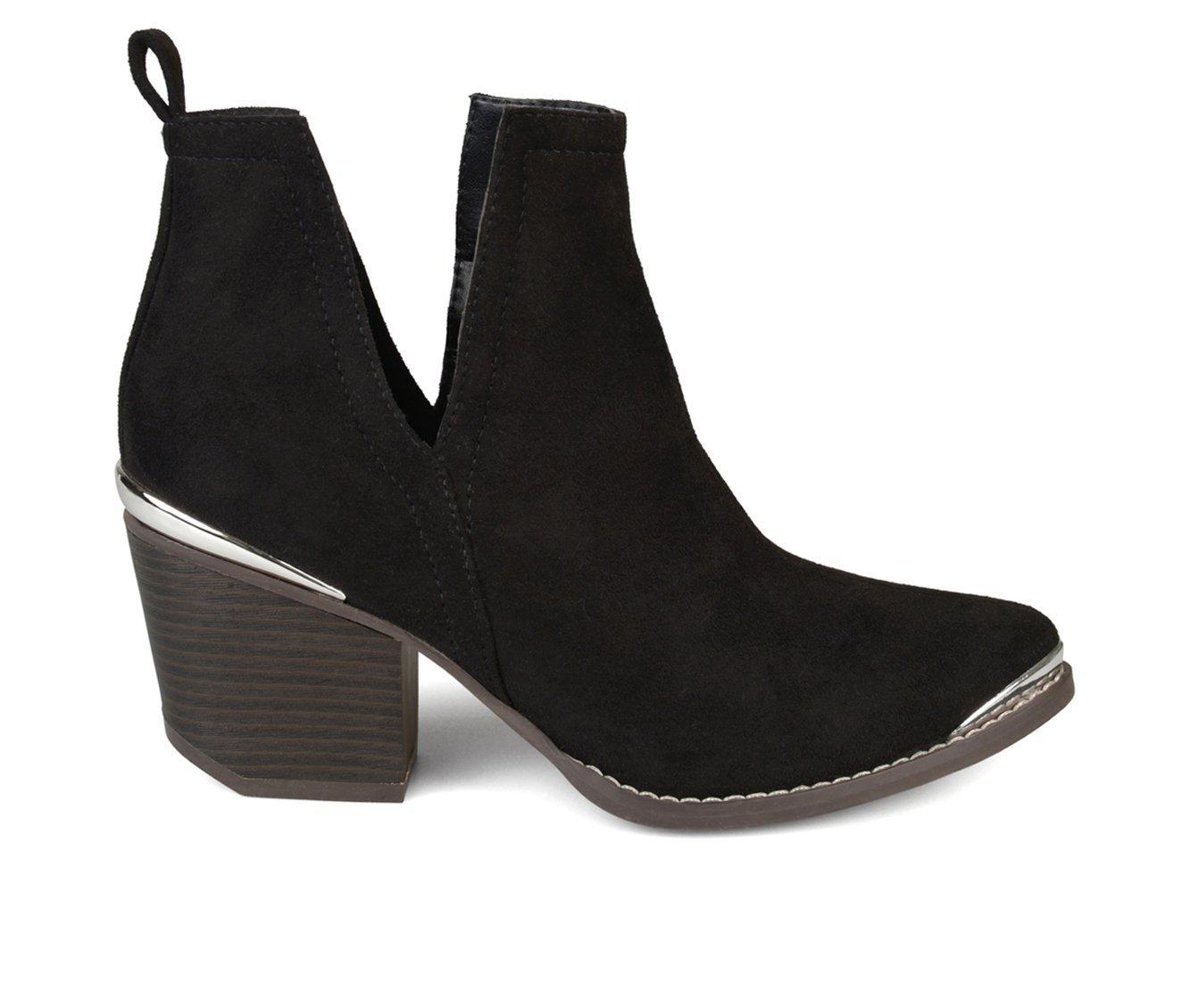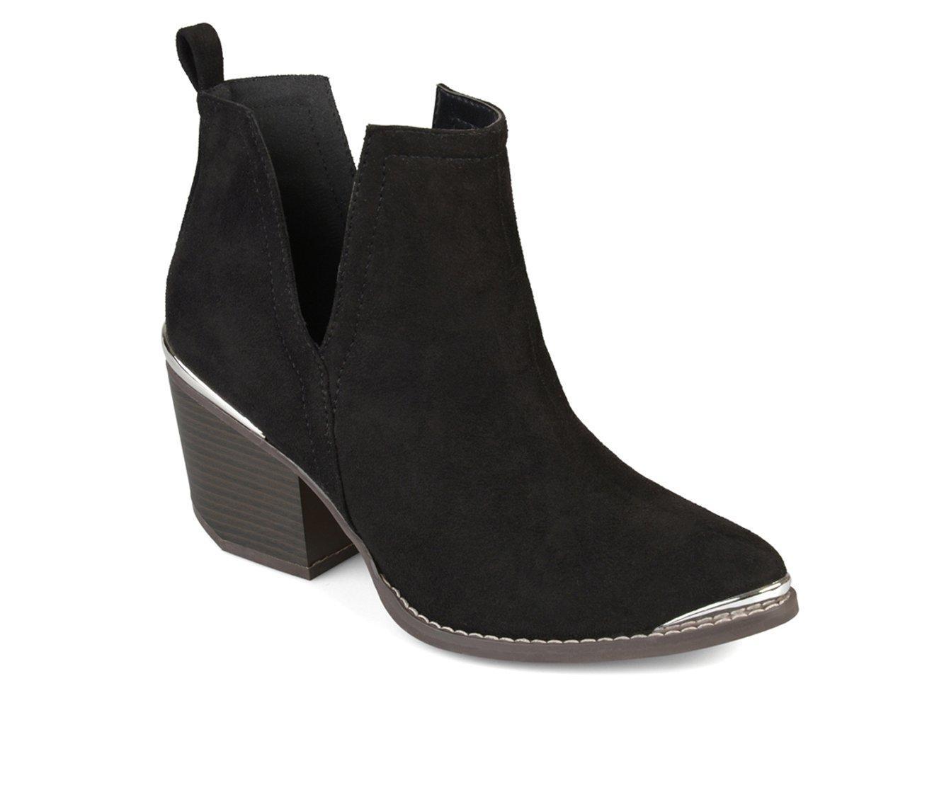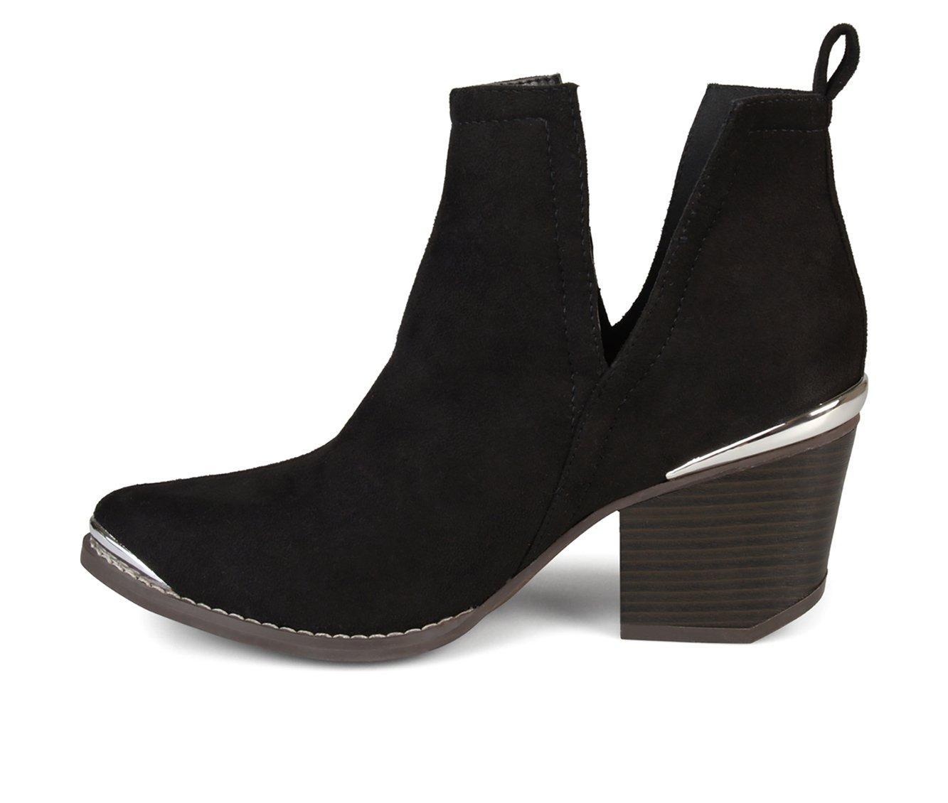 Rock the hottest trend this year in metal detail side split ankle booties by Journee Collection. These ankle booties feature soft faux suede uppers with chic side split detail on each side. Metal detail accents the toe tip and back heels to enhance the look
