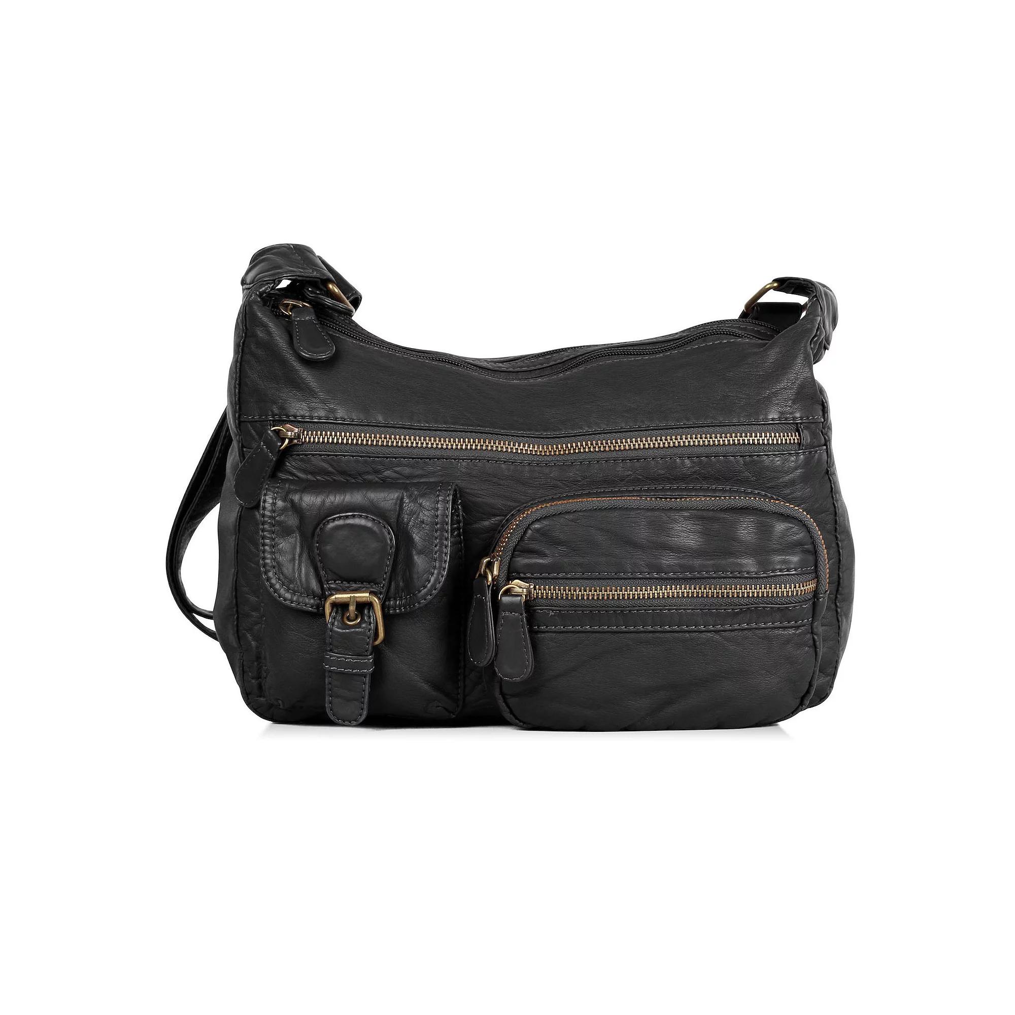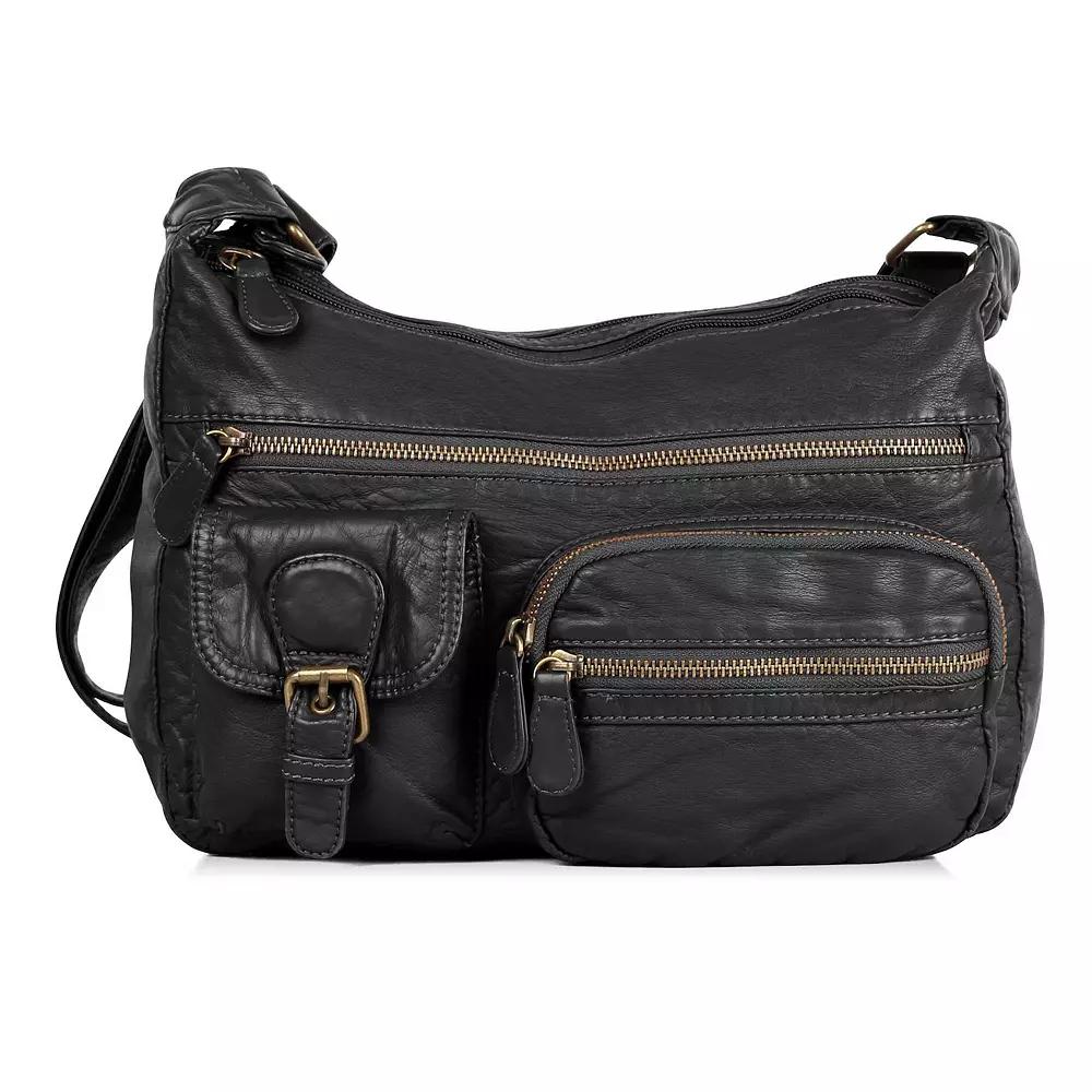 Redefine the style of your everyday look with this stylish piece from Karla Hanson. Redefine the style of your everyday look with this stylish piece from Karla Hanson. HANDBAG FEATURES Water repellent Features a pre-wash treatment for a real leather feelHANDBAG DETAILS 13W x 4.3D x 9.4H Crossbody strap: 15 - 26 Adjustable crossbody strap Closure type: Zipper Exterior: 3 zip pockets, 1 magnetic snap pocket Interior: 1 zip pocket, 1 slip pocketCONSTRUCTION & CARE Polyurethane Lining: polyester Spot clean Imported Size: One Size. Color: Black. Gender: female. Age Group: adult.