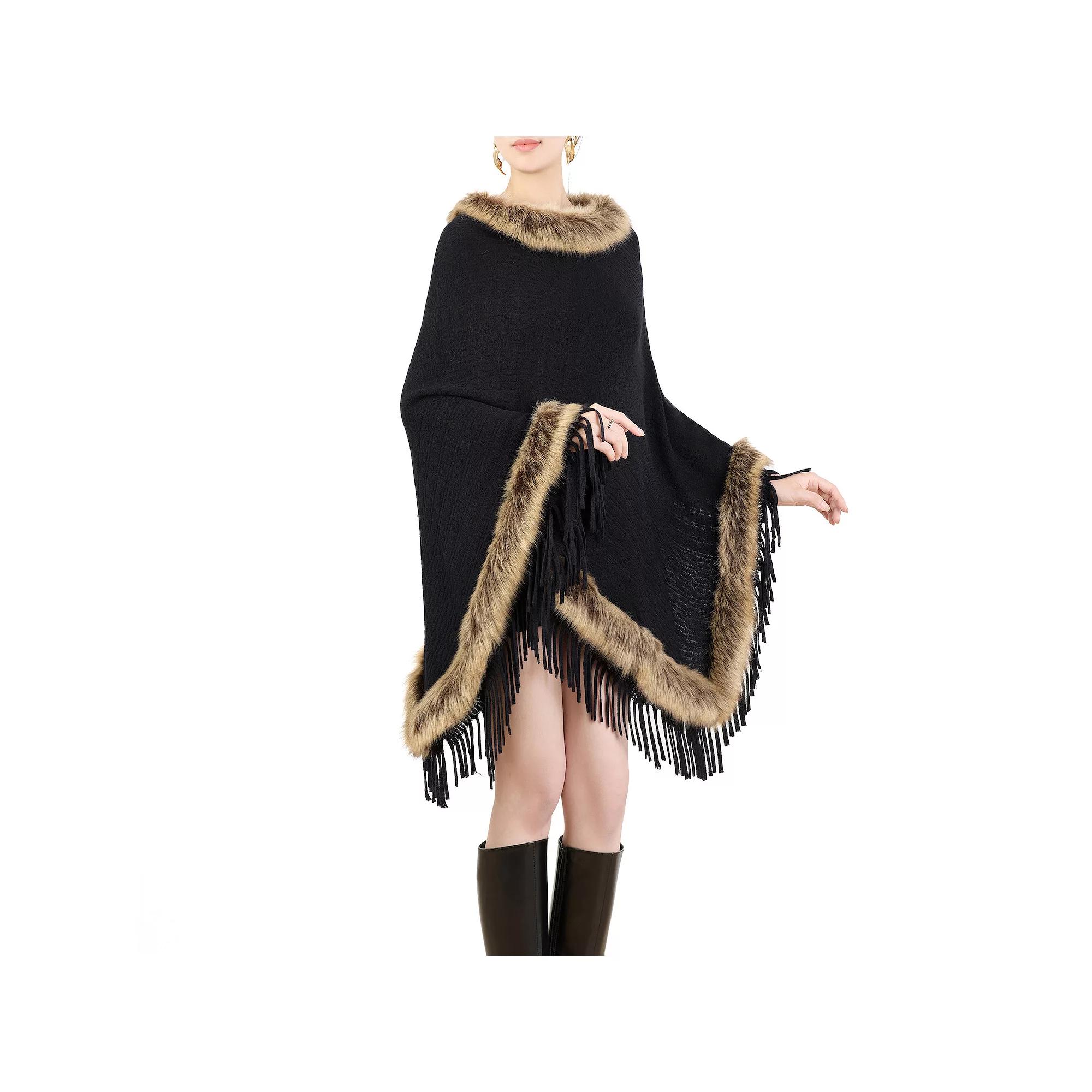 Keep warm on chilly days with this womens Karla Hanson faux fur fringe poncho. Keep warm on chilly days with this womens Karla Hanson faux fur fringe poncho. FEATURES Fringe details Features faux fur construction Heavyweight Arm openings Poncho silhouetteFABRIC & CARE Polyester Spot clean Imported Size: One Size. Color: Black. Gender: female. Age Group: adult.