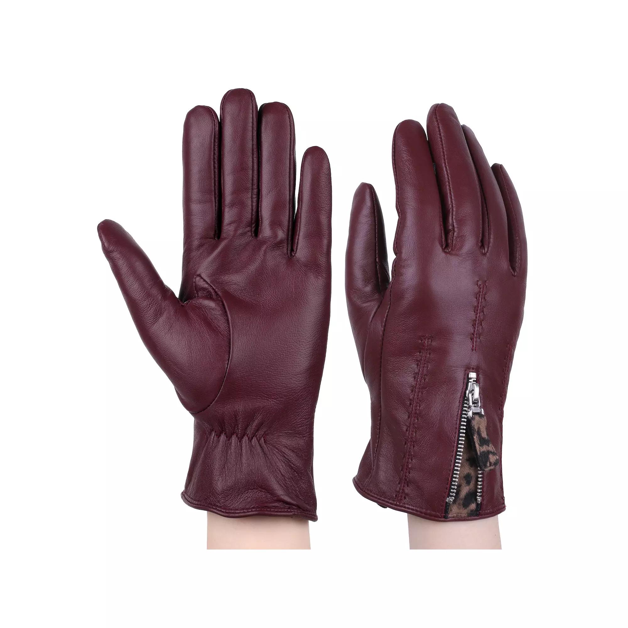 Keep the cold at bay with these fashionable and functional Women's Karla Hanson Leather Gloves with Leopard Gusset. How do you accessorize? Check out our ACCESSORIES GUIDE for essential tips to elevate your style with must-have accessories.Keep the cold at bay with these fashionable and functional Women's Karla Hanson Leather Gloves with Leopard Gusset. How do you accessorize? Check out our ACCESSORIES GUIDE for essential tips to elevate your style with must-have accessories.FEATURES Leopard print gusset Comes in a gift boxFABRIC & CARE Leather Professional leather clean ImportedFIT & SIZING Small hand circumference: 7 in. Medium hand circumference: 7.5 in. Large hand circumference: 7.6 in. Color: Plum Leopard. Gender: female. Age Group: adult.