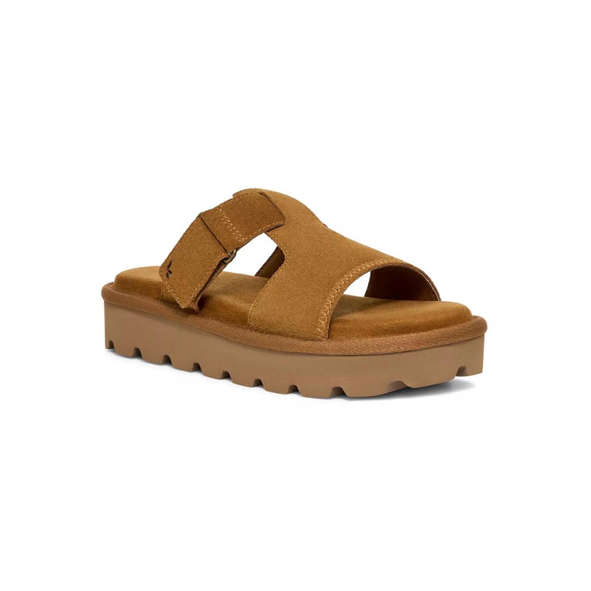 Step into effortless style with the Womens Tizz Slide Sandals, designed for both comfort and flair. Click this FOOTWEAR GUIDE to find the perfect fit and more!Step into effortless style with the Womens Tizz Slide Sandals, designed for both comfort and flair. Click this FOOTWEAR GUIDE to find the perfect fit and more!DETAILS Suede upper Textile Lining Molded EVA outsole Round toe Hook-and-loop tape closure Foam footbed Spot clean Imported Size: 11. Color: Chestnut. Gender: female. Age Group: adult. Material: Leather.