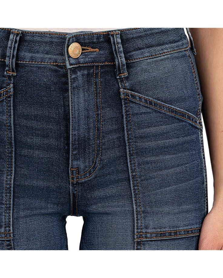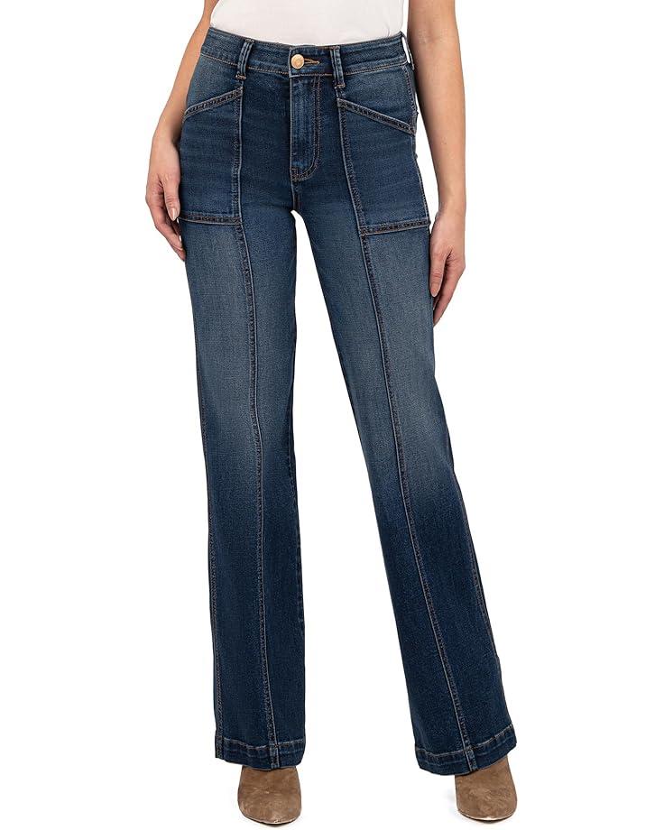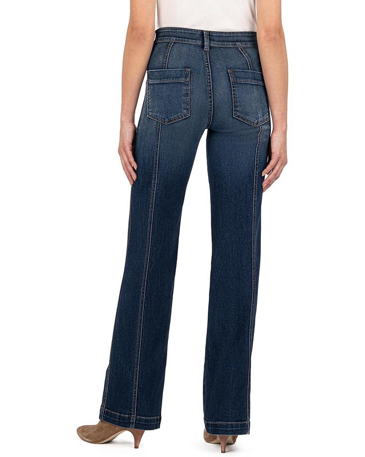 Add a stylish touch to your casual looks wearing KUT from the Kloth™ Jodi High-Rise Wide Leg Front Patch Pockets In Energy Jeans. The stretchable, dark wash jeans feature a high-rise waist with belt loops, a zip-fly & button closure, two front patch pockets, two back patch pockets, and a straight fit with wide-leg style.