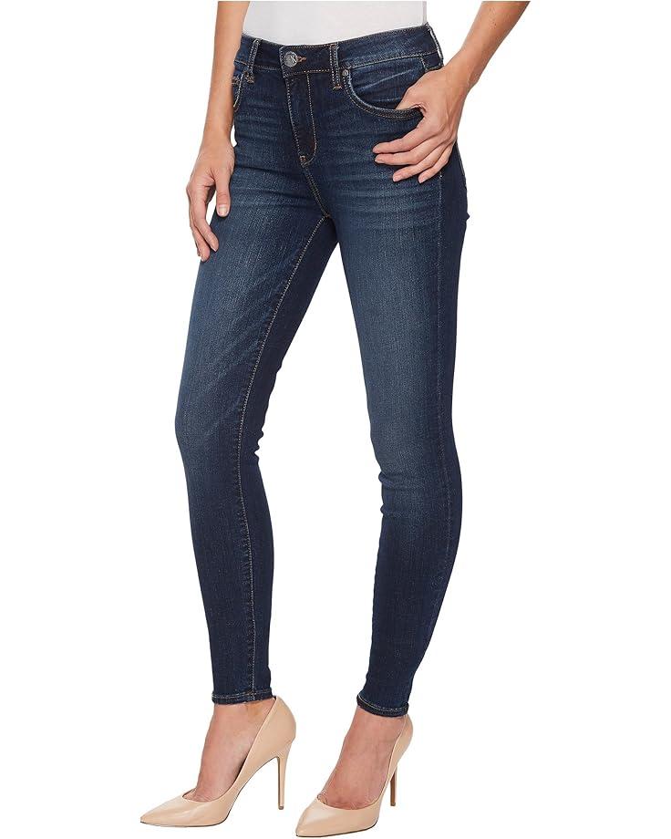 The KUT from the Kloth™ Mia High-Rise Ankle Skinny Jeans is a five-pocket jean in a high rise, slim fit, and skinny leg. Whiskered and faded indigo blue wash on stretch cotton-poly denim.