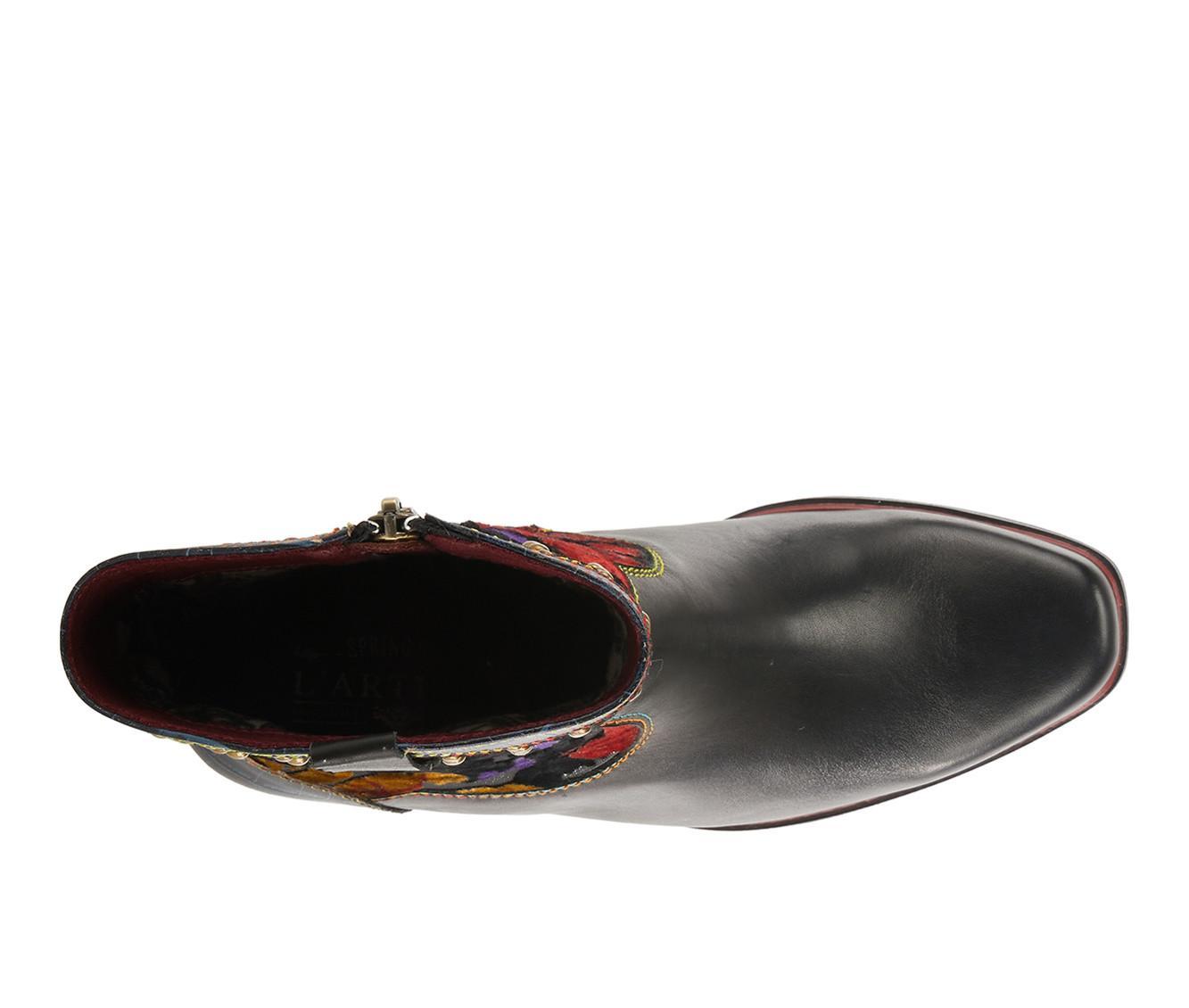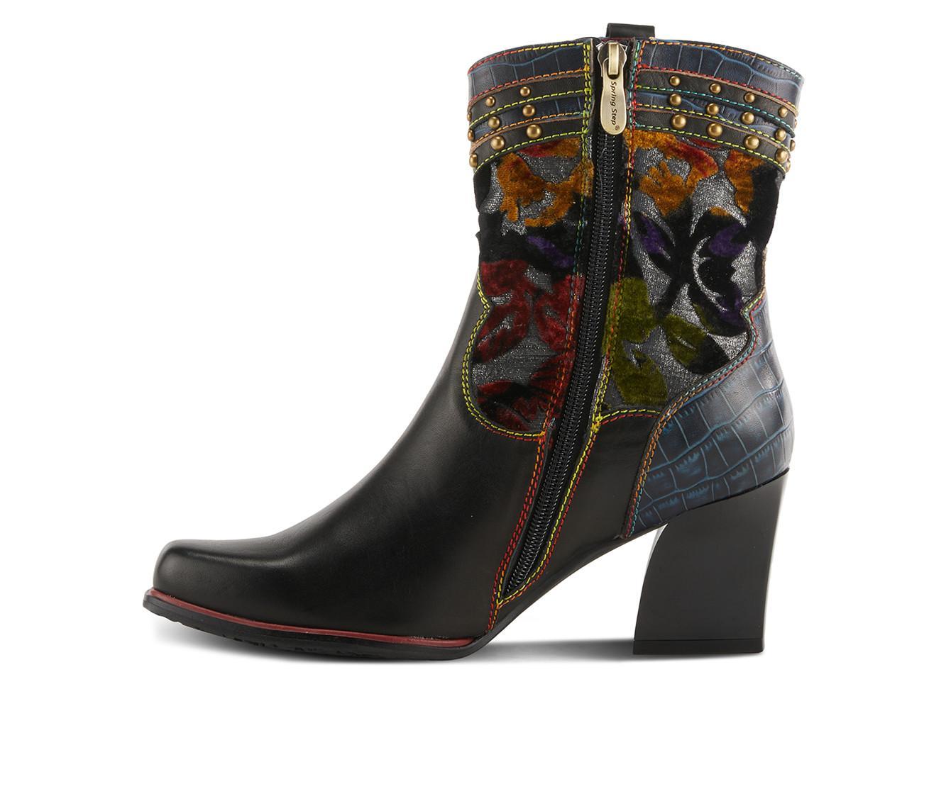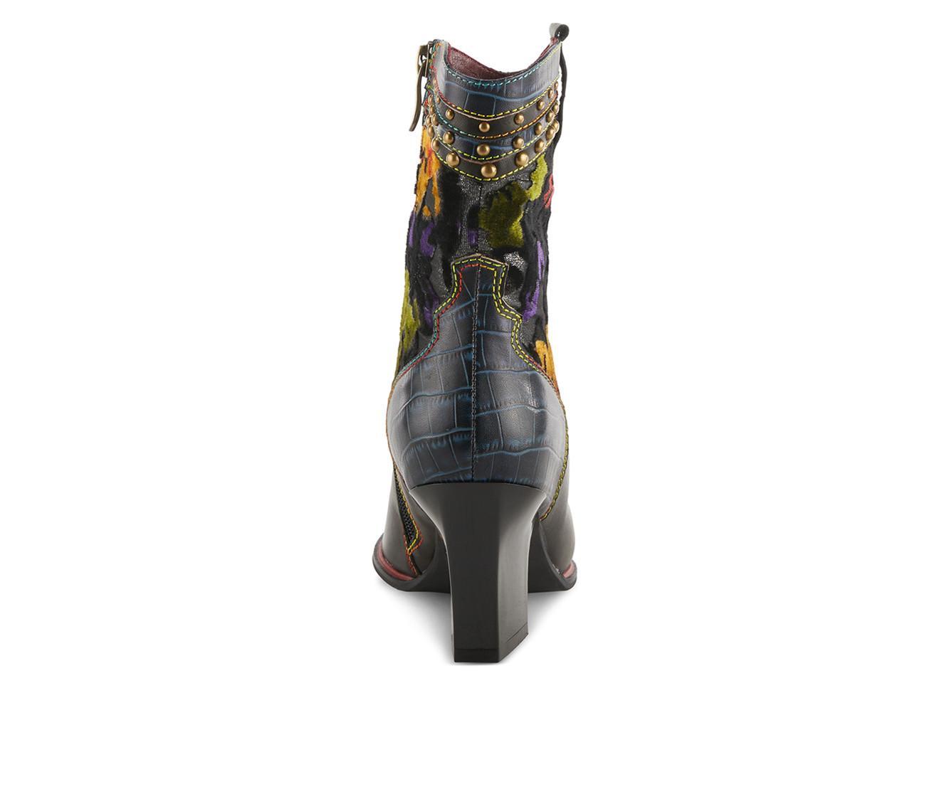 Introducing a super stylish boot that will elevate any outfit with its architectural sculpted heel and brushed and burnished toe box. The unique floral pattern following a croco material on the top of the boot gives it a touch of luxury. The boot is beautifully crafted with attention to detail, wrapped with studs that add to its charm. Wear these boots to make a bold fashion statement and turn heads wherever you go.