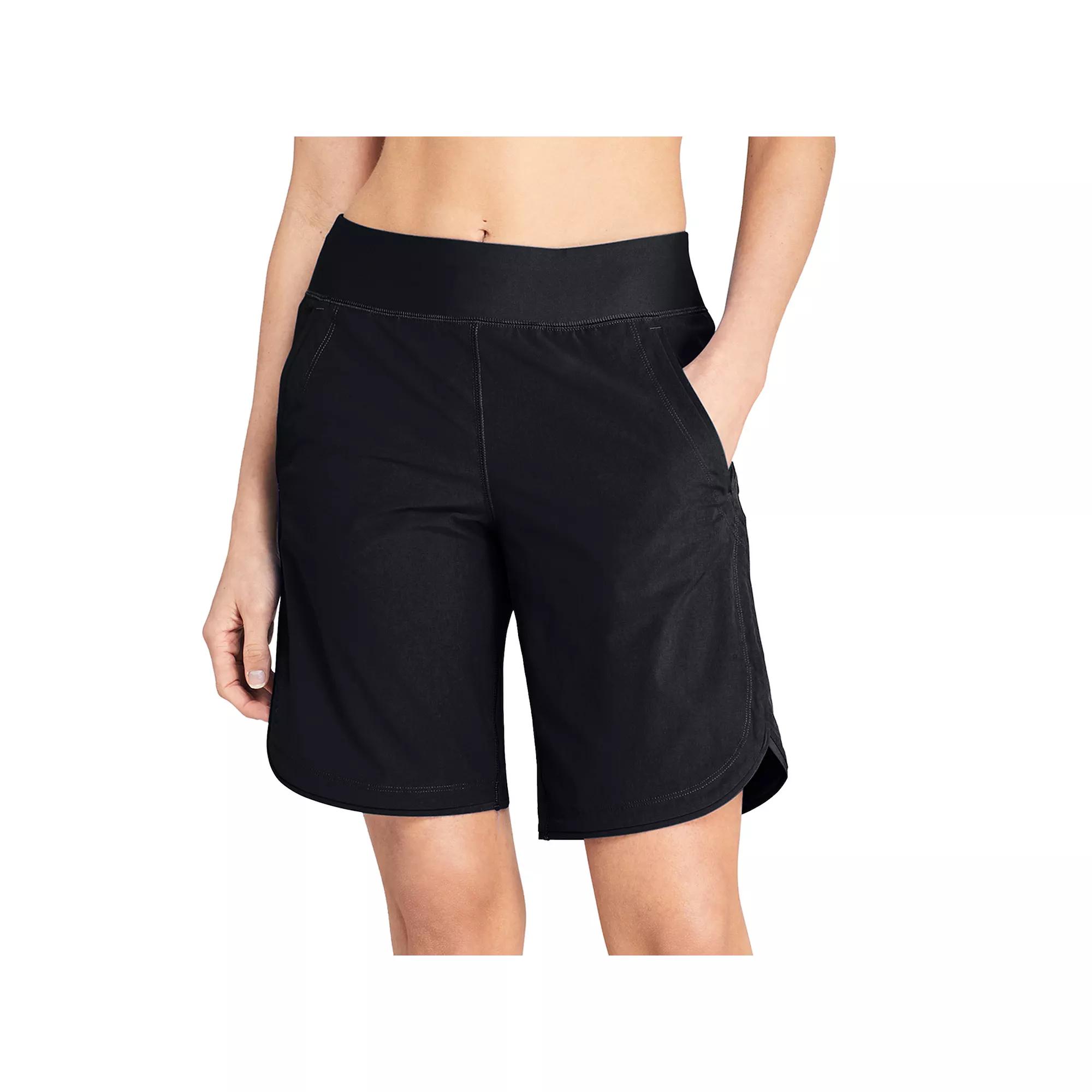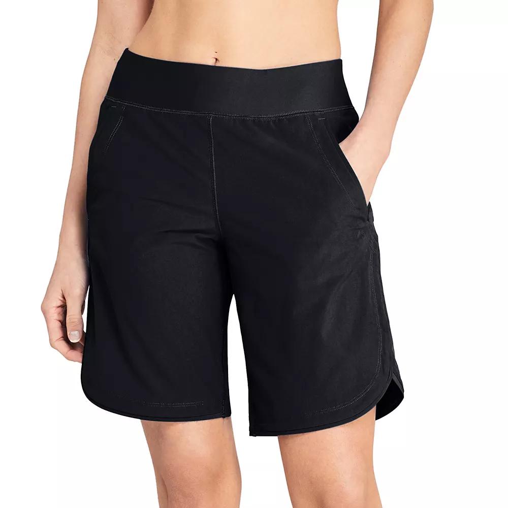Whether you're hanging 10 or just hanging out, you'll love the quick dry comfort and long length of these women's board shorts by Lands' End. Kohl's Lands' End Women's Swim Size Chart - https://www.kohls.com/media/digital/ecom/size-charts/womens/html/Kohls_LandsEnd_Womens_Swim_SizeChart.html. Click on this WOMEN'S GUIDE to find the perfect fit and more! - https://www.kohls.com/feature/womens-fit-guide.jsp. Cling-free, quick dry fabric blend, UPF 50 sun protection, Built-in panty, Thigh minimizer, 2 exterior, 1 interior pockets, Lined. FIT & SIZING: 9-in. inseam, Inner drawstring waistband, High rise sits above the natural waist, Medium-Impact. FABRIC & CARE: Polyester, spandex, Waistband & panty: nylon, spandex, Machine wash, Imported. Size: 18. Color: Black. Gender: female. Age Group: adult. Pattern: Solid. Material: POLY BLEND.