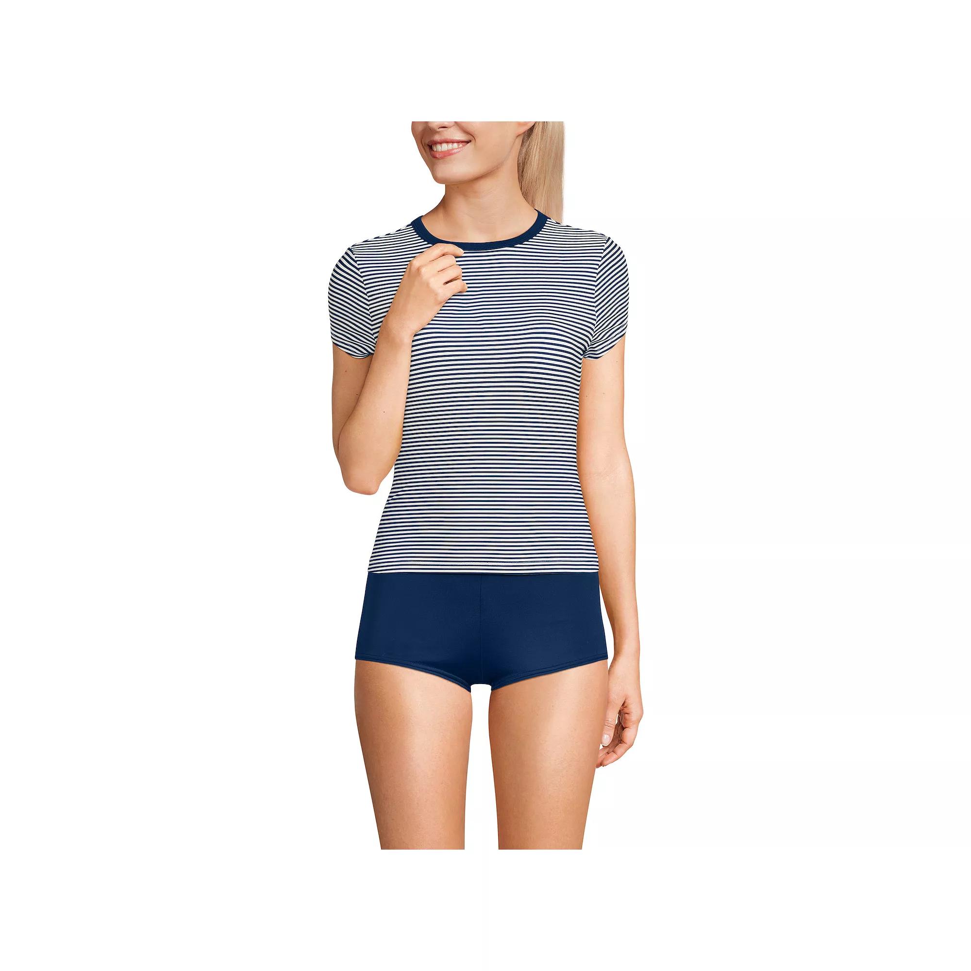 Dive into comfort and style with this fitted swim top from Lands End, designed to flatter and support your every move. With a built-in bra for added convenience and short cap sleeves offering gentle sun protection, this top is perfect for swimming, lounging by the pool, or pairing with your favorite cover-ups. Enjoy the lightweight fabric that keeps you cool and dry while providing excellent coverage for a worry-free day in the sun.Click on this WOMENS GUIDE to find the perfect fit and more!Dive into comfort and style with this fitted swim top from Lands End, designed to flatter and support your every move. With a built-in bra for added convenience and short cap sleeves offering gentle sun protection, this top is perfect for swimming, lounging by the pool, or pairing with your favorite cover-ups. Enjoy the lightweight fabric that keeps you cool and dry while providing excellent coverage for a worry-free day in the sun.Click on this WOMENS GUIDE to find the perfect fit and more!FEATURES No closure - pullover styling Crewneck Set-in cap sleeves UPF 50 sun protection Designed with a built-in bra so it can be worn on its own as a swim top Moisture-wicking finish stands up to sweat while also keeping you cool and dry Lightweight and extra soft fabric for the utmost comfort Generous amount of stretch gives you room to moveFIT & SIZING Fit skims the body, but is not compressive 22-in. length from shoulder to hemFABRIC & CARE 90% nylon, 10% spandex Hand wash Imported Size: X Small. Color: Navy Mini Stripe. Gender: female. Age Group: adult.
