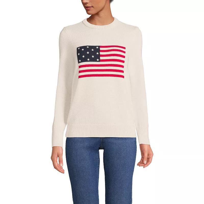 Women's Lands' End Cotton Drifter Crew Neck Sweater,  Product Image