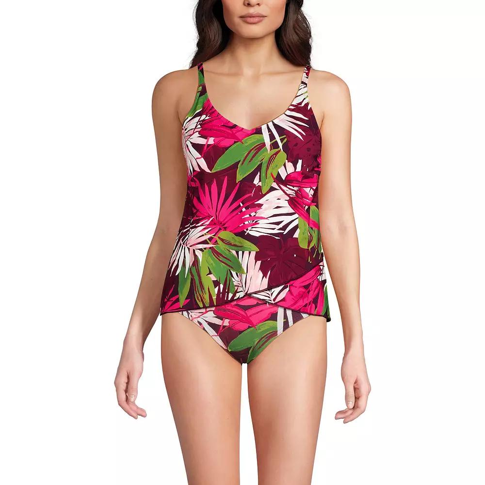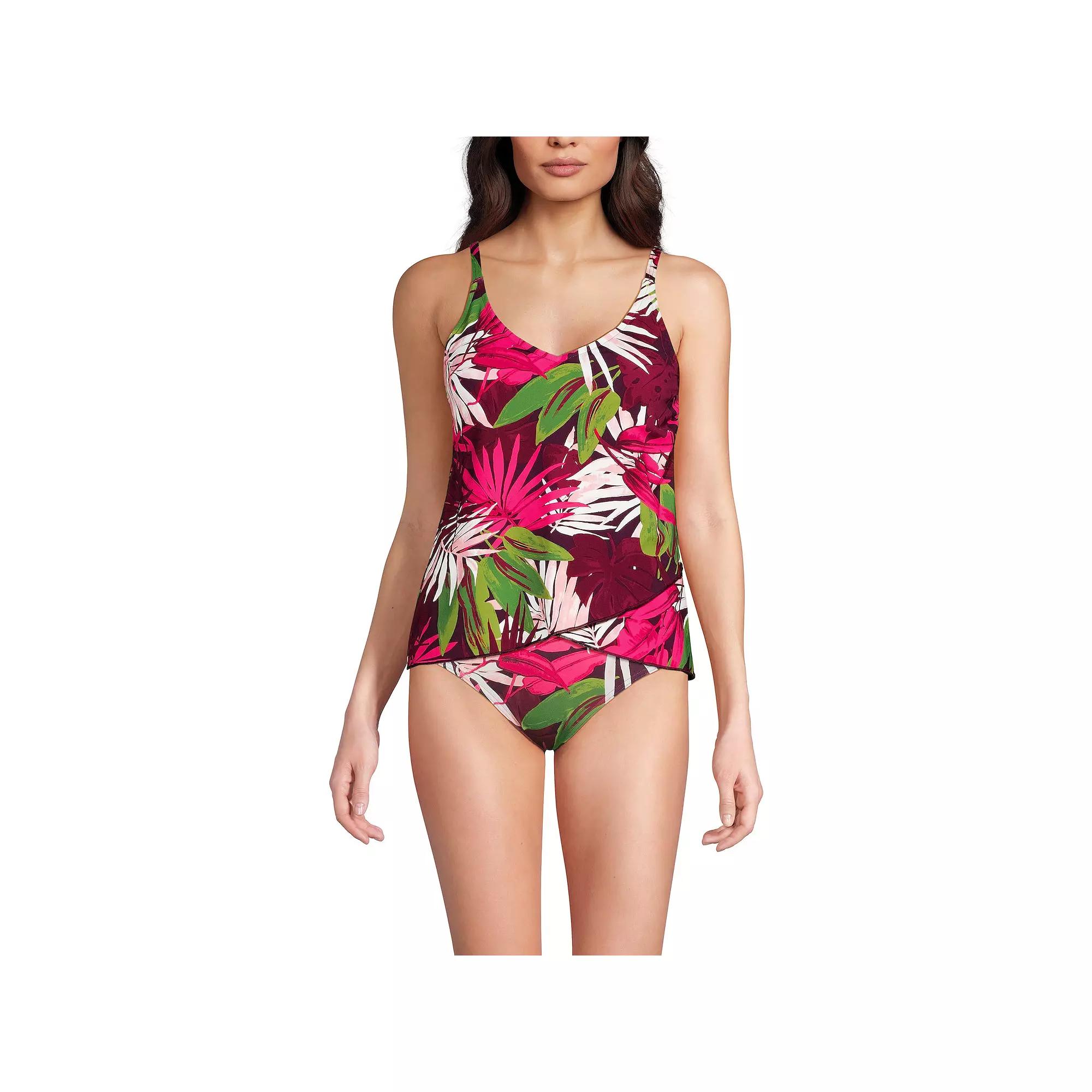 This women's long torso Lands' End tankini swim top features a flattering, tulip hem, perfect for any water activity. Click on this WOMEN'S GUIDE to find the perfect fit and more! - https://www.kohls.com/media/digital/ecom/size-charts/womens/html/Kohls_LandsEnd_Womens_Swim_SizeChart.ht. Click on this WOMEN'S GUIDE to find the perfect fit and more! - https://www.kohls.com/feature/womens-fit-guide.jsp. FIT & SIZING: Wireless, Soft bra cups, Removable cups, Available in long torso, Adjustable straps customize the fit, 2 hook columns. FABRIC & CARE: Nylon, spandex, Hand wash, Imported. FEATURES: V-neck, UPF 50 sun protection, LYCRA® Xtra Life spandex helps your suit last longer, Moderate coverage, Unlined, Sleeveless. Size: Small. Color: Wine Tropical Palm. Gender: female. Age Group: adult. Material: NONE.