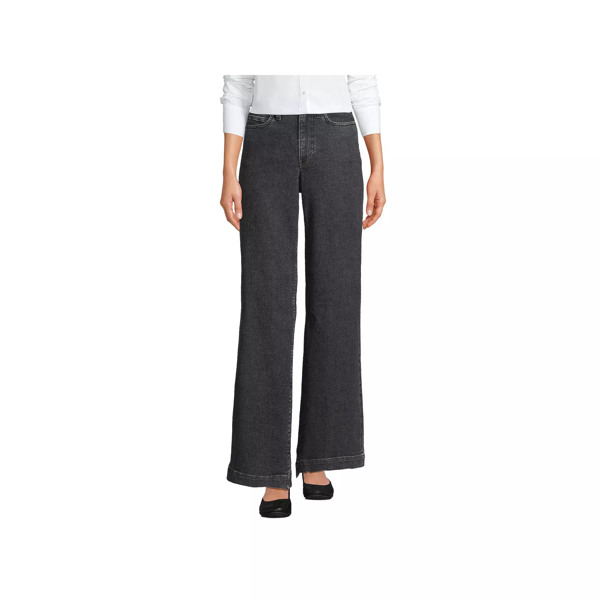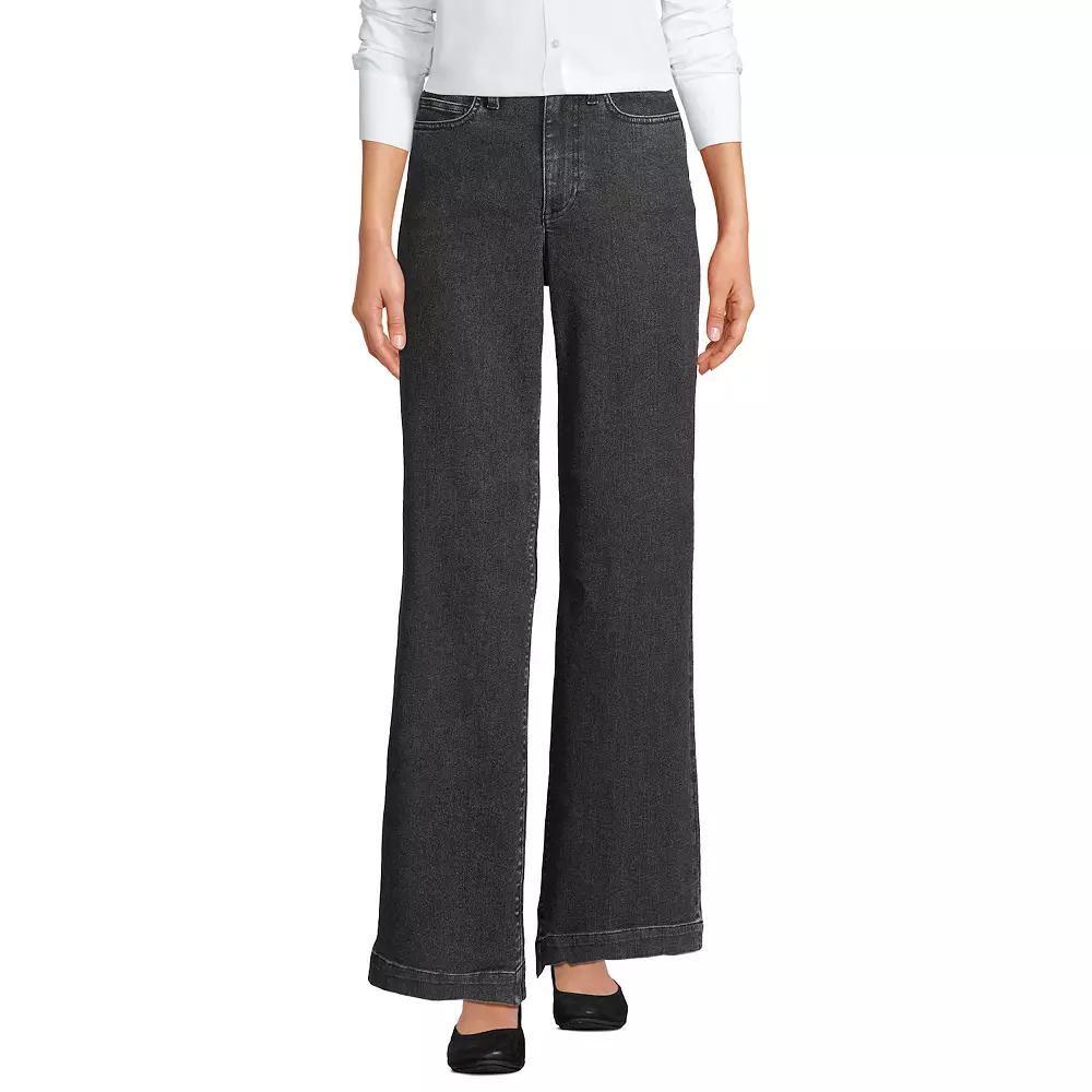 They’re high rise and wide leg, but there’s more than meets the eye. These jeans from Lands' End fit like a dream and we’re giving them major bonus points for containing recycled materials. Click on this WOMEN'S GUIDE to find the perfect fit and more! - https://www.kohls.com/feature/womens-fit-guide.jsp. FEATURES: Classic five-pocket jeans style, Button & zipper front, Unlined, Contains recycled materials. FIT & SIZING: 32-in. inseam, Wide leg style, High rise sits below the natural waistline. FABRIC & CARE: 52.5% cotton, 21% recycled cotton, 25.5% polyester, 1% spandex, Machine wash, Imported. Size: 10X32. Color: Black Stone Wash. Gender: female. Age Group: adult. Material: OTHER MATERIAL.