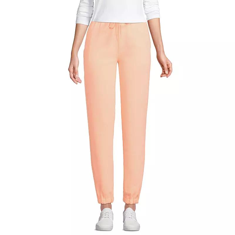 Stay styling in comfort and confidence with these Women's Lands' End Fleece High Waisted Jogger Pants. Click on this WOMEN'S GUIDE to find the perfect fit and more! - https://www.kohls.com/feature/womens-fit-guide.jsp. FEATURES: Drawstring elastic waistband, 2 front on-seam pockets, Pull-on styling, Elastic hem. FIT & SIZING: 29-in inseam, 7 1/4-in leg opening, High rise sits below the natural waistline, Relaxed fit through the hip and thigh. FABRIC & CARE: Cotton, polyester, Fleece construction, Machine wash, Imported. Size: Medium. Color: Peach Sorbet. Gender: female. Age Group: adult.