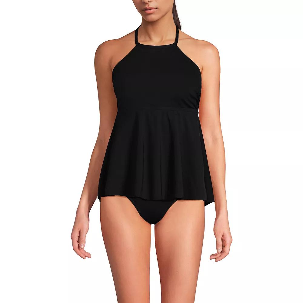 Dive into summer fun with this Lands' End tankini top that combines breezy elegance with a touch of playful flair. With its adjustable halter neck and flattering flutter silhouette, you'll feel fabulous lounging poolside or splashing through the surf, all while enjoying the support and comfort you deserve. Click on this WOMEN'S GUIDE to find the perfect fit and more! - https://www.kohls.com/feature/womens-fit-guide.jsp. FEATURES: Soft stretchy jersey construction, Classic length: Hits at the hip, Medium support with sewn-in soft cup bra, Bust minimizer design, Chlorine-resistant spandex fabric, UPF 50 sun protection, 3% of all 3BRAND revenue is donated to the Why Not You Foundation, a nonprofit organization founded by Russell and Ciara in 2014 dedicated to fighting poverty through education, empowering youth to lead with a why not you attitude. MATERIAL & CARE: Nylon, spandex, Hand wash. DETAILS: No closure - pullover styling, Adjustable straps, Moderate coverage, Halter neckline, Sleeveless, Imported. Size: X Small. Color: Black. Gender: female. Age Group: adult. Material: NONE.