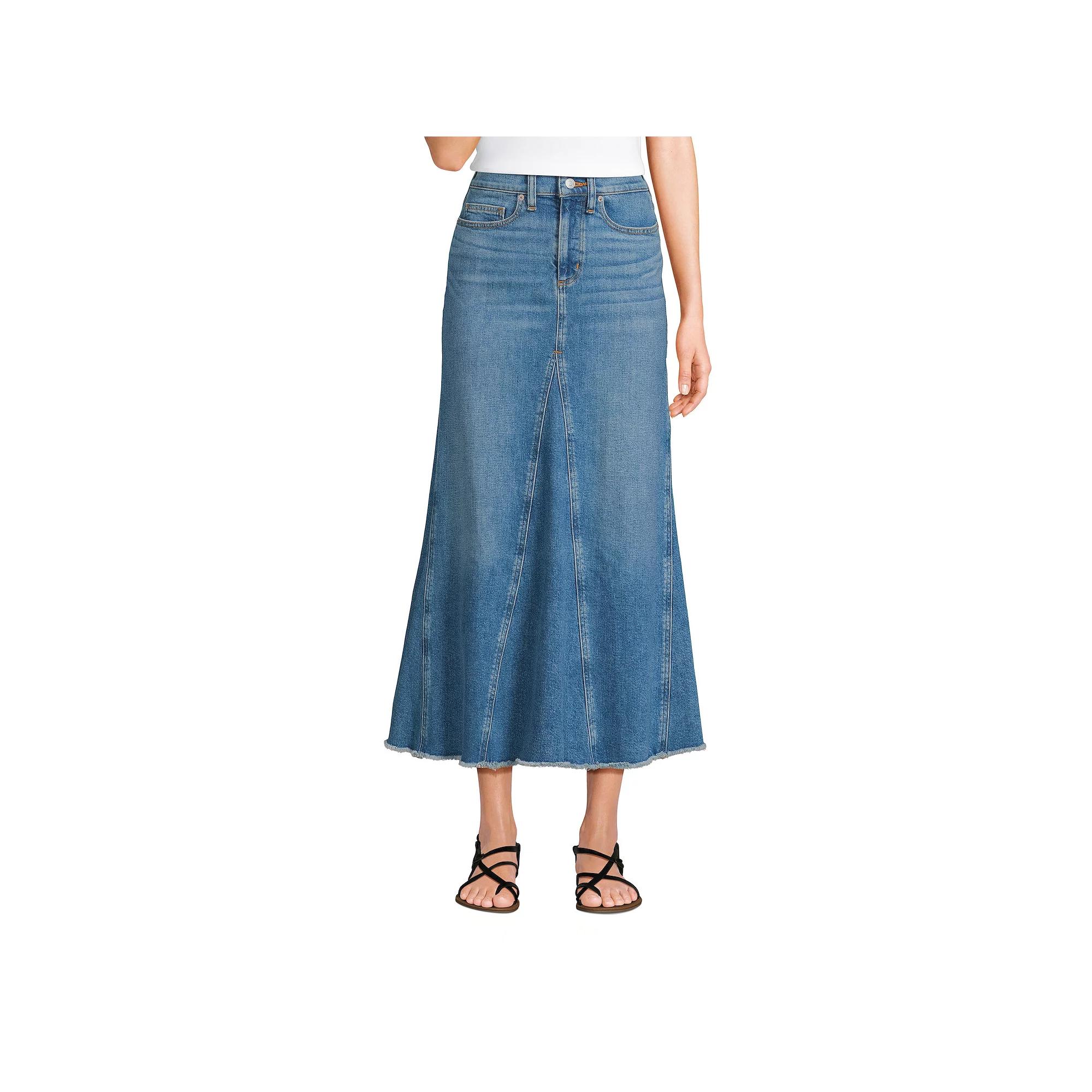 Elevate your style with this flattering denim midi skirt from Lands' End, designed with a chic godet insert that flares beautifully as you move. Crafted for versatility, its classic five-pocket styling and comfortable fit make it easy to dress up with heels or keep it casual with your favorite sneakers, ensuring you look effortlessly stylish any day of the week. Click on this WOMEN'S GUIDE to find the perfect fit and more! - https://www.kohls.com/feature/womens-fit-guide.jsp. FEATURES: Denim godet insert adds flare, Soft feel with a hint of stretch, Button and zip fly, plus belt loops, Classic 5-pocket design. FIT & SIZING: 35-in. length, Maxi length, Midrise sits on the high hip. FABRIC & CARE: Cotton, spandex, Machine wash, Imported. Size: 8. Color: Bay Blue Wash. Gender: female. Age Group: adult. Material: COTTON BLEND.