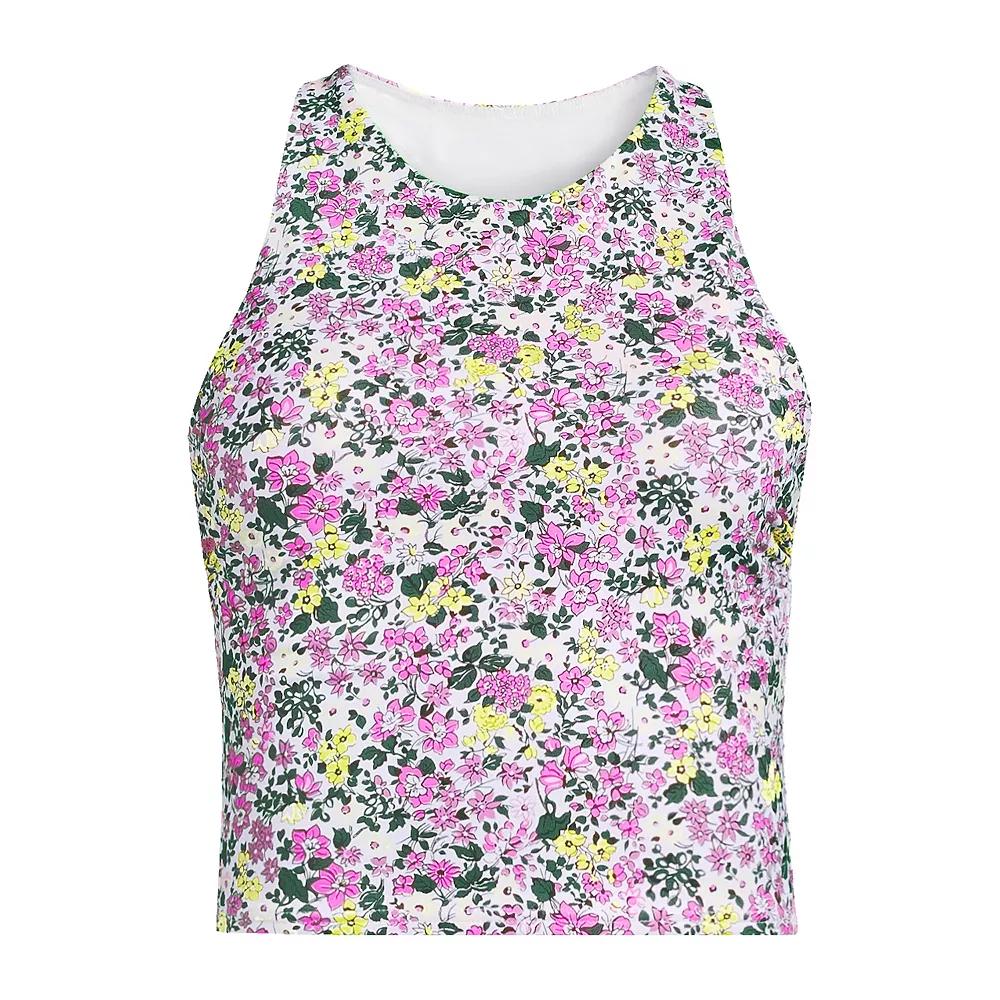 Women's Lands' End High Neck Racerback Tankini Top, Size: 12, White Ditsy Floral