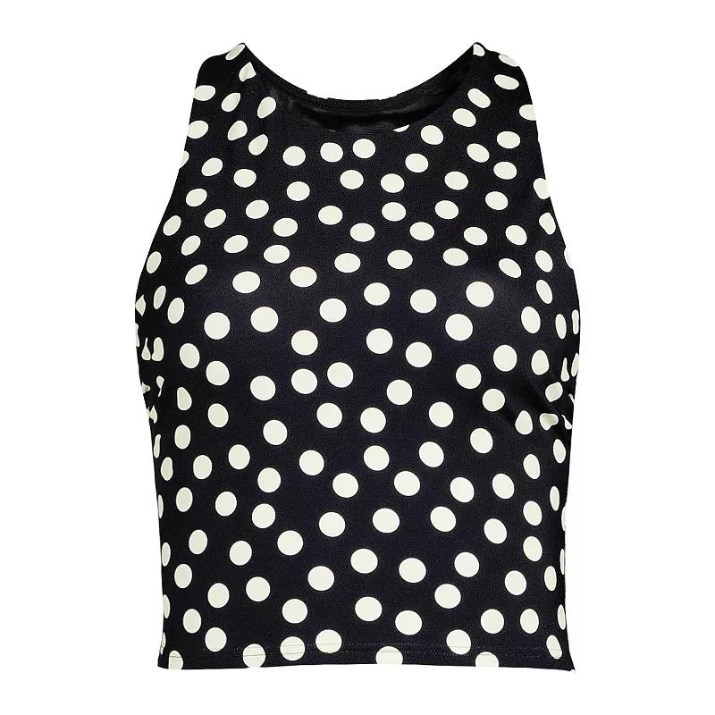 Plus Size Lands' End High Neck Racerback Tankini Swim Top, Women's, Size: 20 W, Black White Dots
