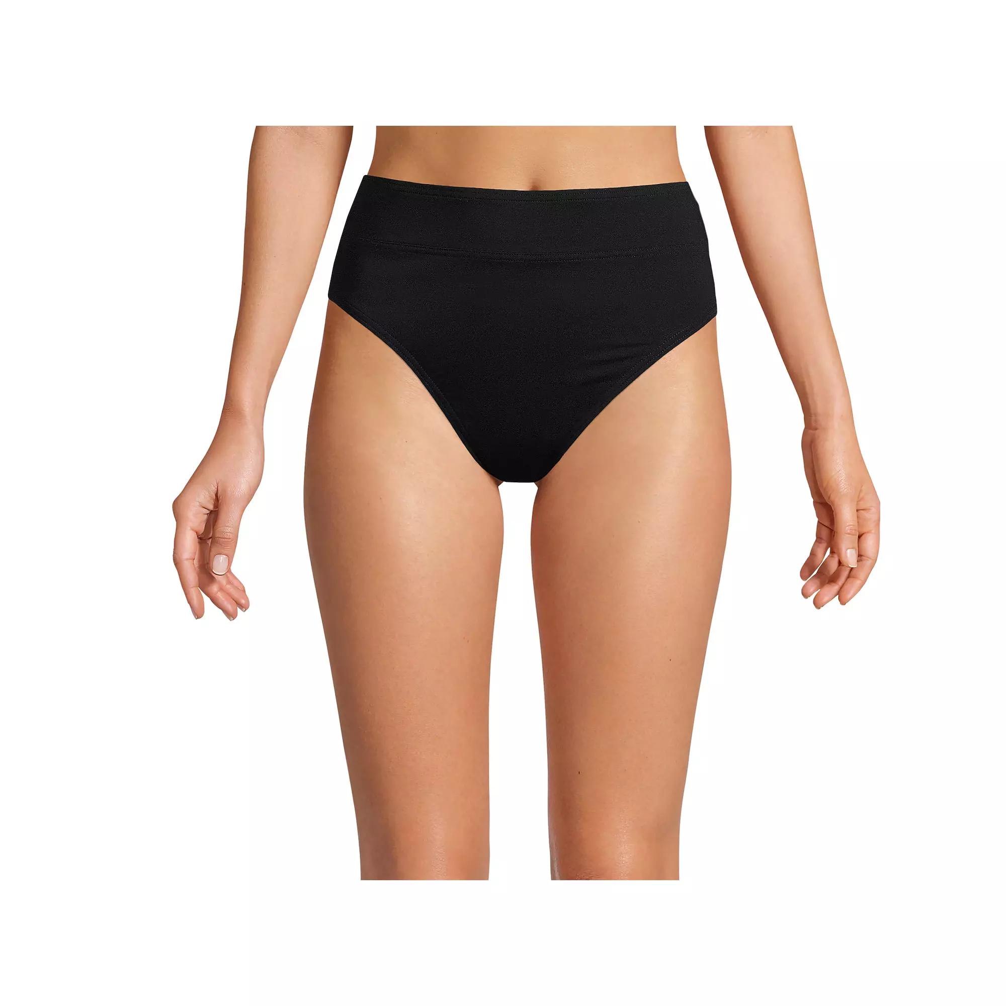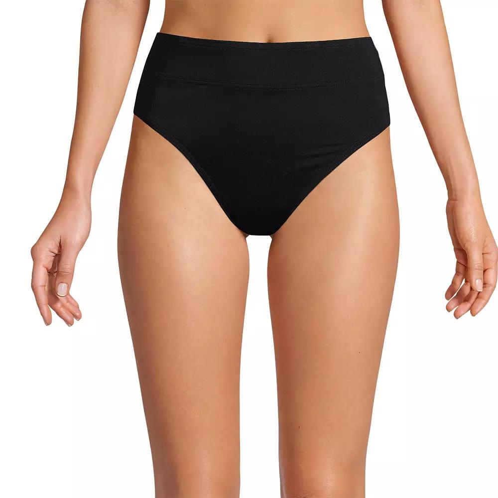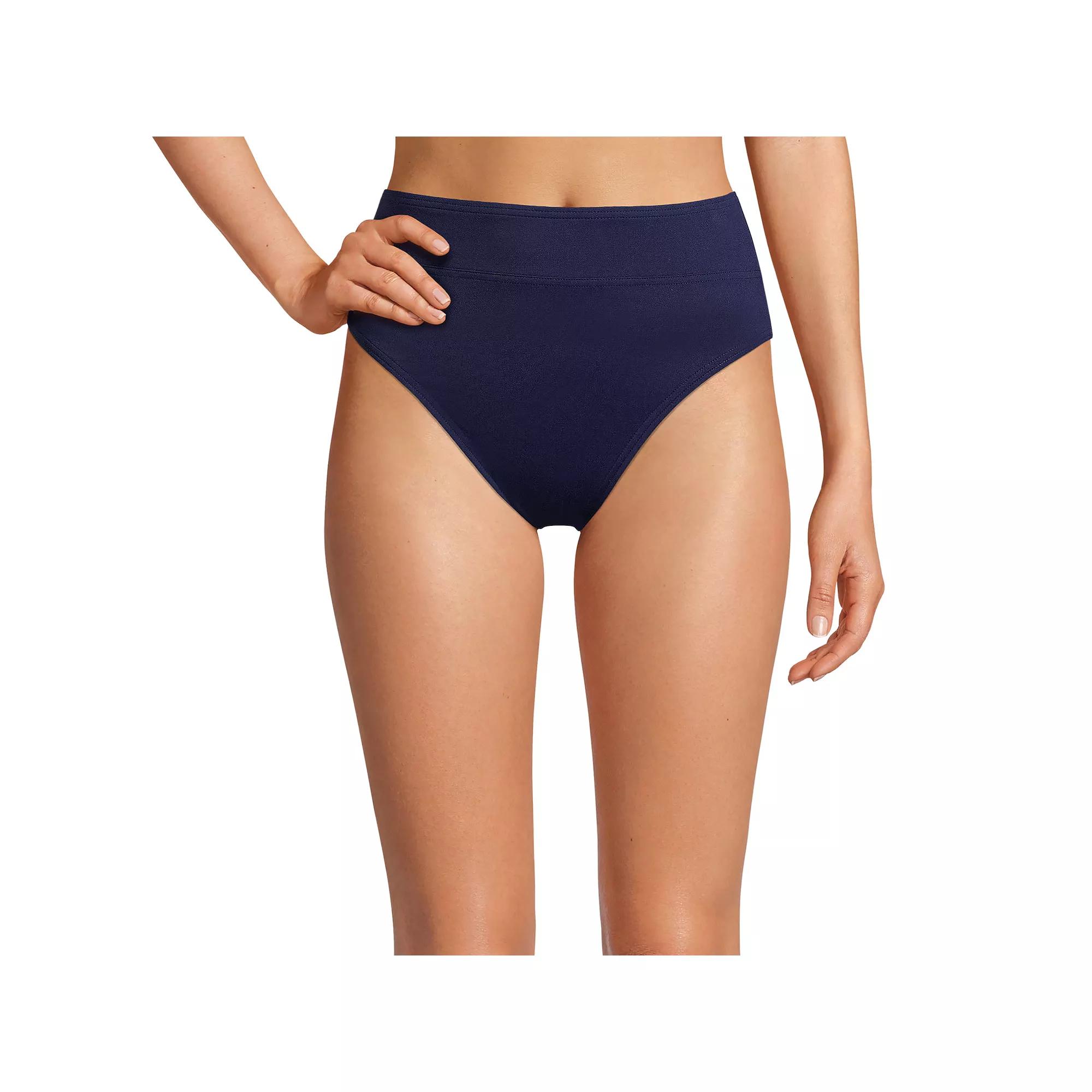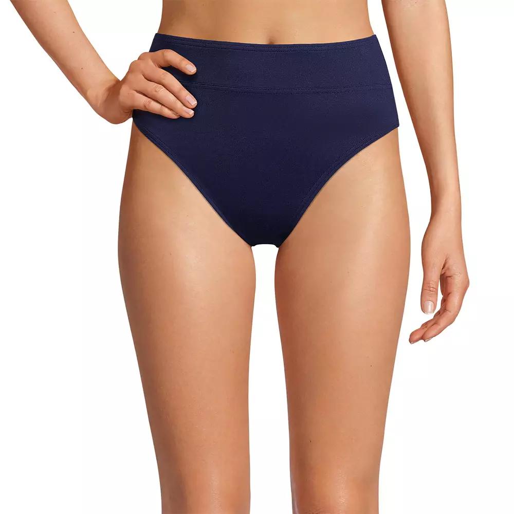 You'll love the high-waist fit of these women's bikini bottoms by Lands' End. Finding the perfect fit and size for women's clothing requires basic measurements of your chest, waist, hips and inseam. Use this guide to learn more about sizing and everything Kohl's has to offer in women's fashion. - https://www.kohls.com/feature/womens-fit-guide.jsp. FEATURES: LYCRA® Xtra Life™ spandex, lasts up to 10 times longer than suits made with ordinary spandex, Resists breakdown from chlorine, sunscreen, UV rays and sweat, Moderate coverage, UPF 50 sun protection, Unlined, Unlined gusset. FIT & SIZING: High rise sits below the natural waistline, Wide waistband offers a smoother, more comfortable fit. FABRIC & CARE: Nylon, spandex, Hand wash, Imported. Size: X Small. Color: Deep Navy. Gender: female. Age Group: adult. Pattern: Solid. Material: NONE.