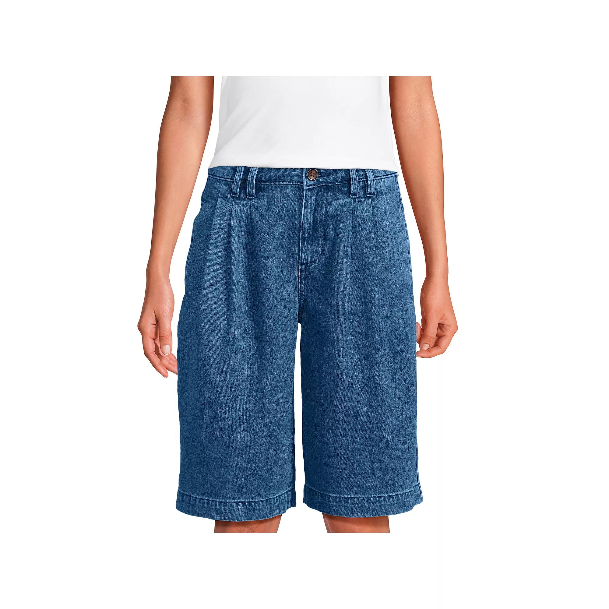 Elevate your summer style with these Lands' End slouchy shorts, crafted from lightweight denim for ultimate comfort. Featuring front pleats and a polished design, these mid-rise shorts pair perfectly with anything from fitted tanks to oversized shirts, making them a must-have for your warm weather wardrobe. Click on this WOMEN'S GUIDE to find the perfect fit and more! - https://www.kohls.com/feature/womens-fit-guide.jsp. FEATURES: Lightweight denim construction, 2 front pockets, 1 back welt pocket, Button closure and zipper fly, Runs small, size up for a better fit. FIT & SIZING: Regular fit, 12-in. inseam, Midrise sits on the high hip, Relaxed fit through the hip and thigh, Wide leg opening. FABRIC & CARE: Cotton, Machine wash, Imported. Size: 14. Color: Canal Blue Wash. Gender: female. Age Group: adult. Material: OTHER MATERIAL.