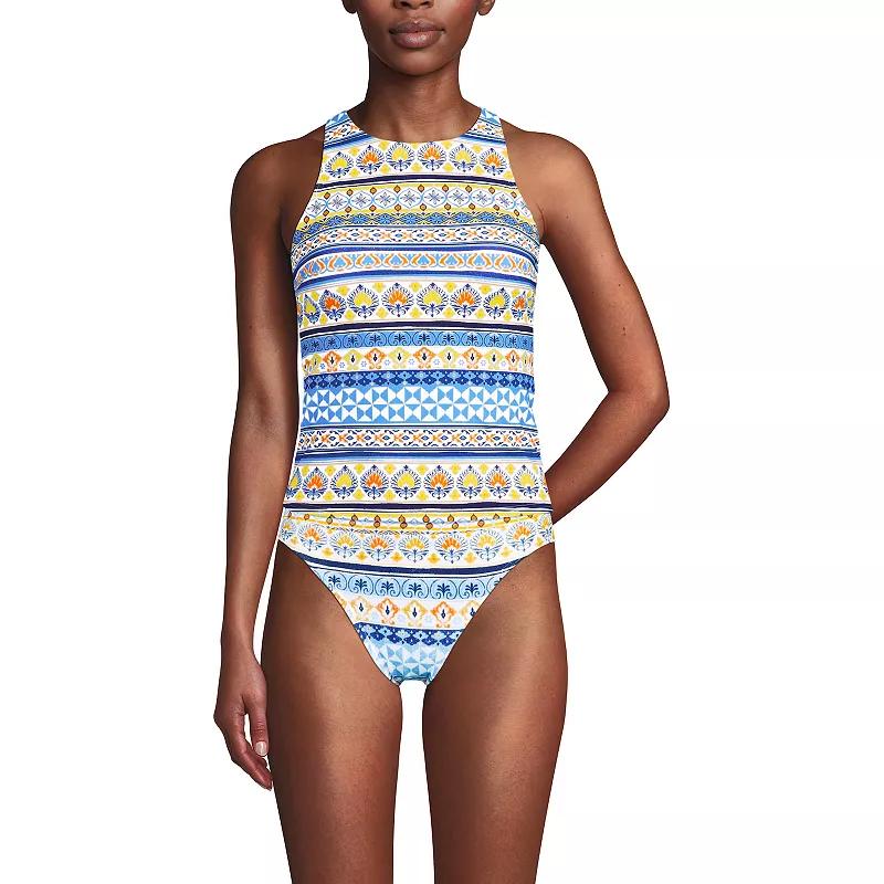 Dive into summer with confidence in this Lands' End high neck tankini swim top. Designed for a flattering fit, its secure racerback and high-compression fabric offer the support you need for swimming and sunbathing, while the stylish crisscross straps and generous coverage ensure you look chic all day long. Click on this WOMEN'S GUIDE to find the perfect fit and more! - https://www.kohls.com/feature/womens-fit-guide.jsp. FEATURES: Soft bra cups, Moderate coverage, UPF 50+ sun protection, Snap closure, Sleeveless, Unlined gusset, High neckline. FIT & SIZING: Detachable straps. FABRIC & CARE: Polyester, spandex, Hand wash, Imported. /* desktop styles */ #aboutTheBrandTabContent h2 { font: 1.25em 'Gotham 7r', Helvetica, Arial, sans-serif; color: #3e3935; padding-top: .75em; } #aboutTheBrandTabContent p { font: .88em/1.62 'Gotham 5r', Helvetica, Arial, sans-serif; } #aboutTheBrandTabContent a { font: .88em 'Gotham 5r', Helvetica, Arial, sans-serif; } /* mcom styles */ #acc-aboutTheBrand h2 { font: 1.25em 'Gotham 7r', Helvetica, Arial, sans-serif; color: #3e3935; padding-top: .75em; text-align: center; } #acc-aboutTheBrand p{ font: 1.06em/1.62 'Gotham 5r', Helvetica, Arial, sans-serif; width: auto; text-align: center; } #acc-aboutTheBrand a{ font: 1.1em 'Gotham 5r', Helvetica, Arial, sans-serif; width: auto; text-align: center; }. Lands' End makes “Sunday comfort” part of your every day. Here, comfy is found in softer, stronger fabrics made into versatile layers to work for you—wherever life takes you. Comfy is a just-right fit that makes you feel great with the way you look. Comfy exists at Lands' End for everyone, everywhere and with every wear. Shop the Lands' End Collection Now. - https://www.kohls.com/catalog/lands-end.jsp?CN=Brand:Lands%27%20End&icid=20220112-m-lands-end-about-the-brand. Size: 16 Dd. Color: White Mosaic Stripe. Gender: female. Age Group: adult. Material: NONE.