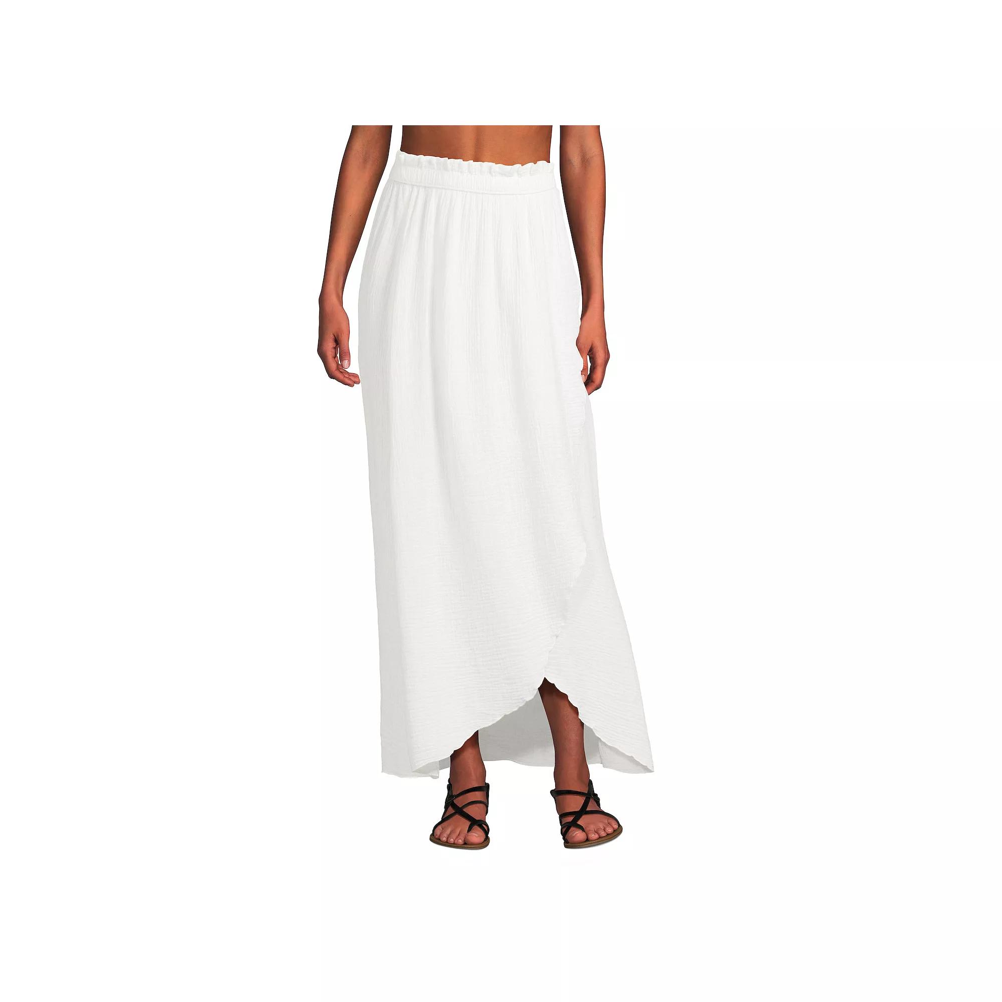 Step into summer with effortless elegance in this Lands' End maxi cover-up skirt. Its light, breathable fabric and comfortable elastic waist create a perfect blend of comfort and style, making it an ideal choice for layering over your favorite swimsuit or pairing with the matching dolman sleeve crop top for a chic beach day look. Click on this WOMEN'S GUIDE to find the perfect fit and more! - https://www.kohls.com/feature/womens-fit-guide.jsp. FEATURES: A-line silhouette, Lightweight and extra soft for the utmost comfort, No closure - pull-on styling, Unlined, Ruffled hem. FIT & SIZING: Relaxed fit, Elastic waistband, Maxi length hits at the ankle, High rise sits below the natural waistline, 37-in. length. FABRIC & CARE: Cotton, Machine wash, Imported. Size: Large. Color: Chalk White. Gender: female. Age Group: adult. Material: POLY BLEND.