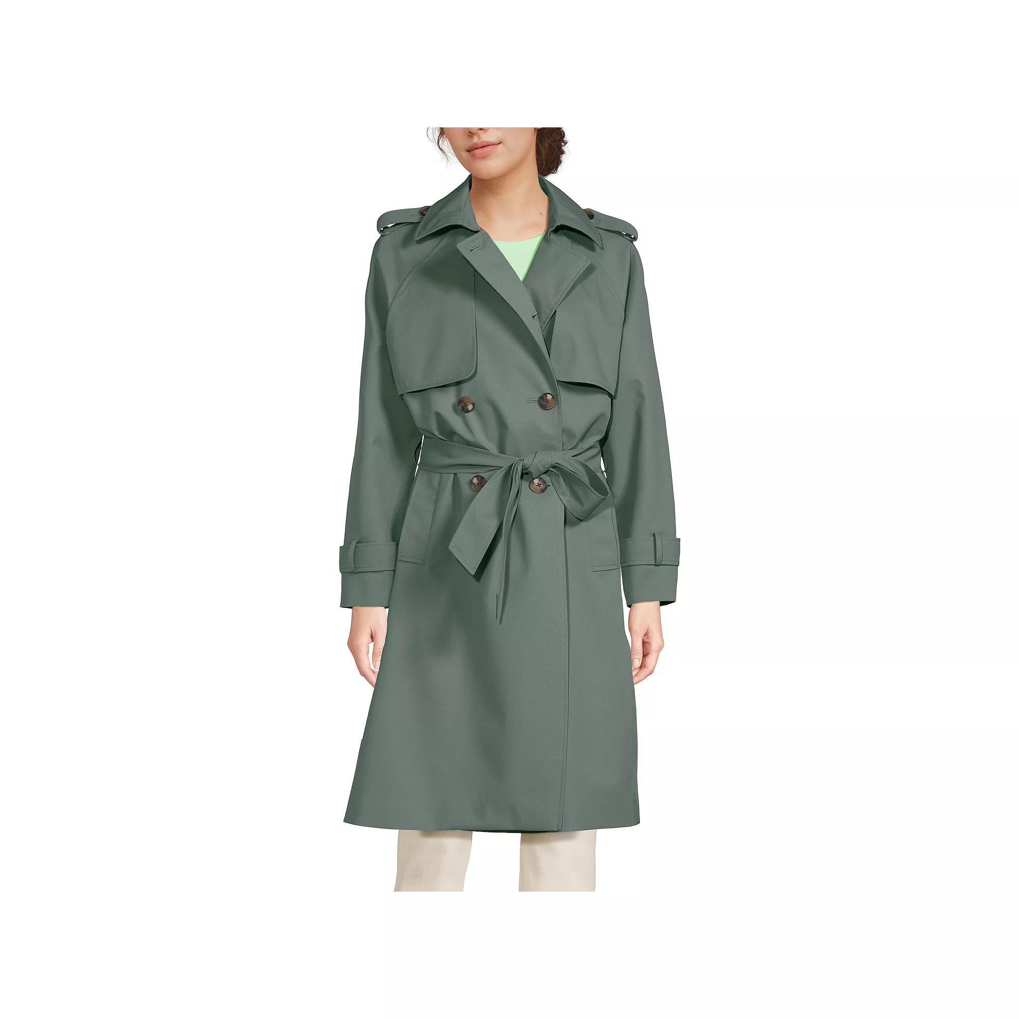 Elevate your rainy-day wardrobe with this stylish trench from Lands' End, designed to keep you dry while turning heads. Featuring a flattering semi-fitted silhouette with classic double-breasted buttons and a chic waist tie, this coat offers both protection from the elements and versatility in styling, making it a perfect companion for any outdoor adventure. Click on this WOMEN'S GUIDE to find the perfect fit and more! - https://www.kohls.com/feature/womens-fit-guide.jsp. FEATURES: Fully seam sealed and a waterproof shell helps keep you dry in inclement weather, Windproof fabric prevents cold air from cutting through and helps trap warmth in, Waterproof technology, Double-breasted buttons, plus full stand collar, Smooth and silky, Shoulder epaulettes, Two wide welt hip pockets, plus interior pocket, Front gunpatch and hanging back yoke, Adjustable drawcord hem, Waist tie, plus belt loops for cinching, helps to keep the elements out, Long sleeves, Fully lined. FIT & SIZING: Semi fitted: fits slightly away from the body, shaped slightly in the waist, 40-in. length from shoulder to hem. FABRIC & CARE: Polyester, Polyester, rayon lining, Machine wash, Imported. Size: Medium. Color: Spruce. Gender: female. Age Group: adult.