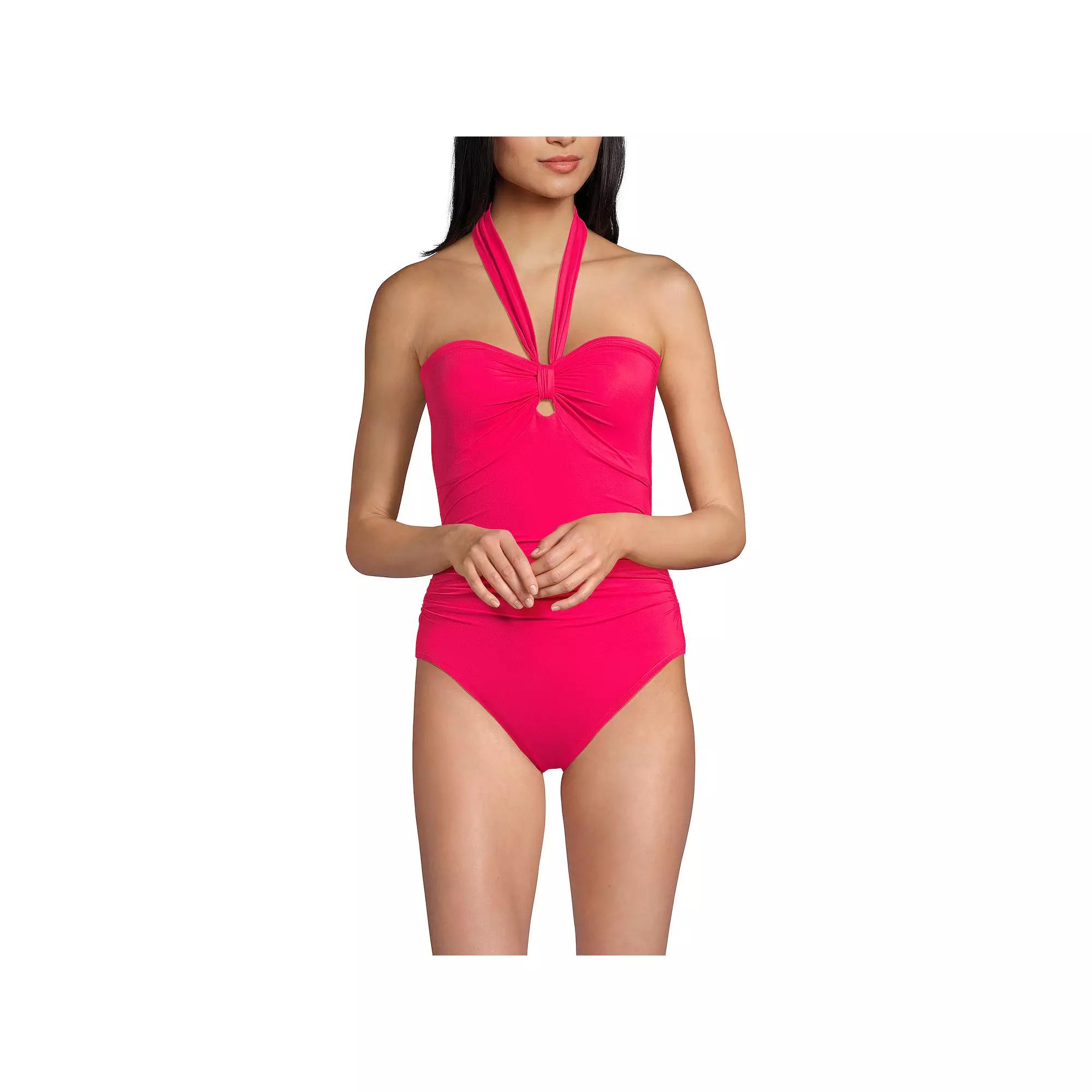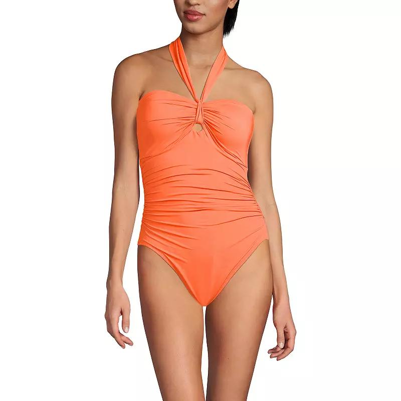 Step into summer with confidence in this sleek, ultra-flattering swimsuit from Lands' End. Featuring a versatile design that transitions from halter to strapless, combined with a high-leg cut to elongate your silhouette, this piece offers all-over support and smoothing control, perfect for lounging by the pool or diving into the waves. Click on this WOMEN'S GUIDE to find the perfect fit and more! - https://www.kohls.com/feature/womens-fit-guide.jsp. FEATURES: Soft bra cups, Moderate coverage, Bust minimizer, Comfortable, confidence-boosting fit, UPF 50 sun protection, No closure - pullover styling, Halter neckline, Sleeveless, Unlined, Underwire. FIT & SIZING: Adjustable straps. FABRIC & CARE: Nylon, spandex, Hand wash, Imported. Size: 10. Color: Papaya Orange. Gender: female. Age Group: adult. Material: NONE.