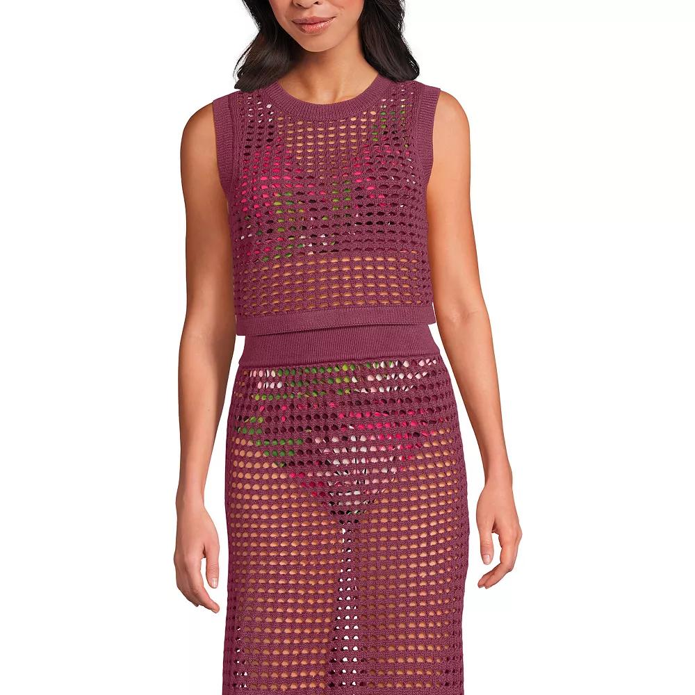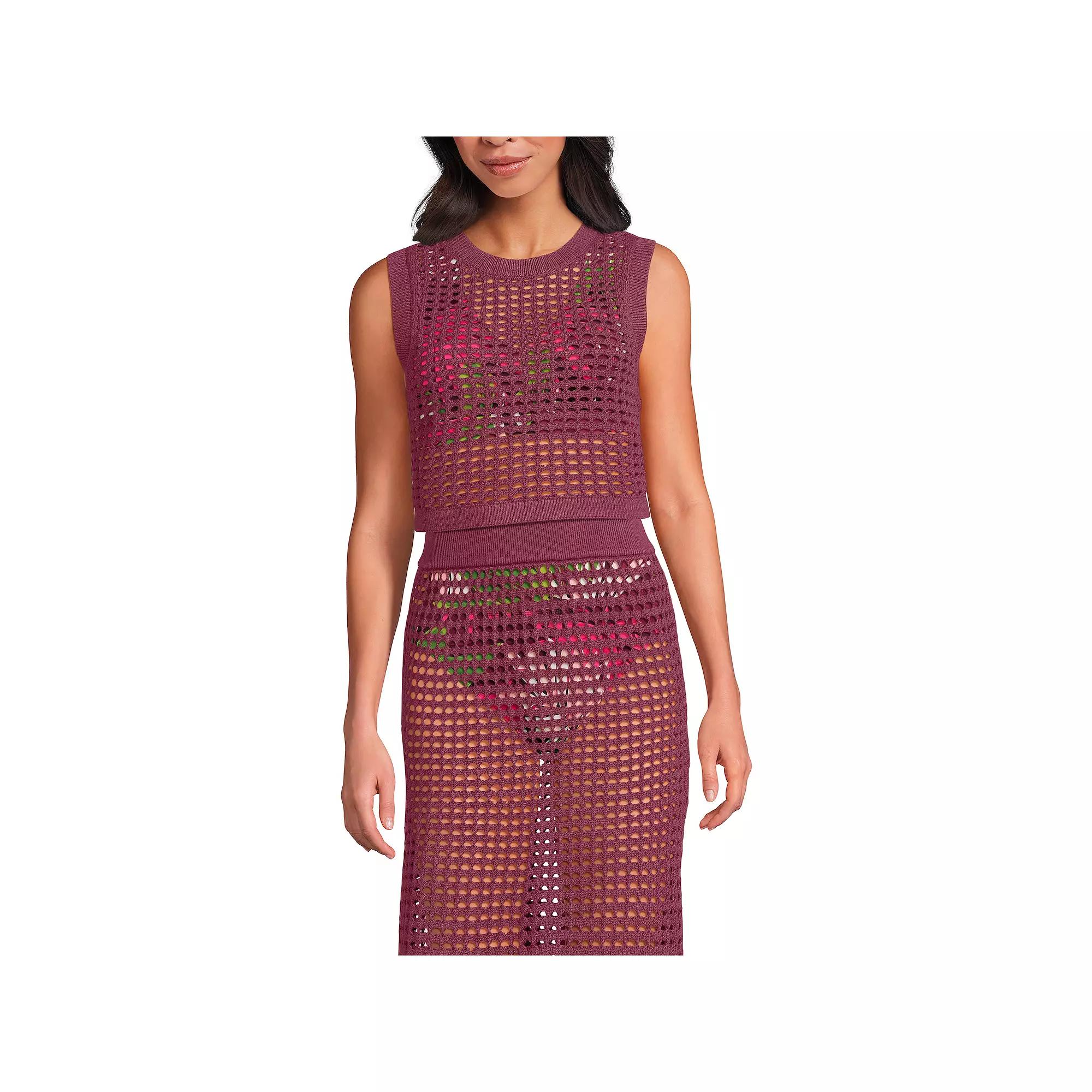 Step into summer with this Lands' End sleeveless top that brings effortless style to your beach days and poolside hangs. With a chic open knit design and a flattering scoop neck, you can easily layer it over your favorite swimsuit or pair it with denim cutoffs for an extra dose of fun in the sun. Click on this WOMEN'S GUIDE to find the perfect fit and more! - https://www.kohls.com/feature/womens-fit-guide.jsp. FEATURES: Open knit fabric adds a touch of style, Flattering scoopneck design, Sleeveless style for warm weather, Maximize beach style with versatile pairing options. FIT & SIZE: Classic fit, 16 3/4-in. length from shoulder to hem. MATERIAL & CARE: Cotton, viscose, nylon, Unlined, Machine wash. DETAILS: No closure - pullover styling, Scoopneck, Sleeveless, Imported. Size: Medium. Color: Burgundy Spritz. Gender: female. Age Group: adult. Material: COTTON BLEND.