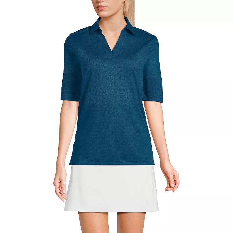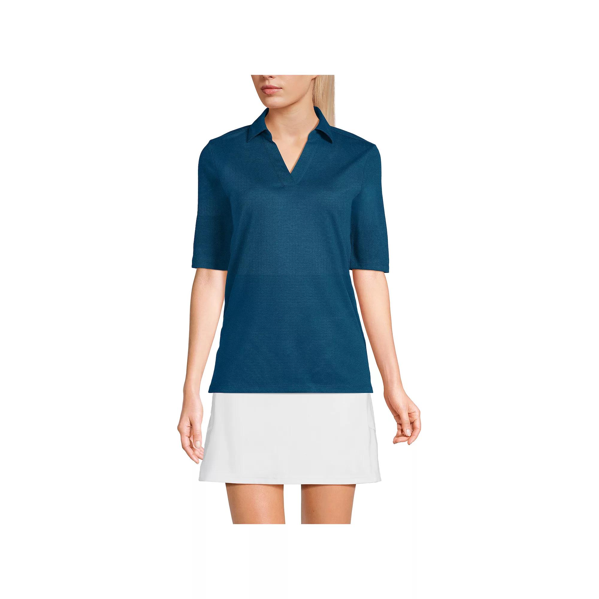 Arrive in style when you rock this womens polo top from Lands End. Being stylish has never looked so good!Finding the perfect fit and size for womens clothing requires basic measurements of your chest, waist, hips and inseam. Use this guide to learn more about sizing and everything Kohls has to offer in womens fashion. Arrive in style when you rock this womens polo top from Lands End. Being stylish has never looked so good!Finding the perfect fit and size for womens clothing requires basic measurements of your chest, waist, hips and inseam. Use this guide to learn more about sizing and everything Kohls has to offer in womens fashion. FEATURES Polo neckline Elbow sleeves Moisture-wicking finish Fade resistant UnlinedFIT & SIZING 26-in. length from shoulder to hem No closure - pullover stylingFABRIC & CARE Cotton, polyester Machine wash Imported Size: Medium. Color: Black. Gender: female. Age Group: adult.