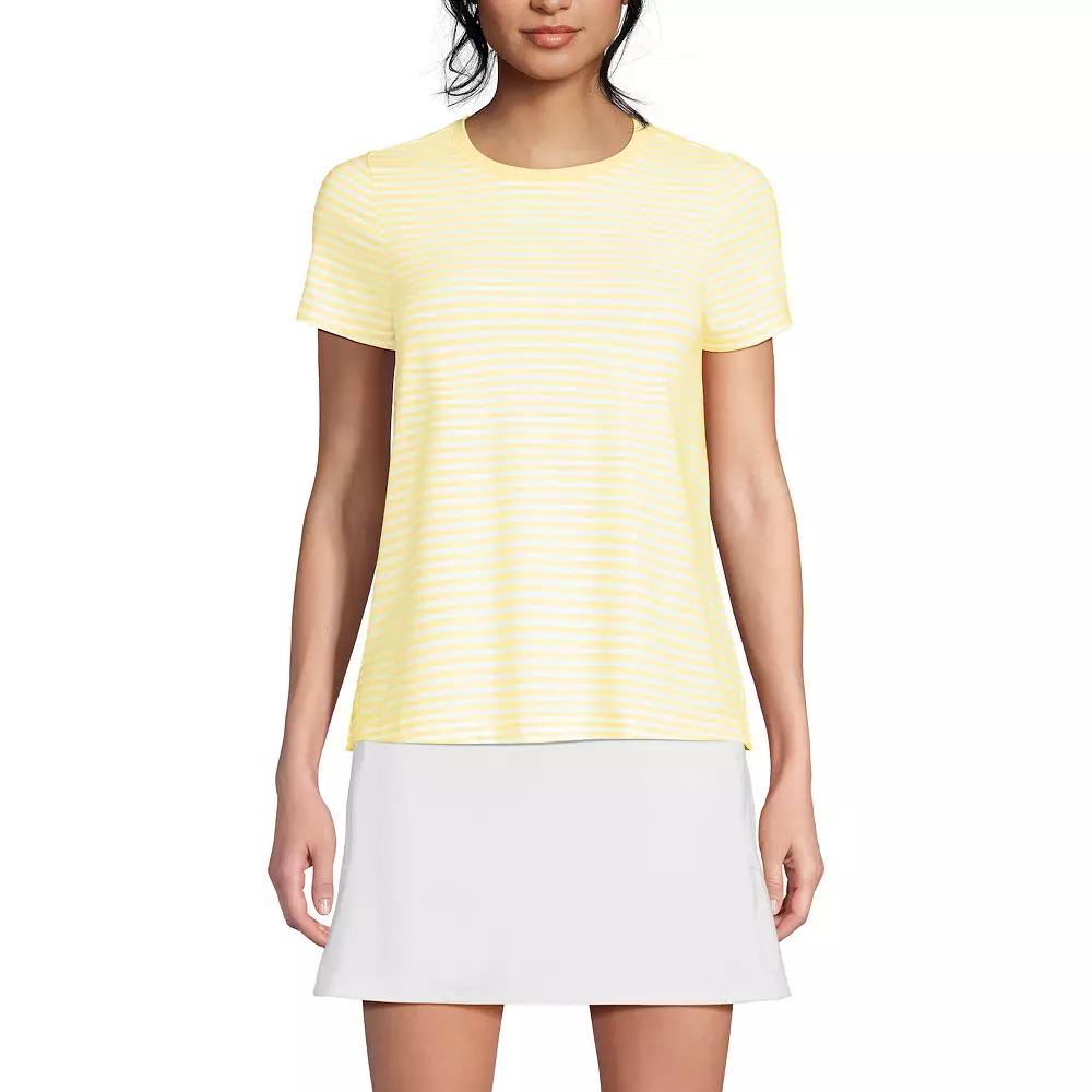 Elevate your everyday style with this Womens Lands End t-shirt, featuring a relaxed straight fit and short sleeves for ultimate comfort. Designed for versatility, its flattering silhouette pairs effortlessly with leggings or jeans, making it the perfect choice for everything from casual outings to leisurely days at home, all while keeping you protected from the sun. Click on this WOMENS GUIDE to find the perfect fit and more!Elevate your everyday style with this Womens Lands End t-shirt, featuring a relaxed straight fit and short sleeves for ultimate comfort. Designed for versatility, its flattering silhouette pairs effortlessly with leggings or jeans, making it the perfect choice for everything from casual outings to leisurely days at home, all while keeping you protected from the sun. Click on this WOMENS GUIDE to find the perfect fit and more!FEATURES Vented hem Short set-in sleeves Crewneck Box pleat at the back Side vents add east to the fit UPF 50 sun protection Moisture-wicking finish Anti-pilling and fade-resistantFIT & SIZING Relaxed fit 28-in. length from shoulder to hemFABRIC & CARE Polyester, modal, spandex Machine wash Imported Size: X Large. Color: Soft Blue. Gender: female. Age Group: adult.