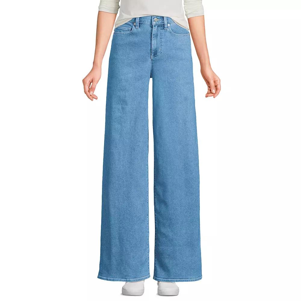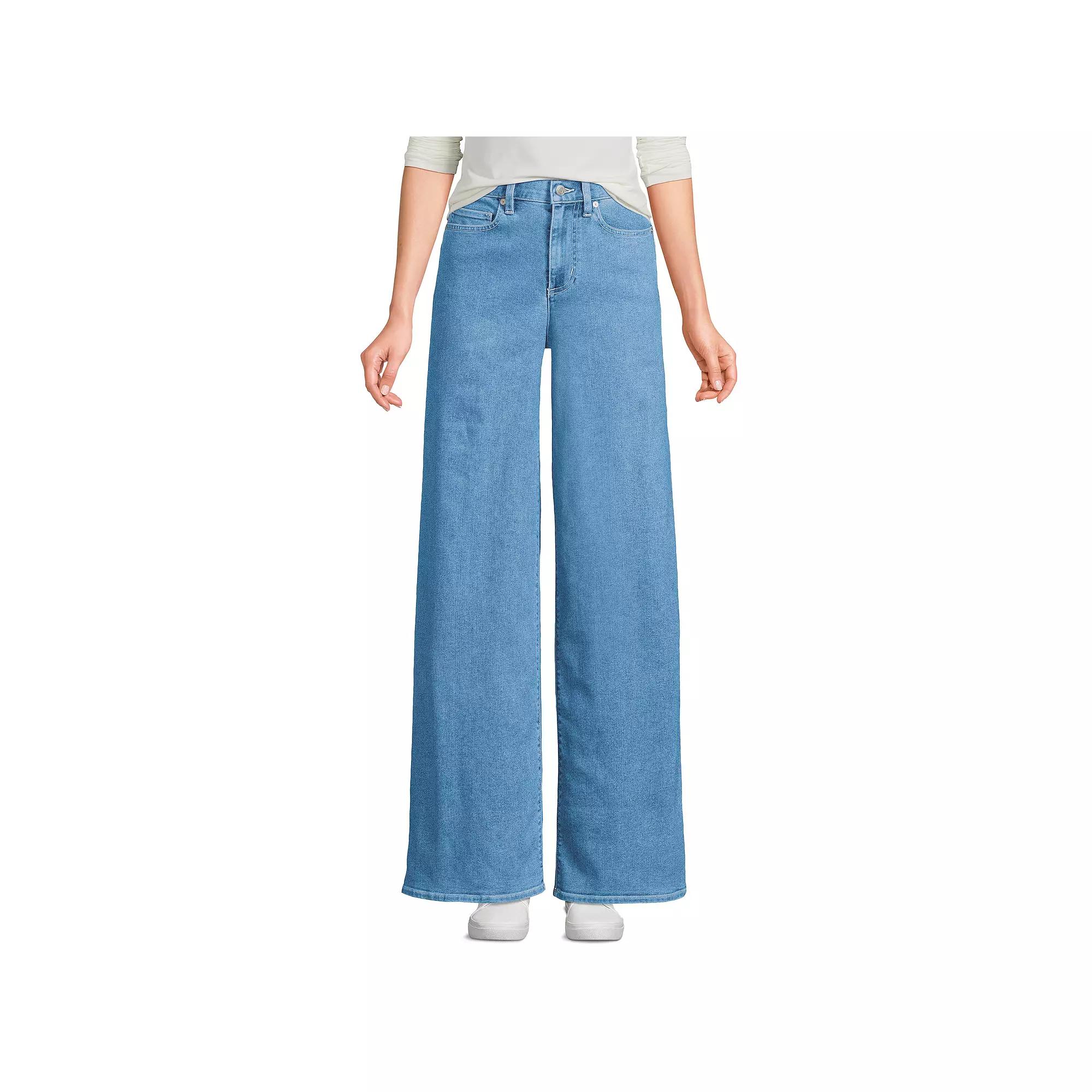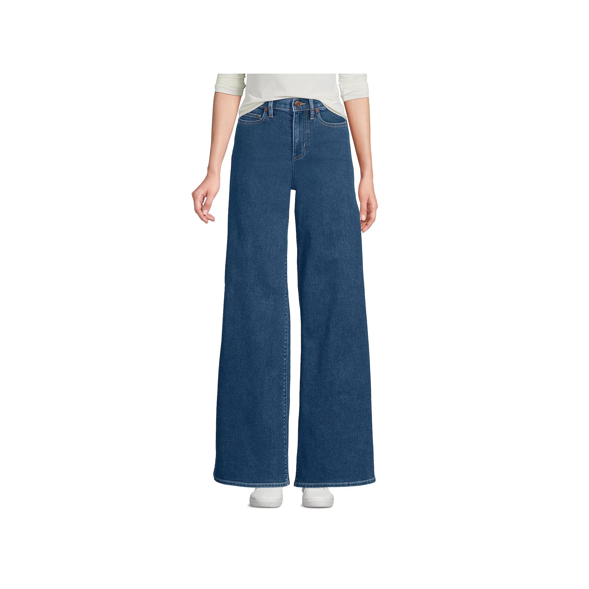 Elevate your wardrobe with Lands' End's relaxed yet stylish wide leg jeans that hug the waist and flow effortlessly through the hip and thigh. Perfect for pairing with anything from casual tees to dressy tops, these jeans offer both comfort and versatility, ensuring a flattering fit no matter the occasion. Click on this WOMEN'S GUIDE to find the perfect fit and more! - https://www.kohls.com/feature/womens-fit-guide.jsp. FEATURES: Soft denim construction, 5 pockets, Straight hem, Button & zipper closure. FIT & SIZING: 32-in. inseam, 23-in. wide leg opening, High rise sits below the natural waistline, Relaxed fit through the hip and thigh, Contour waistband, Lightweight. FABRIC & CARE: Cotton, polyester, spandex, Machine wash, Imported. Size: 12. Color: Crawford Wash. Gender: female. Age Group: adult. Material: COTTON BLEND.