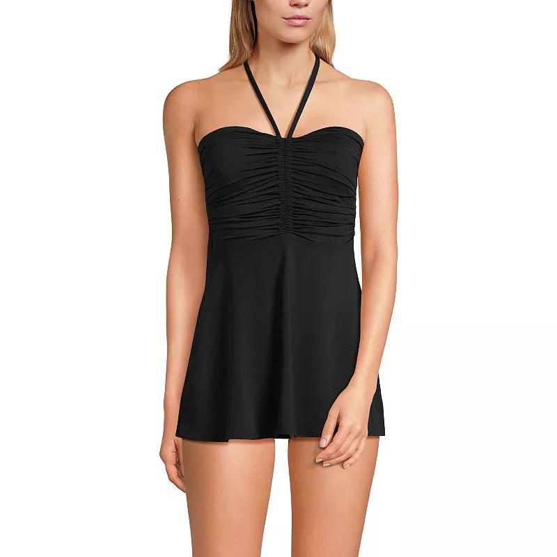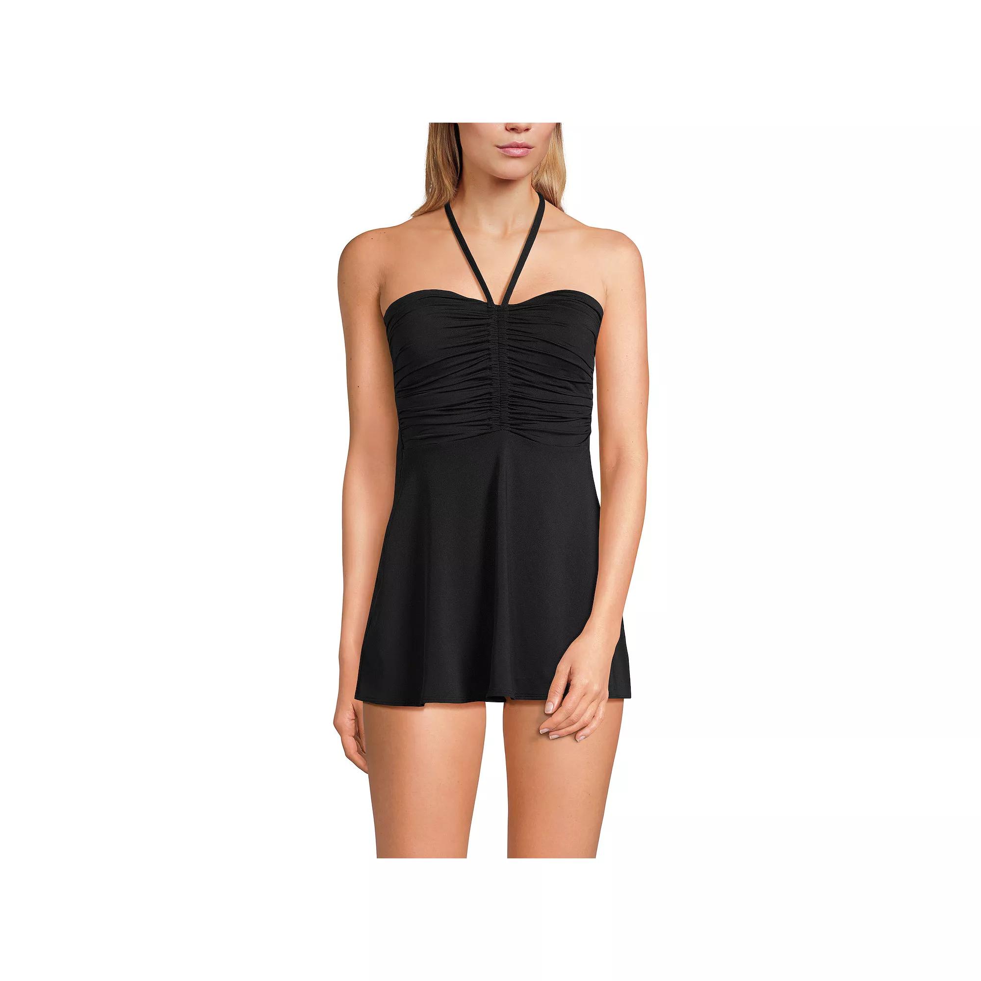 Embrace effortless elegance with Lands' End swim dress, designed to flatter your figure and enhance your sun-soaked adventures. Featuring versatile convertible ties and a built-in one-piece for ultimate comfort, this stylish mini dress combines femininity and functionality for your perfect getaway. Click on this WOMEN'S GUIDE to find the perfect fit and more! - https://www.kohls.com/feature/womens-fit-guide.jsp. FEATURES: Built-in one-piece gives you coverage and comfort, Tie them behind your neck for a classic halter or go strapless by tying them at the bust, Plus, thanks to the built-in one-piece you'll have plenty of coverage as you go in and out of the water, for a truly carefree day in the sun, Shirred fabric flatters your curves, Flattering sweetheart neckline, Soft bra cups, Full coverage, Sewn-in soft cup, UPF 50 sun protection, No closure - pullover styling, Sleeveless, Fully lined, Wireless. FIT & SIZING: Mini length; approximate measurement from high shoulder to hem: Regular 28"-29"; Plus 30"-32". FABRIC & CARE: Nylon, spandex, Hand wash, Imported. Size: 4. Color: Black. Gender: female. Age Group: adult. Material: NONE.