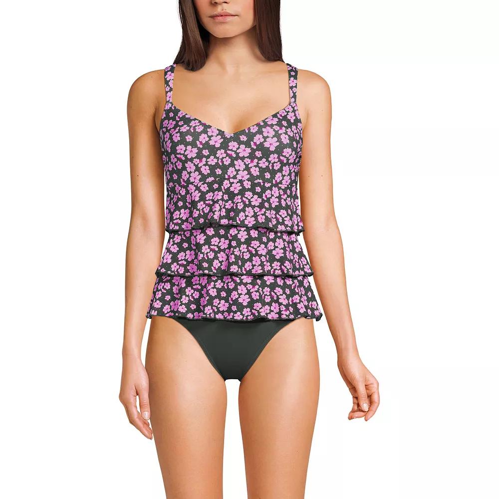 Experience a fresh take on swimwear with Lands' End innovative one-piece that exudes the style of a tankini while offering the modest coverage you love. Featuring flowy ruffles, adjustable straps, and light control for a flattering silhouette, this swimsuit is perfect for both comfort and confidence in the sun. Click on this WOMEN'S GUIDE to find the perfect fit and more! - https://www.kohls.com/feature/womens-fit-guide.jsp. FEATURES: Faux tankini top gives the look of a two-piece with the easy fit and modest coverage of a one-piece, Soft bra cups, Moderate coverage, Tummy slimmer, UPF 50 sun protection, No closure - pullover styling, Adjustable straps, 2 hook columns, Sleeveless, Fully lined, Lined gusset, Wireless, V-neck. FABRIC & CARE: Nylon, spandex, Hand wash, Imported. Size: 10. Color: Navy Floral Tile. Gender: female. Age Group: adult. Material: NONE.